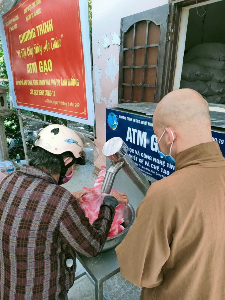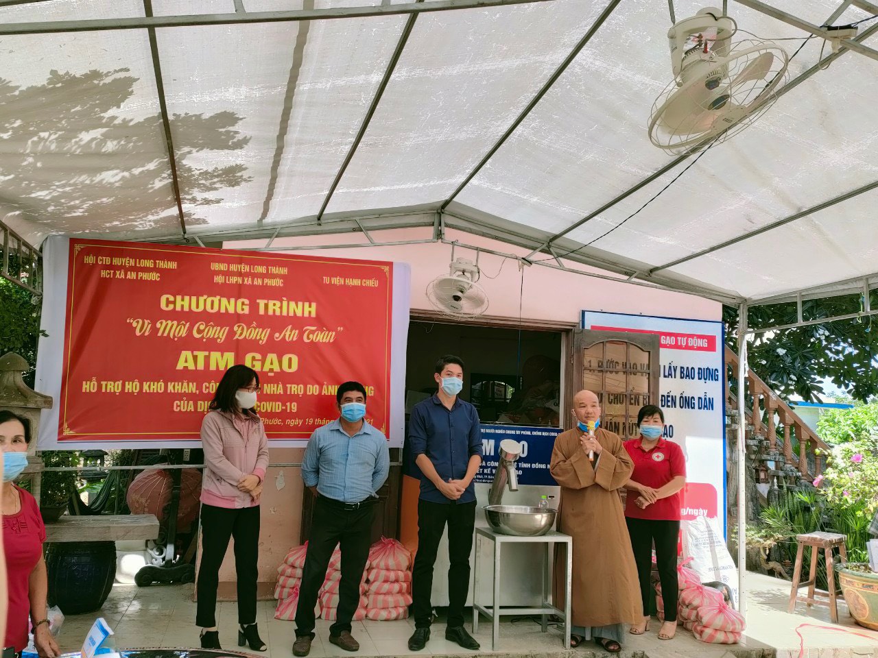 Tiếp nối các chương trình đó, Thượng tọa Thích Minh Hạnh - Trưởng ban Pháp chế GHPGVN huyện Long Thành, Trụ trì Tu viện Hạnh Chiếu (xã An Phước, huyện Long Thành) đã vận động quý Phật tử, các mạnh thường quân ủng hộ Chương trình “Vì một cộng đồng an toàn”, dựng cây ATM gạo tại chùa.