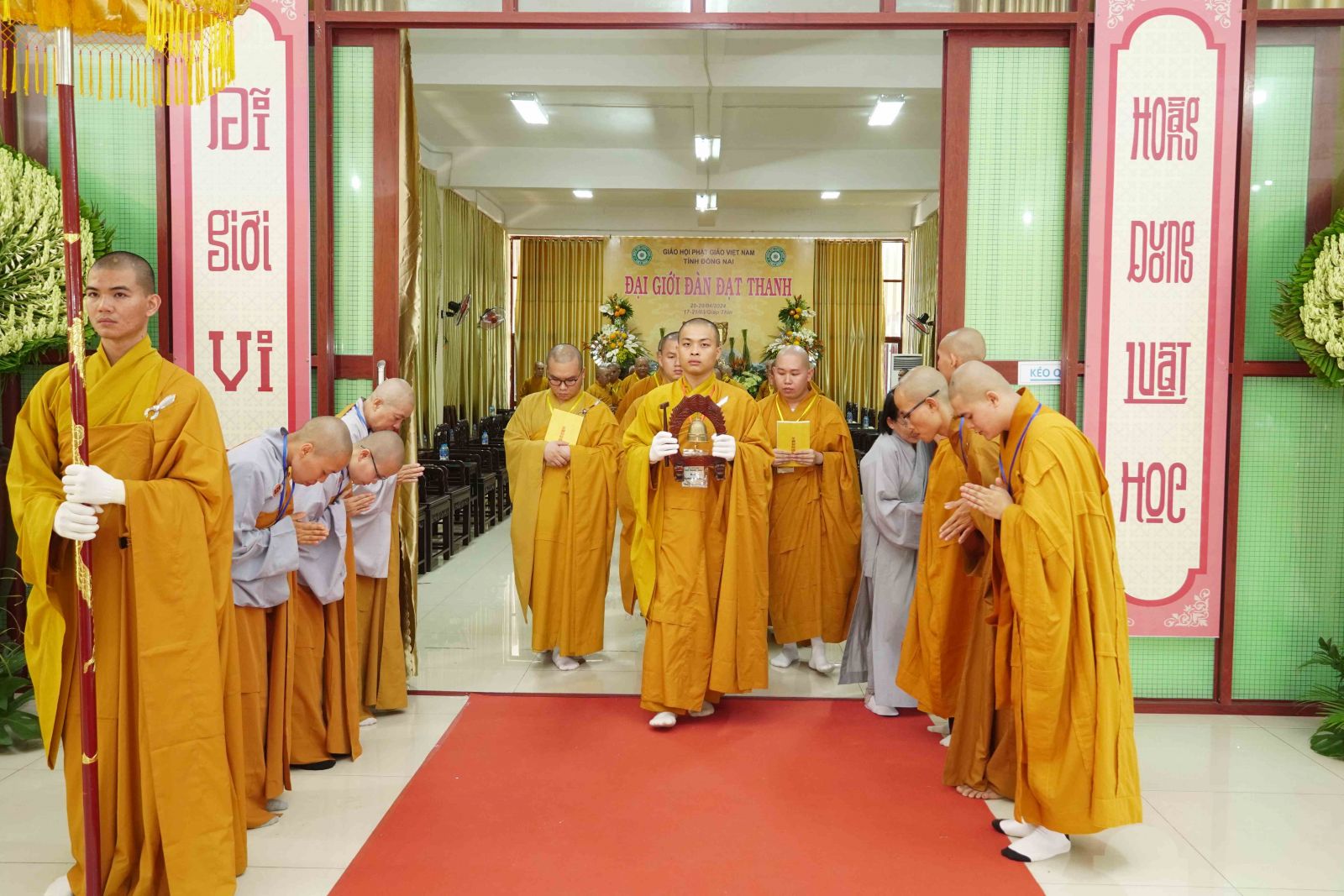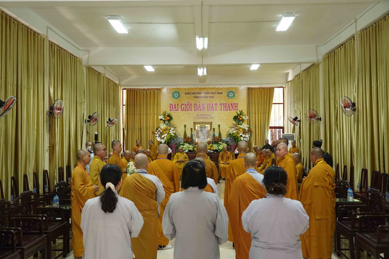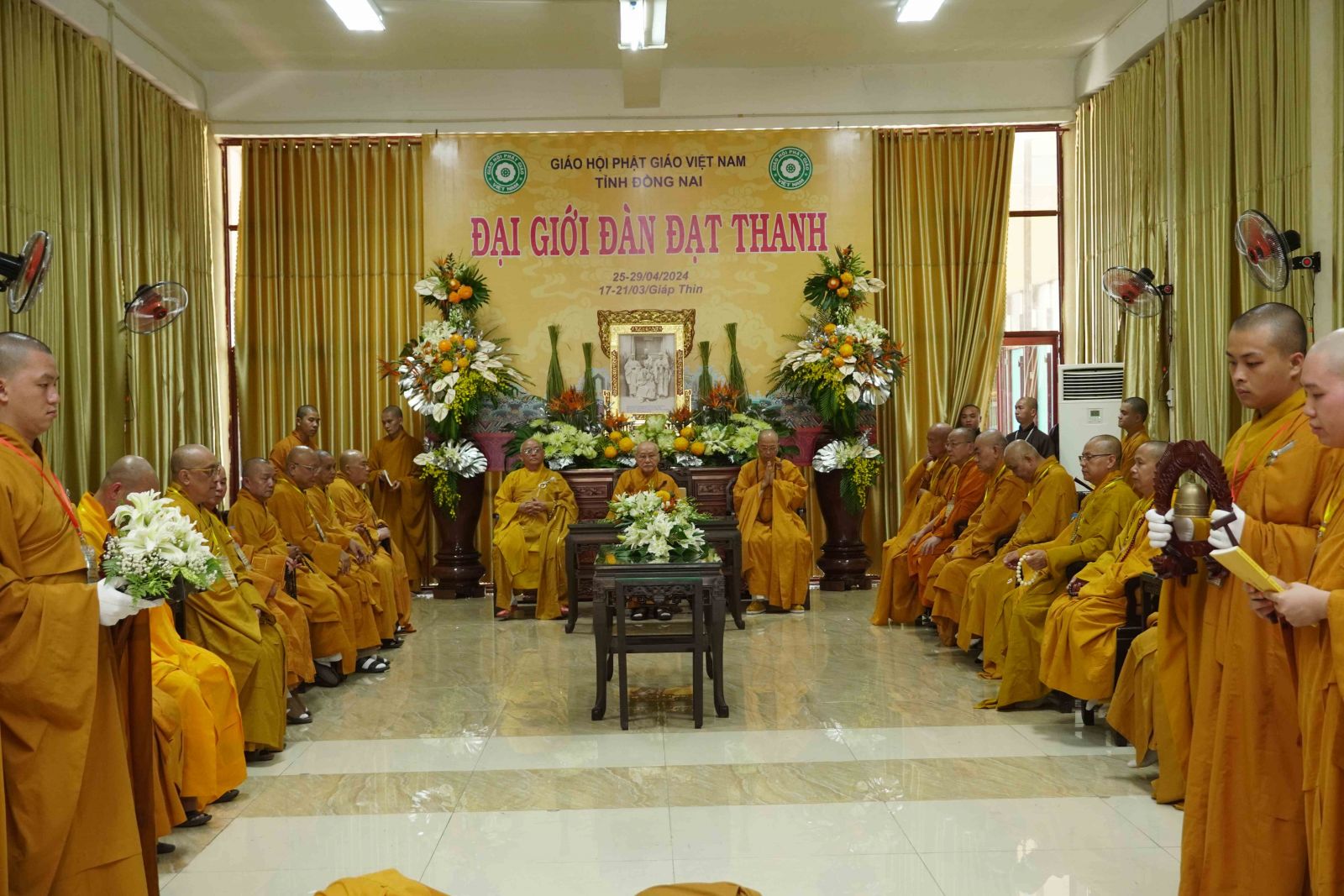 Chính vì lẽ đó, Chiều ngày 24/4/2024 (nhằm ngày 20/3/Giáp Thìn) tại Đại Giới đàn ĐẠT THANH 2024 do Ban Trị sự GHPGVN tỉnh Đồng Nai tổ chức đã trang nghiêm cung thỉnh chư Tôn đức Truyền Giới sư quang lâm Giới trường tại Chùa Tỉnh Hội, khu phố Nhất Hòa, phường Hiệp Hòa, tỉnh Đồng Nai, để Truyền trao Giới pháp Bồ Tát giới cho chư Giới tử Xuất gia và Tại gia.