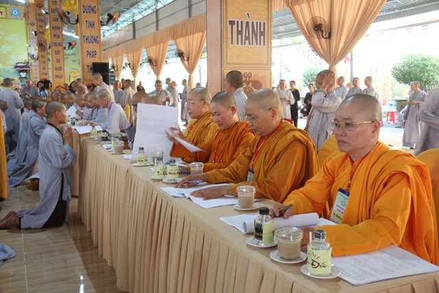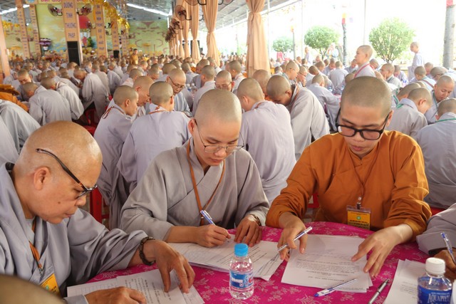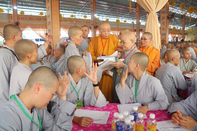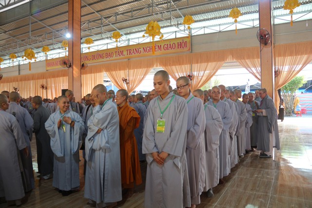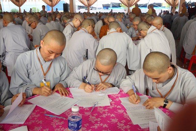 Trước khi vào bài thi HT Thích Nhật Quang chánh chủ khảo có lời sách tấn đến các giới tử. Hòa thượng nhấn mạnh tầm quang trọng của giới luật, giới luật là mạng mạch của Phật pháp và người tu sĩ trì giới mạng lại lợi ích gì cho tự thân và mọi người xung quanh. Hòa thượng dạy: “Quý vị hãy giữ cho ba nghiệp thanh tịnh, trang nghiêm thanh tịnh để xứng đáng duy trì mạng mạch Phật pháp. Đây cũng là lần thi tuyển để từ đó quý vị đem những vinh dự về cho tông môn cho tổ sư của mình và đồng thời quý vị cũng gầy dựng vị thế, vị trí của quý vị trong hàng Thích tử của Đức Như Lai, rất là mong quý vị làm tròn nhiệm vụ này. Nguyện mười phương chư Phật các bậc hiền thánh, lịch đại Tổ sư và hiện tiền chư Tôn thiền đức tăng, ni luôn thương tưởng hộ trì cho quý vị làm tốt.” Nam Mô Bổn Sư Thích Ca Mâu Ni Phật.