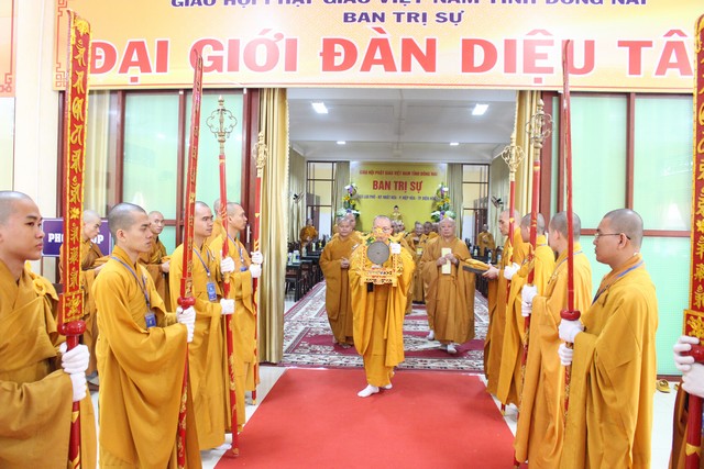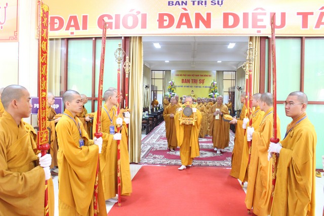 Sáng ngày 14/11/2019 (nhằm ngày 18/10 năm Kỷ Hợi), tại giới trường Đại Giới đàn Diệu Tâm, Ban Thỉnh sư cung nghinh Hội đồng Thập sư quang lâm hội trường chính thức Tấn đàn truyền Đại giới.