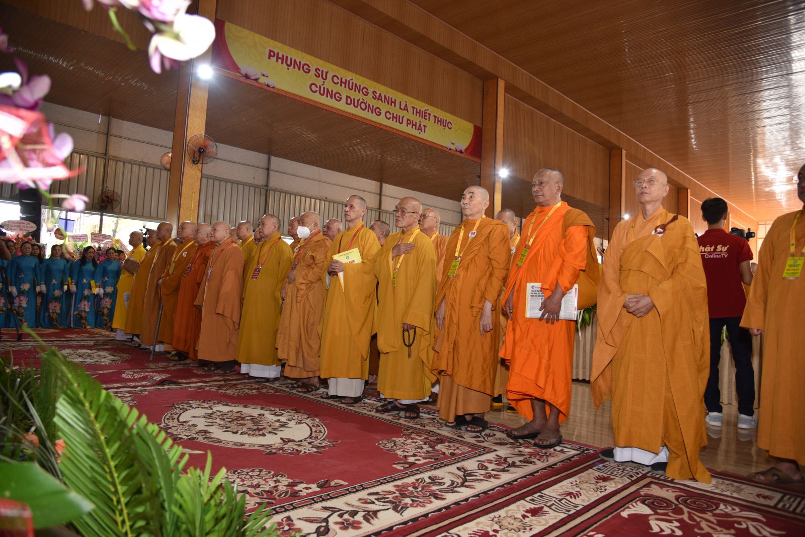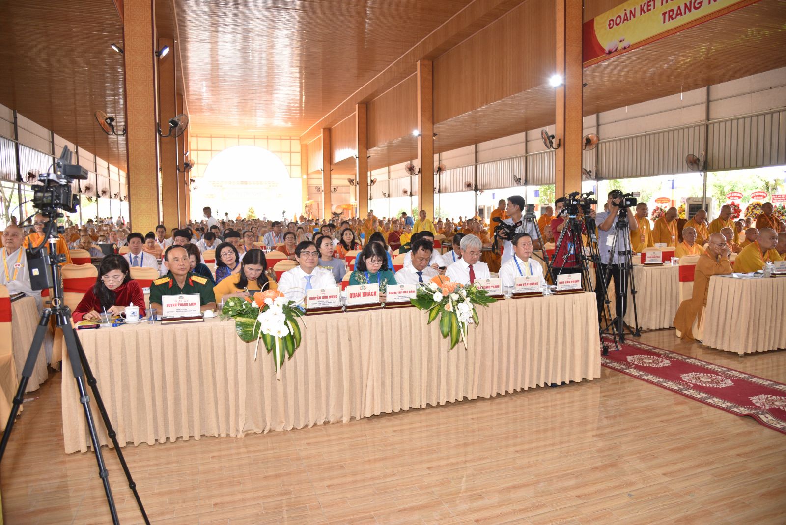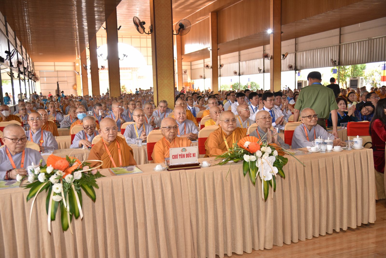 Sau nghi thức chào Quốc kỳ, Đạo kỳ, Ban Tổ chức Đại hội cung thỉnh chư Tôn đức chứng minh, Chủ Tọa đoàn, Ban Kiểm soát, Ban Thư ký Đại hội an tọa.