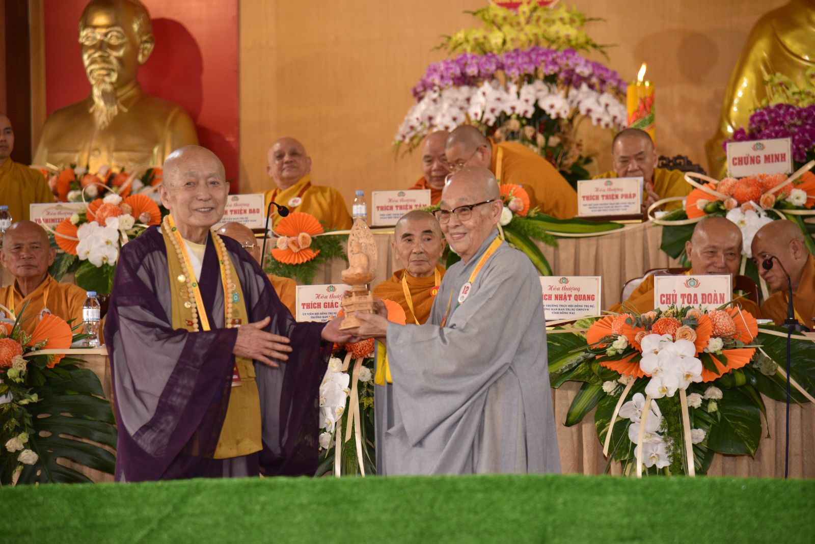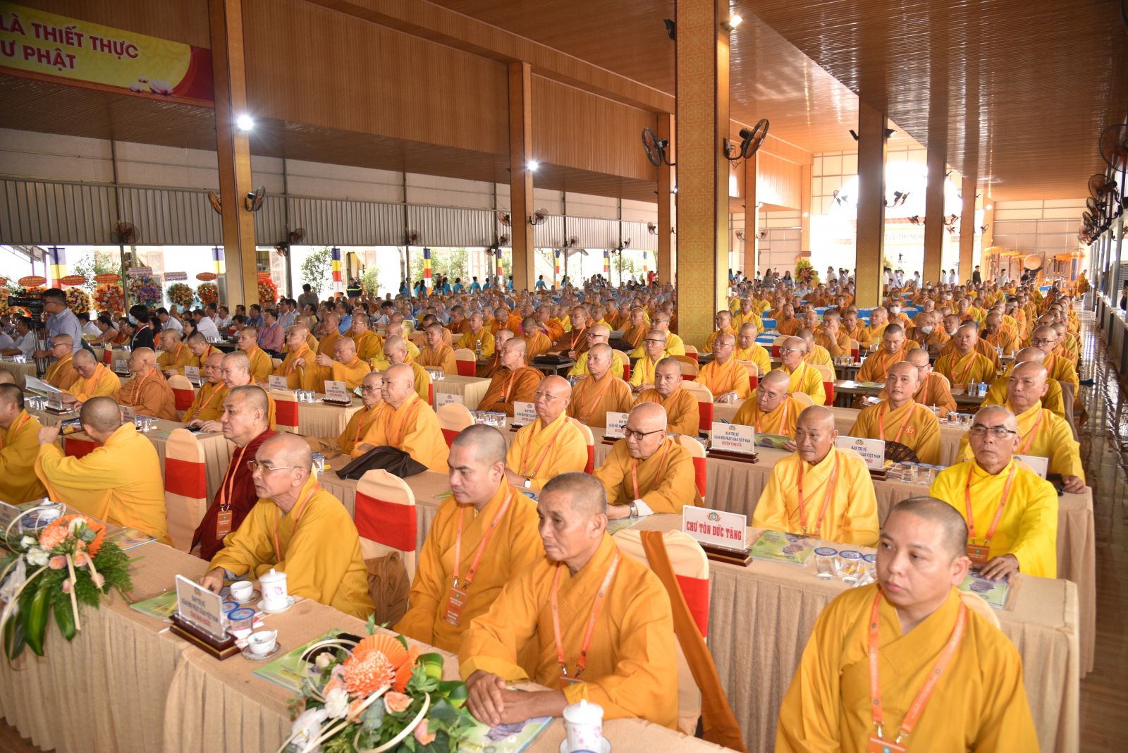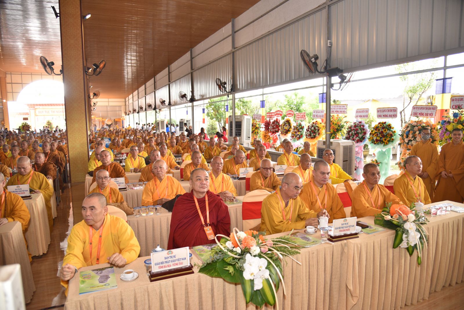 Sau nghi thức chào Quốc kỳ, Đạo kỳ, Ban Tổ chức Đại hội cung thỉnh chư Tôn đức chứng minh, Chủ Tọa đoàn, Ban Kiểm soát, Ban Thư ký Đại hội an tọa.