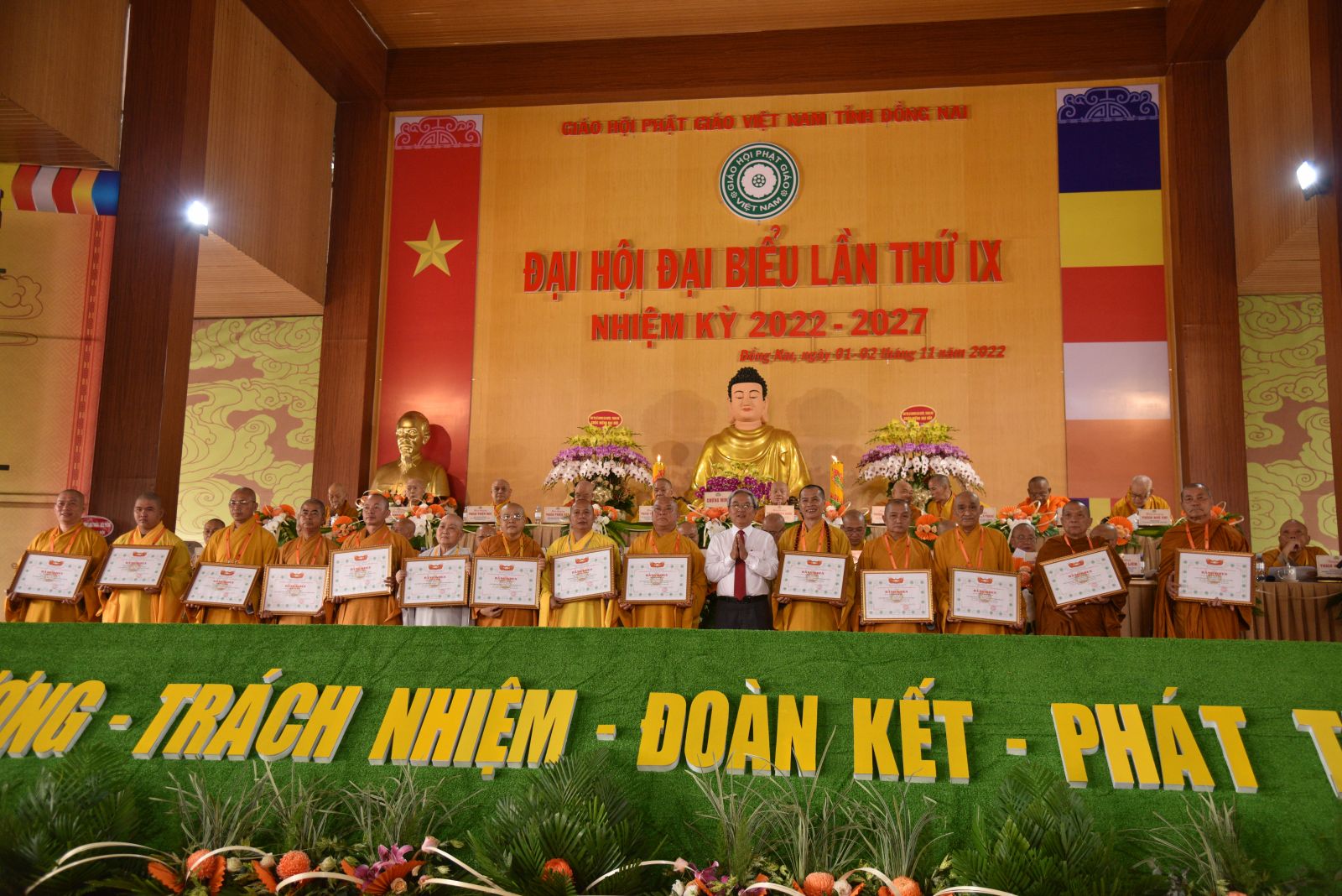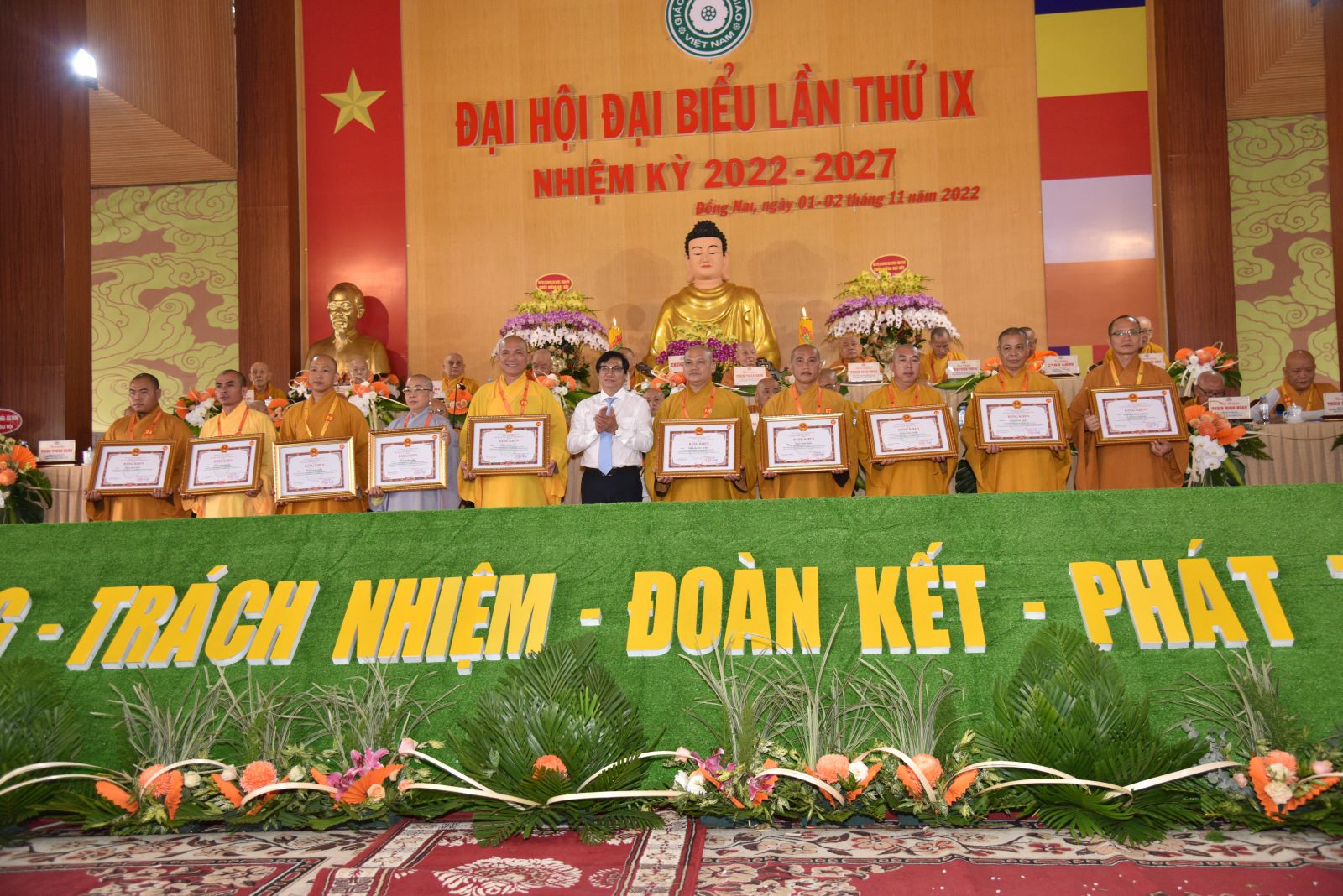 Để ghi nhận những đóng góp của các tập thể và cá nhân cho Đạo pháp và Dân tộc, đặc biệt là trong công tác an sinh xã hội. Tại Đại hội lần này, Nhà nước, UBND, UBMTTQVN tỉnh Đồng Nai quyết định tặng Bằng khen cho các tập thể và cá nhân có thành tích xuất sắc.