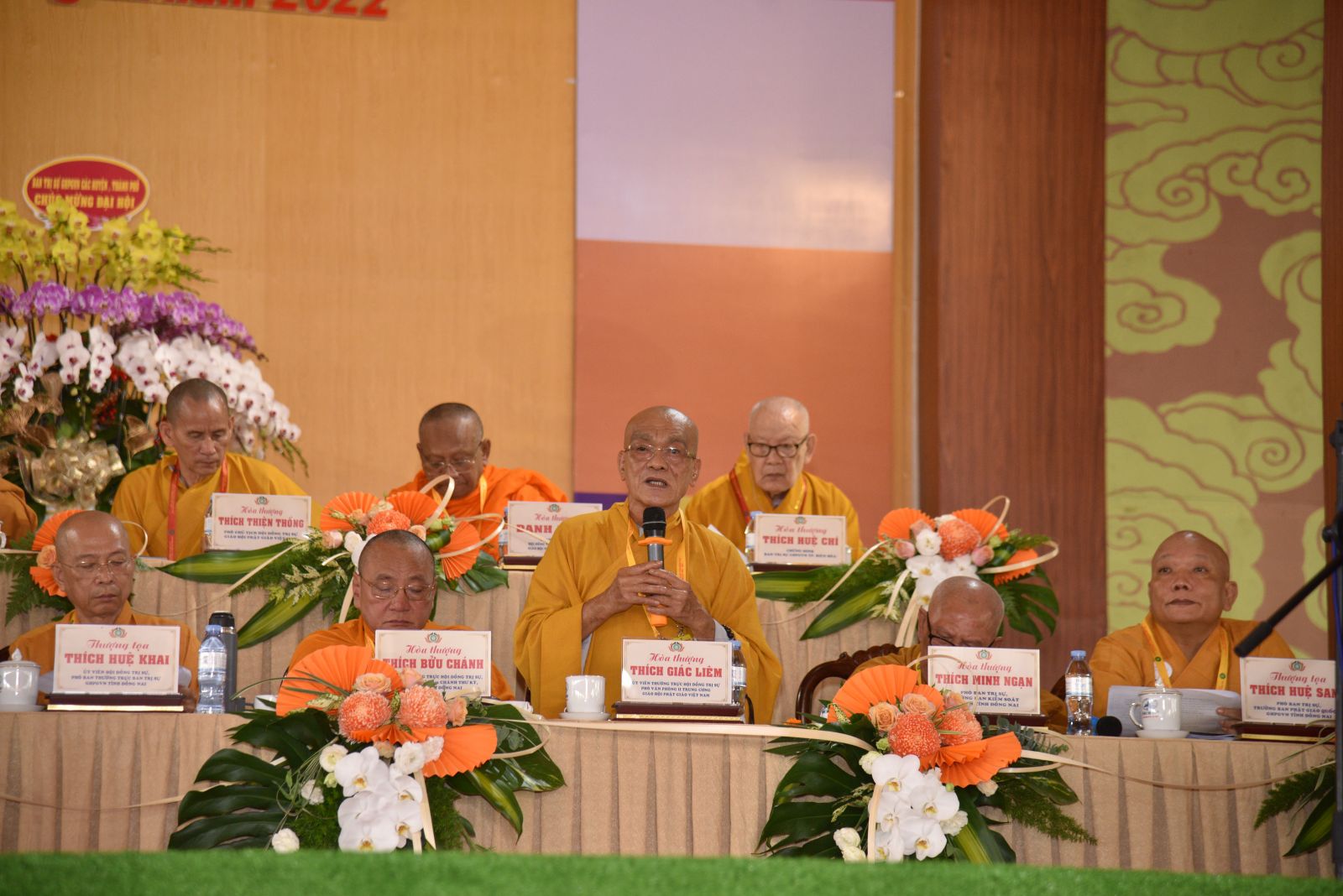 Thay mặt TƯ GHPGVN ban đạo từ tại Đại hội, HT.Thích Thiện Nhơn - Chủ tịch HĐTS GHPGVN tán thán công đức chư tôn đức BTS lâm thời tỉnh Đồng Nai đã hoàn thành công tác Phật sự được HĐTS GHPGVN giao phó. Hòa thượng ghi nhận những thành tựu Phật sự đạt được trên các lĩnh vực hoạt động của BTS GHPGVN tỉnh khóa VIII (nhiệm kỳ 2017 - 2022) với sự lãnh đạo của HT.Thích Nhật Quang - Trưởng ban Trị sự GHPGVN tỉnh. Hòa thượng tri ân công đức Hòa thượng Thích Nhật Quang đã nỗ lực lãnh đạo Phật giáo tỉnh xuyên suốt nhiệm kỳ qua, gặt hái được nhiều thành công nhất định. Ngài mong rằng, trong tương lai Hòa thượng Thích Nhật Quang dù ở cương vị nào cũng cống hiến hết mình vì sự phát triển của GHPGVN trong lòng dân tộc. Thành quả Phật sự đó, là tiền đề, sức bật mới cho tân BTS GHPGVN tỉnh Đồng Nai lần thứ IX (nhiệm kỳ 2022 - 2027) với sự hòa hợp, đoàn kết của Tăng Ni, Phật tử toàn tỉnh, sẽ tiếp tục phát huy các hoạt động Phật sự. Hòa thượng đặt niềm tin vào Tăng Ni, tín đồ Phật giáo tỉnh Đồng Nai và tin tưởng tân BTS GHPGVN tỉnh khóa IX sẽ có những thuận duyên, bước phát triển mới, để hoạt động Phật sự đạt thành tựu tốt đẹp trong thời đại mới, và chúc cho Đại hội thành công tốt đẹp.