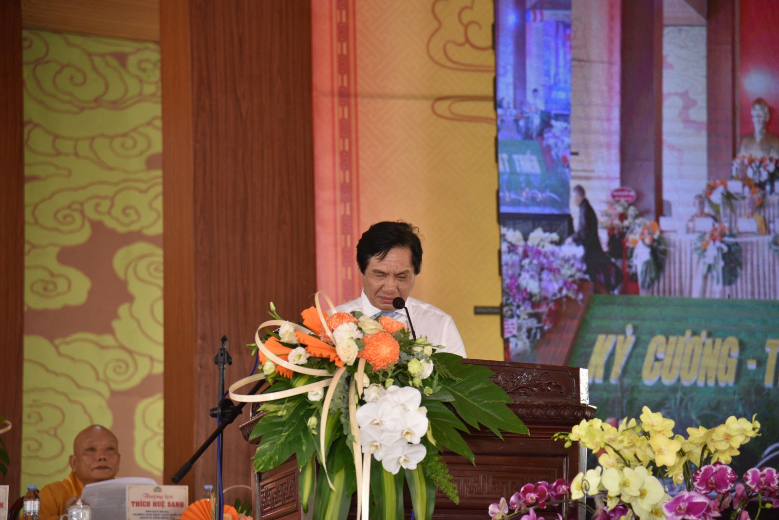 Ông Nguyễn Sơn Hùng - Tỉnh ủy viên, Phó Chủ tịch UBND tỉnh có lời phát biểu trước Đại hội, ông ghi nhận và đánh giá cao những đóng góp của Phật giáo tỉnh nhà, đặc biệt trong công tác xây dựng khối đại đoàn kết dân tộc, công tác từ thiện xã hội và các phong trào thi đua yêu nước. Đồng thời bày tỏ tin tưởng Ban Chứng minh, Ban Trị sự GHPGVN tỉnh nhiệm kỳ 2022 - 2027 luôn làm tốt vai trò là cầu nối giữa cấp ủy, chính quyền, Ủy ban Mặt trận Tổ quốc các cấp với Giáo hội, với toàn thể Tăng Ni và đồng bào Phật giáo tỉnh nhà sẽ tiếp tục có nhiều đóng góp tích cực, thiết thực, hiệu quả hơn nữa trong các hoạt động Phật sự và thế sự trong nhiệm kỳ 2022 - 2027; theo sát với chủ đề đại hội đã đưa ra “Kỷ cương - Trách nhiệm - Đoàn kết - Phát triển”.
