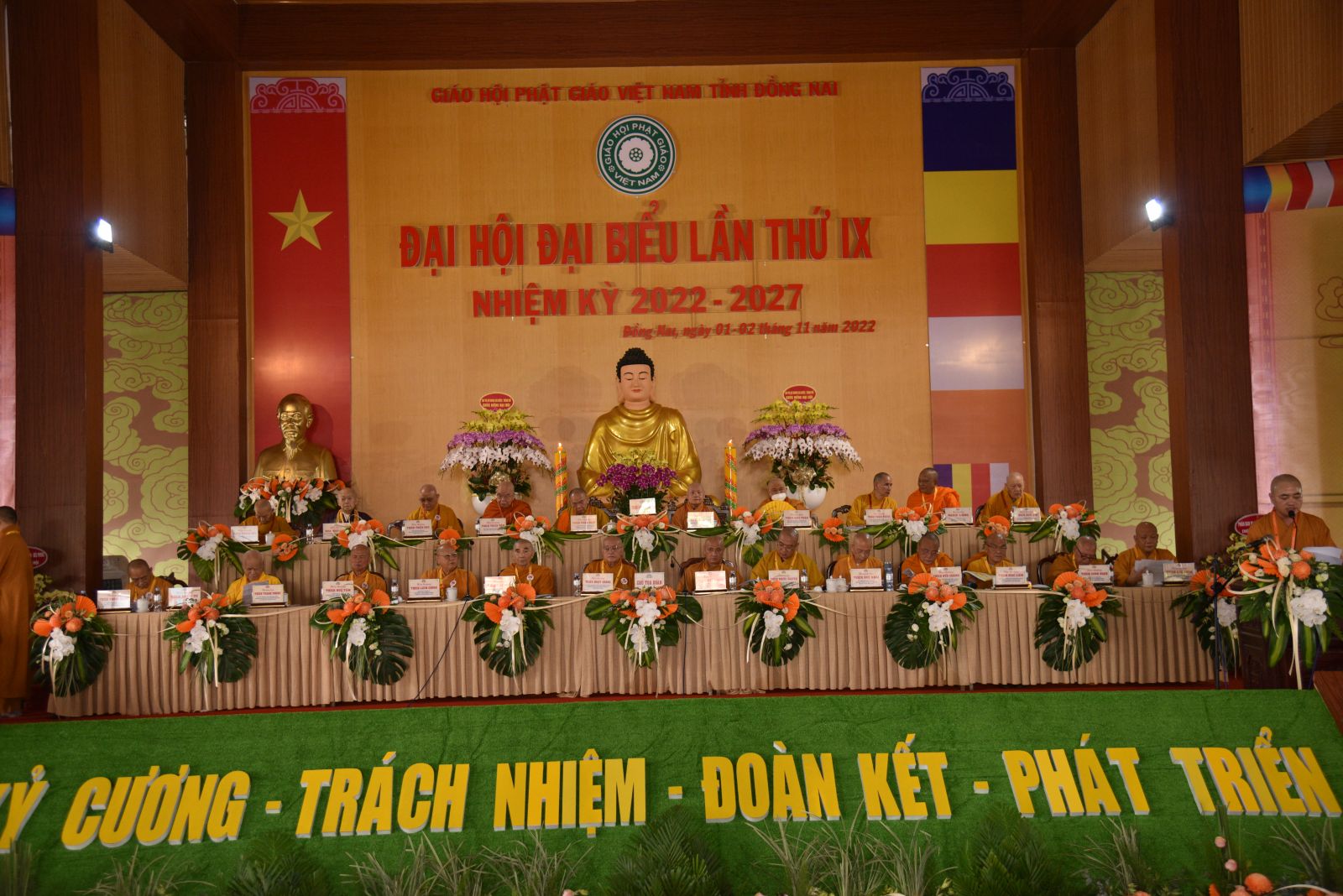 Đoàn chủ tọa Đại hội gồm có: HT. Thích Nhật Quang – UVTT HĐTS, Trưởng ban BTS GHPGVN tỉnh, Trưởng ban Tổ chức Đại hội; HT. Thích Huệ Thông – Phó Tổng thư ký, Chánh văn phòng II TƯ GHPGVN; HT. Thích Giác Liêm - Ủy viên thường trực HĐTS, Phó văn phòng II TƯ GHPGVN; TT. Thích Phước Nguyên - Ủy viên thường trực HĐTS, Phó văn phòng II TƯ GHPGVN; TT. Thích Thanh Phong - Ủy viên thường trực HĐTS, Trưởng ban Ban kinh tế - tài chánh TƯ GHPGVN; TT. Thích Huệ Khai – UV HĐTS, Phó trưởng ban thường trực BTS GHPGVN tỉnh, Phó ban tổ chức Đại hội; HT. Thích Giác Quang – UV HĐTS, Phó ban BTS, Trưởng ban Ban Tăng sự GHPGVN tỉnh, Phó ban tổ chức Đại hội; HT. Thích Bửu Chánh – UVTT HĐTS, Phó ban kiêm Chánh thư ký BTS GHPGVN tỉnh, Phó ban tổ chức Đại hội; cùng chư tôn đức Hội đồng Trị sự, Văn phòng II, các ban ngành, viện Trung ương; chư tôn đức Ban Trị sự Phật giáo các tỉnh thành; đại diện Ban Trị sự Phật giáo các huyện, thị, thành phố; chư Tăng, Ni trụ trì cùng Phật tử các cơ sở tự viện trên địa bàn tỉnh Đồng Nai.