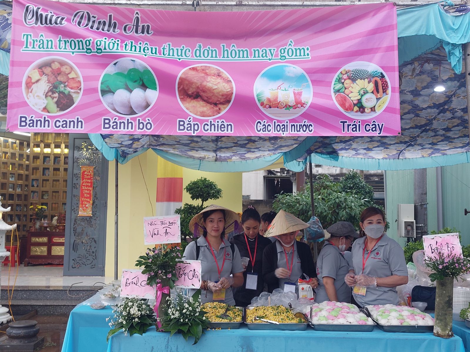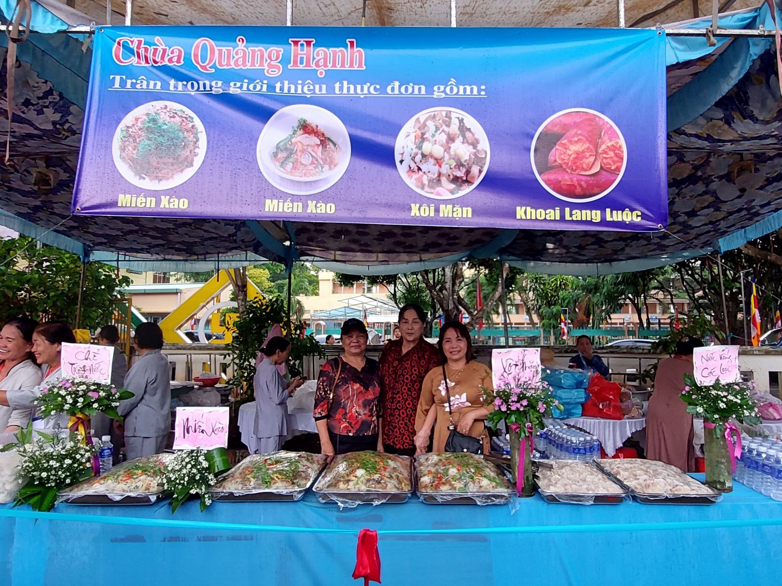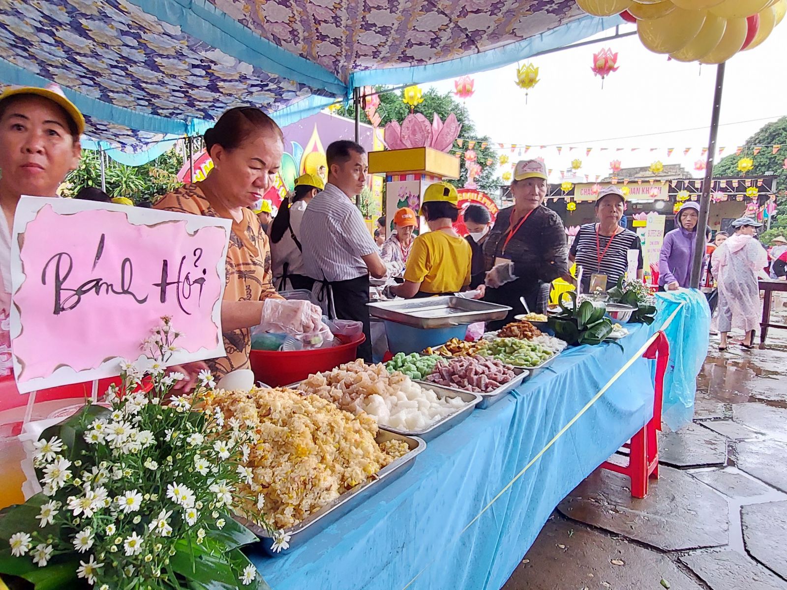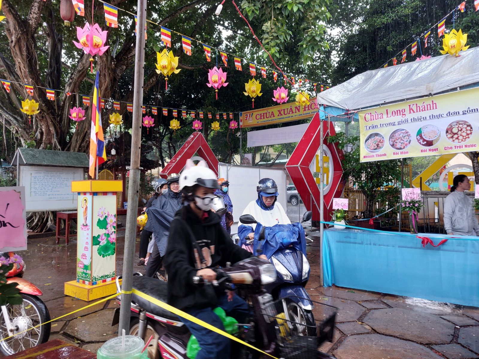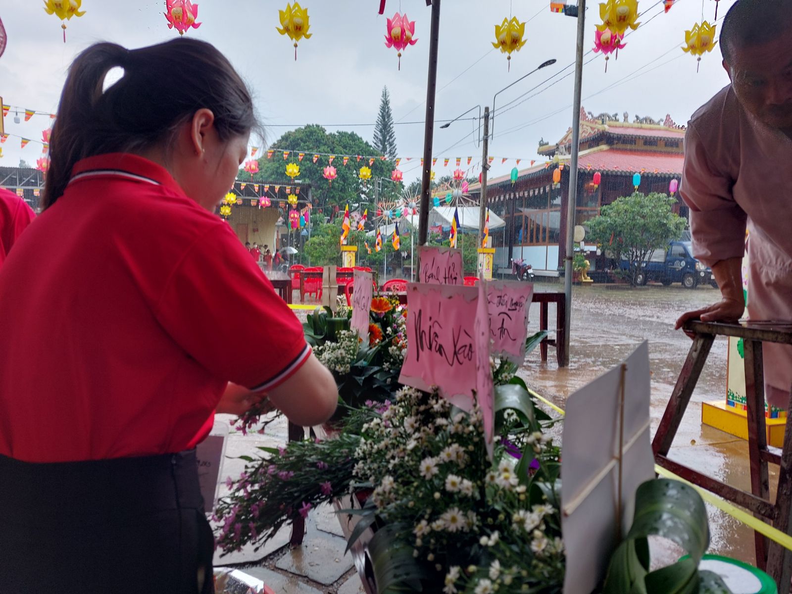 Mặc dù trời mưa bão kéo dài, nhưng hơn 20 đơn vị phát tâm với 70 món ăn vô cùng hấp dẫn và đẹp mắt, đã vất vả nổ lực vận chuyển đồ đạc trong mưa để lo cho tiệc buffet. Những nghĩa cử thật xúc động thân thương để lại ấn tượng trong lòng mọi người.