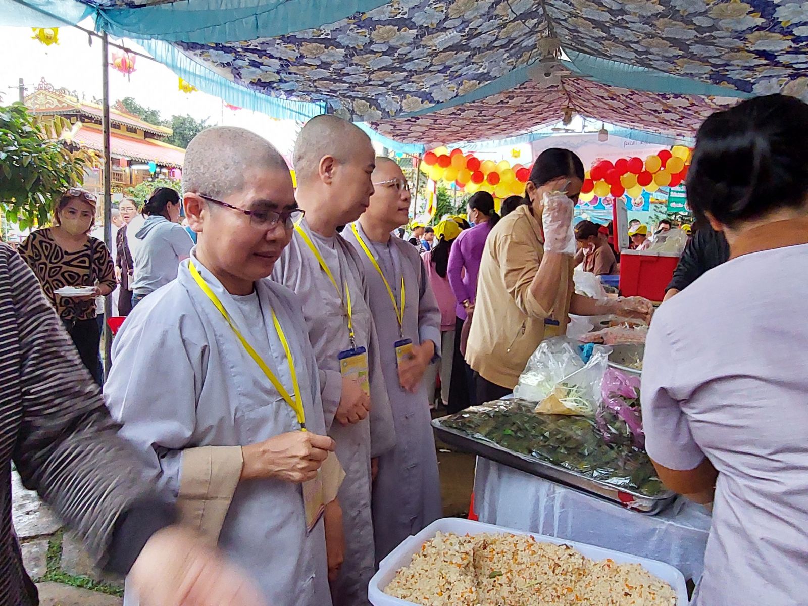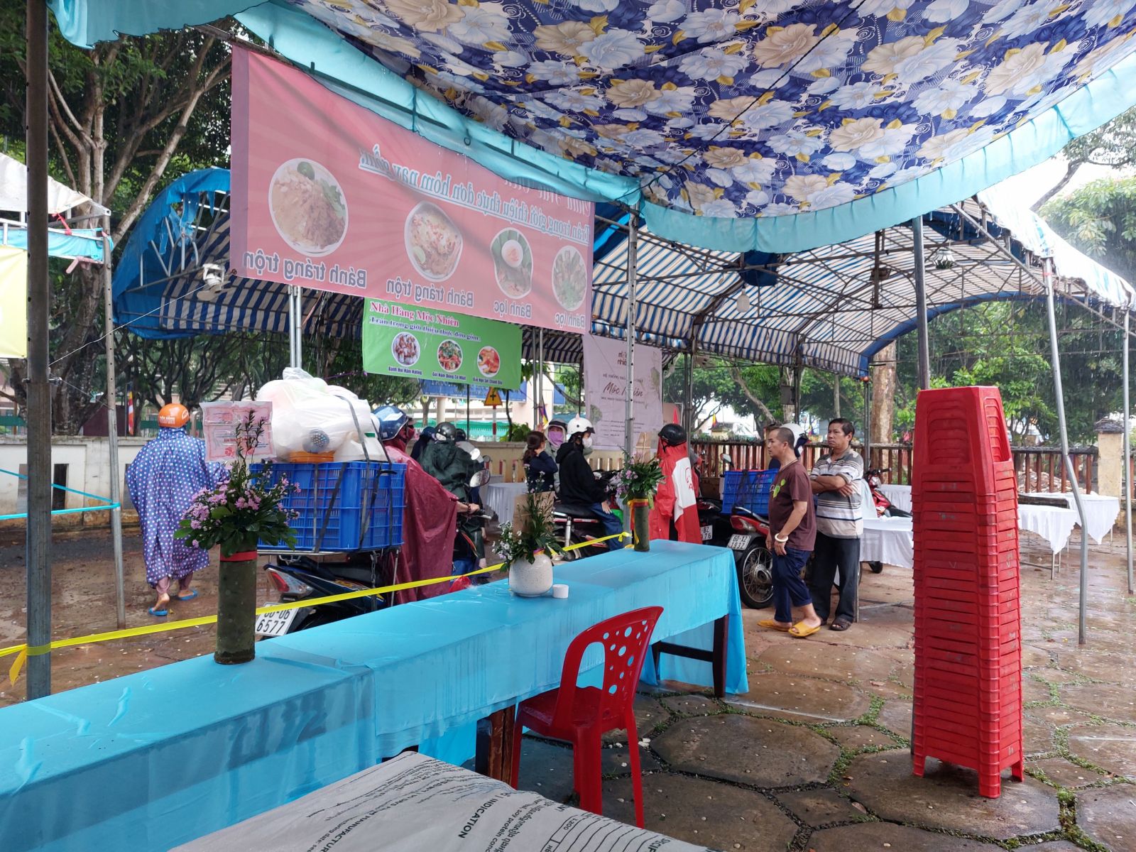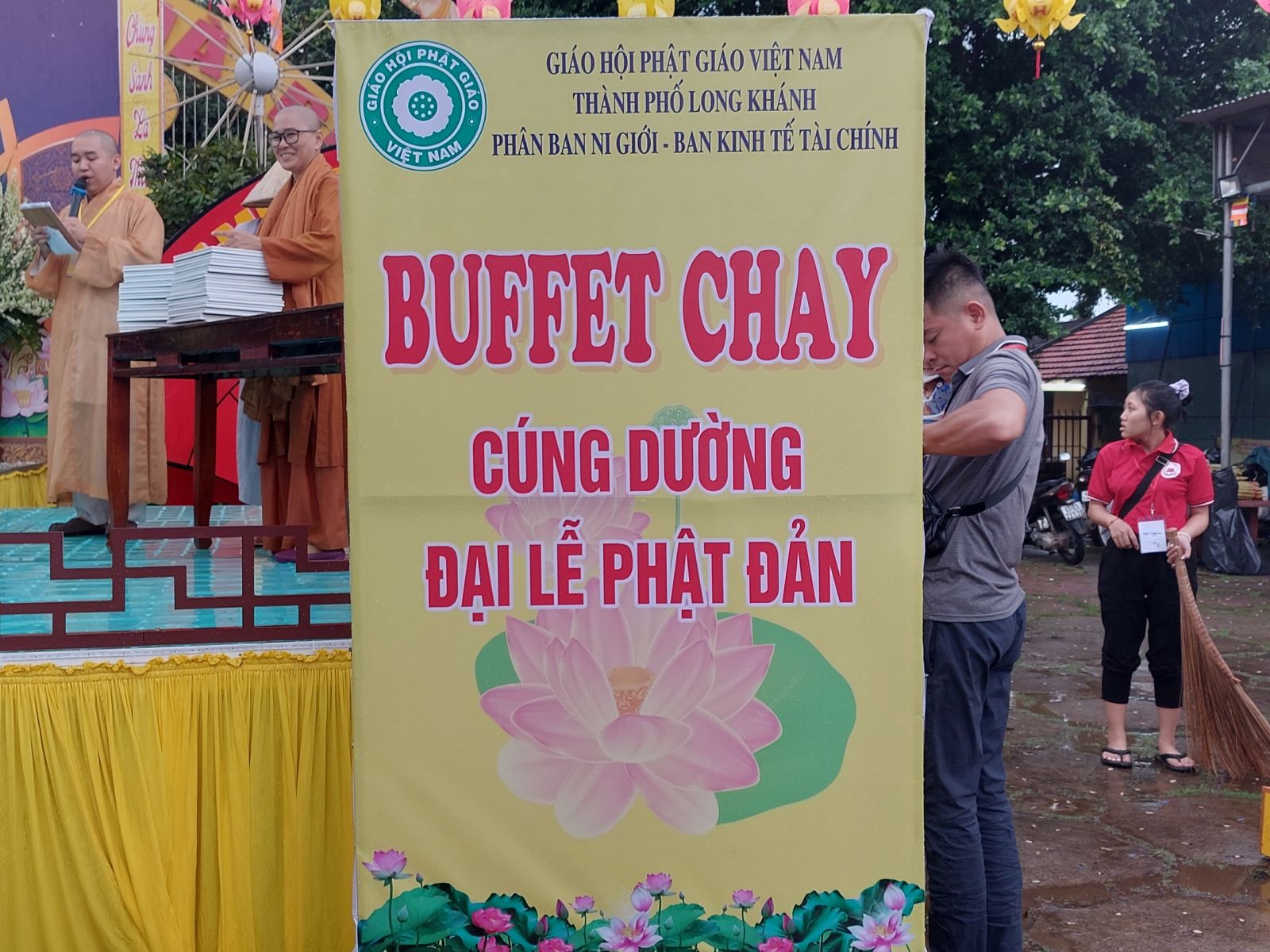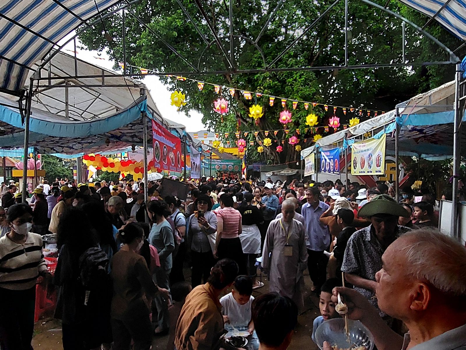 Mặc dù trời mưa bão kéo dài, nhưng hơn 20 đơn vị phát tâm với 70 món ăn vô cùng hấp dẫn và đẹp mắt, đã vất vả nổ lực vận chuyển đồ đạc trong mưa để lo cho tiệc buffet. Những nghĩa cử thật xúc động thân thương để lại ấn tượng trong lòng mọi người.