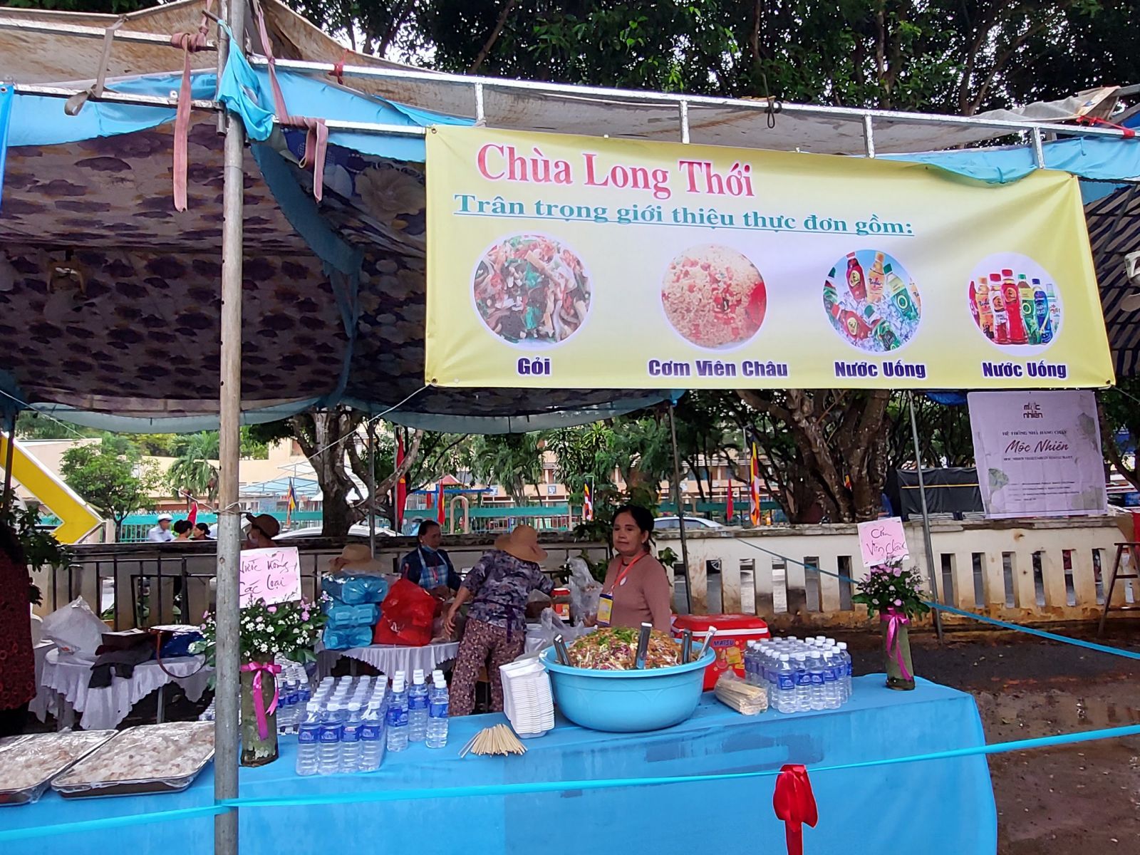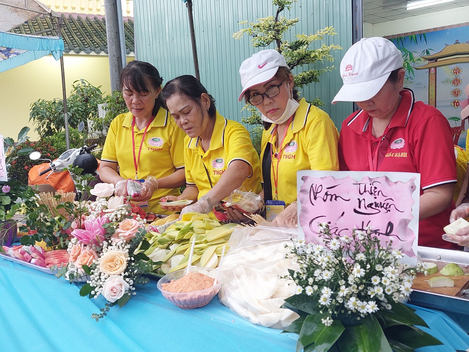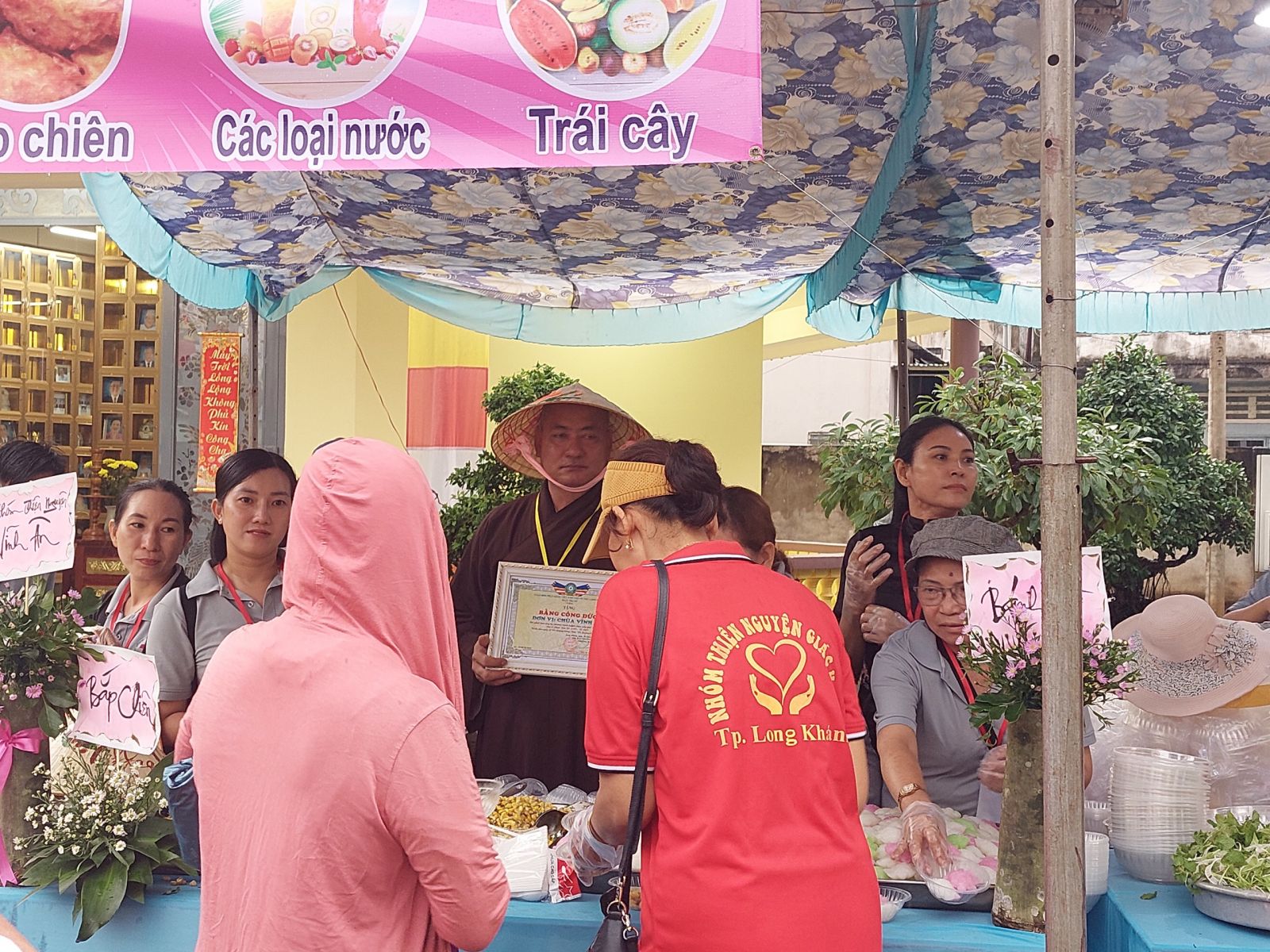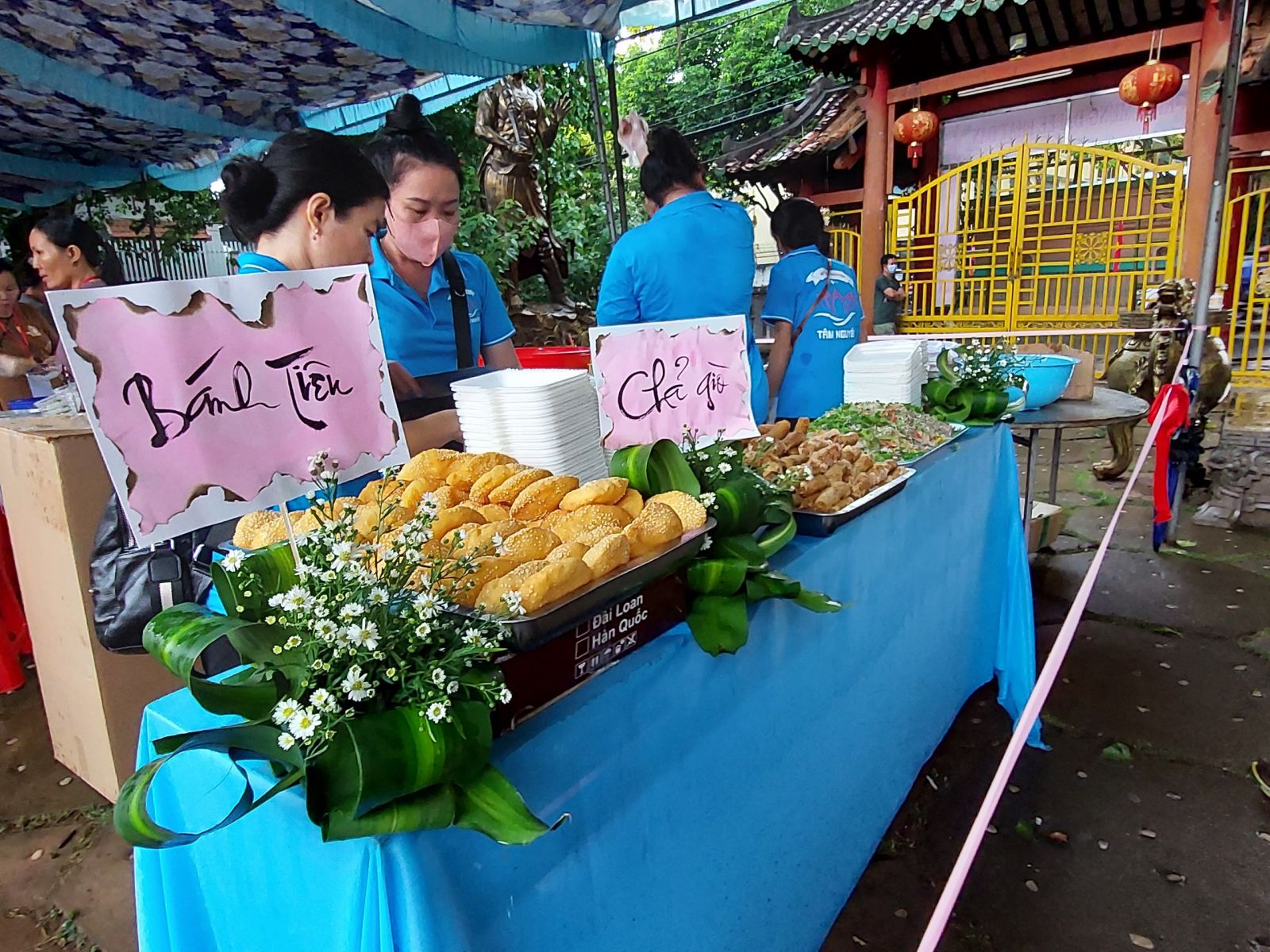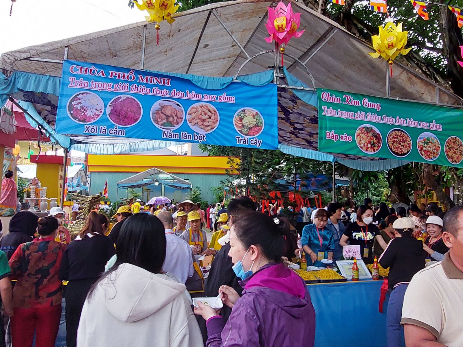 Mặc dù trời mưa bão kéo dài, nhưng hơn 20 đơn vị phát tâm với 70 món ăn vô cùng hấp dẫn và đẹp mắt, đã vất vả nổ lực vận chuyển đồ đạc trong mưa để lo cho tiệc buffet. Những nghĩa cử thật xúc động thân thương để lại ấn tượng trong lòng mọi người.