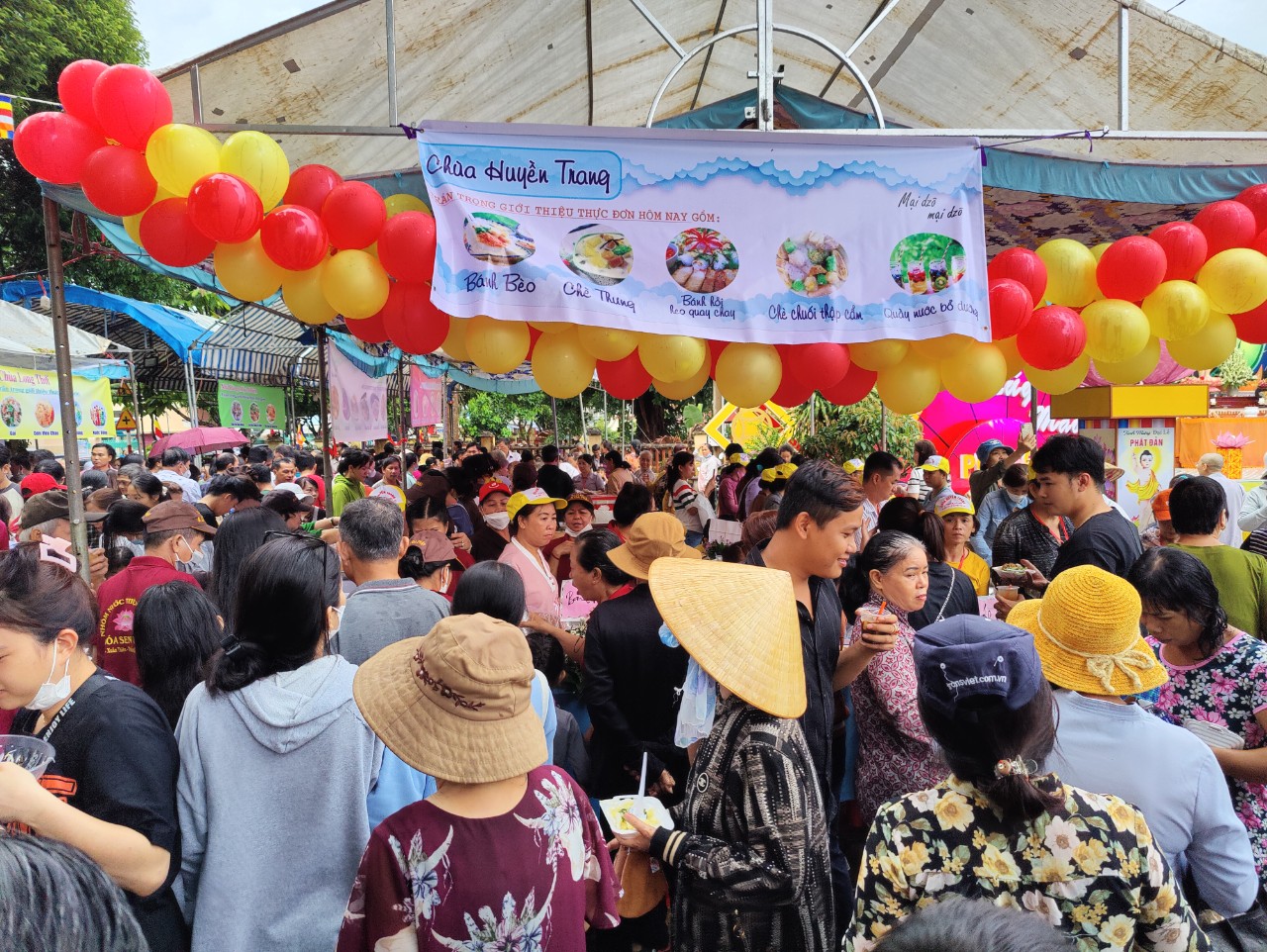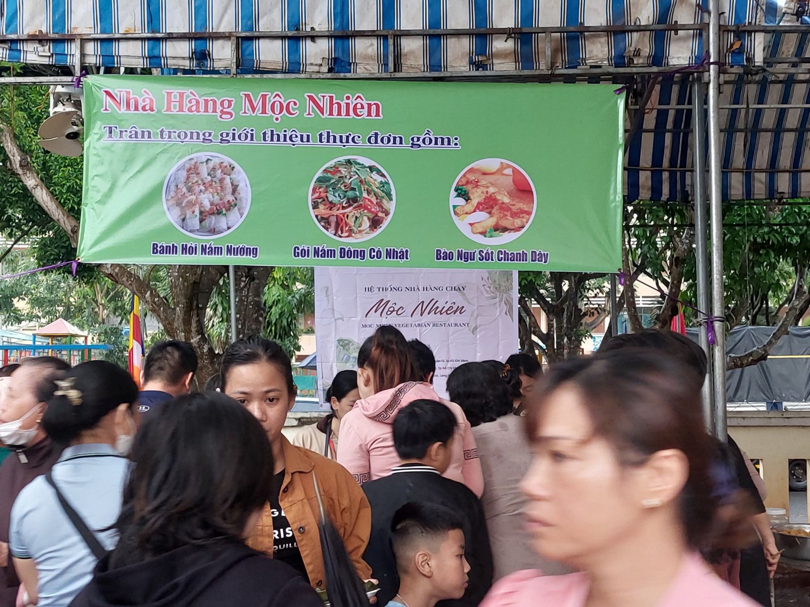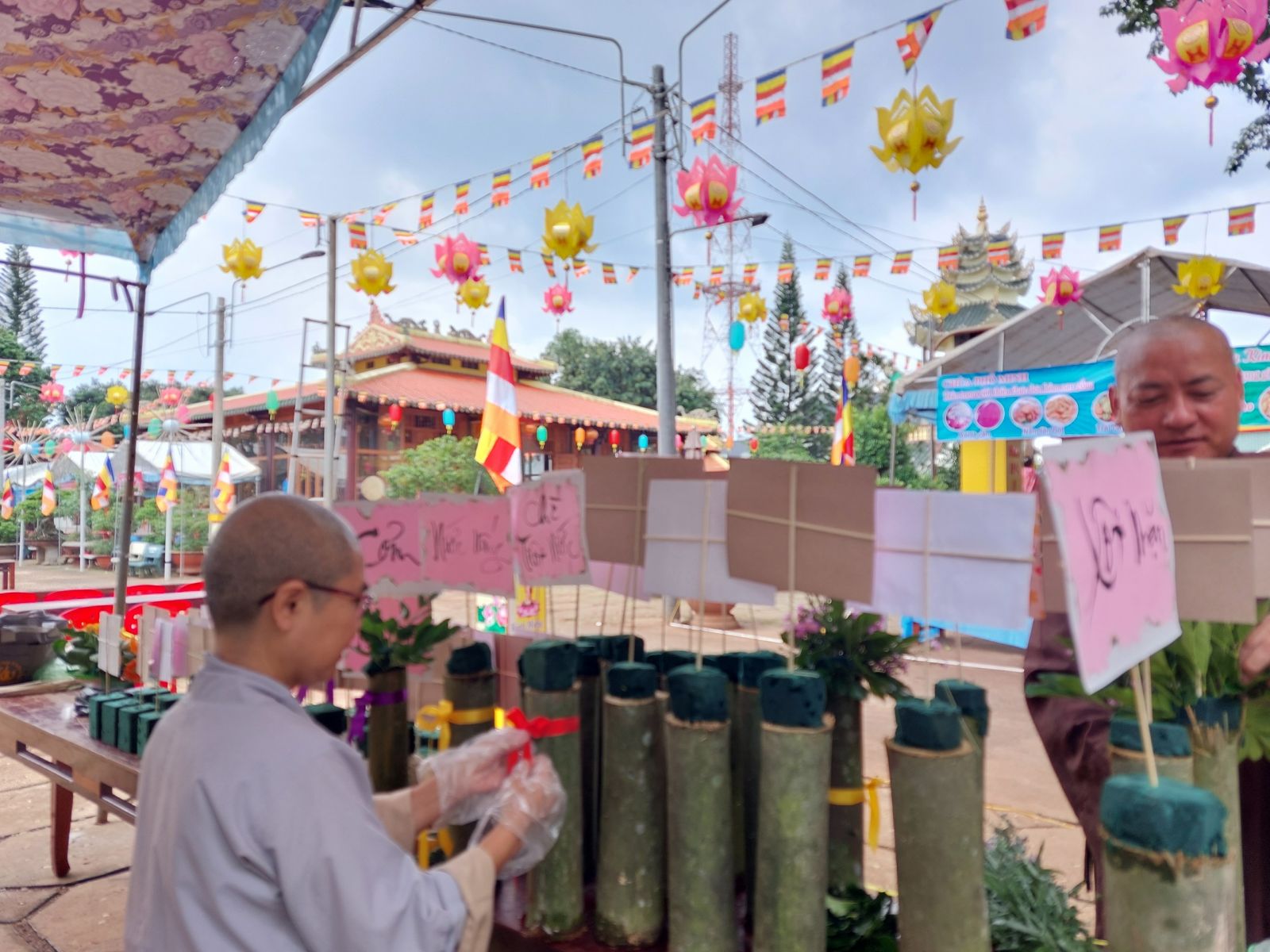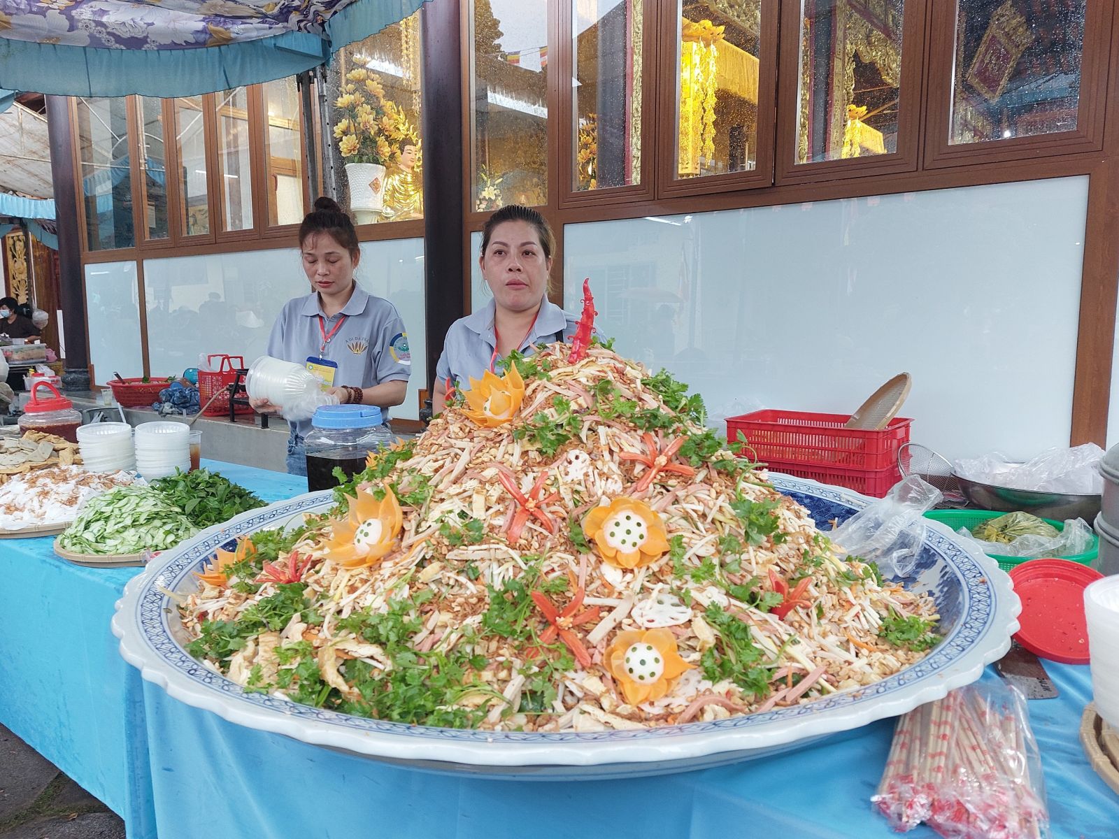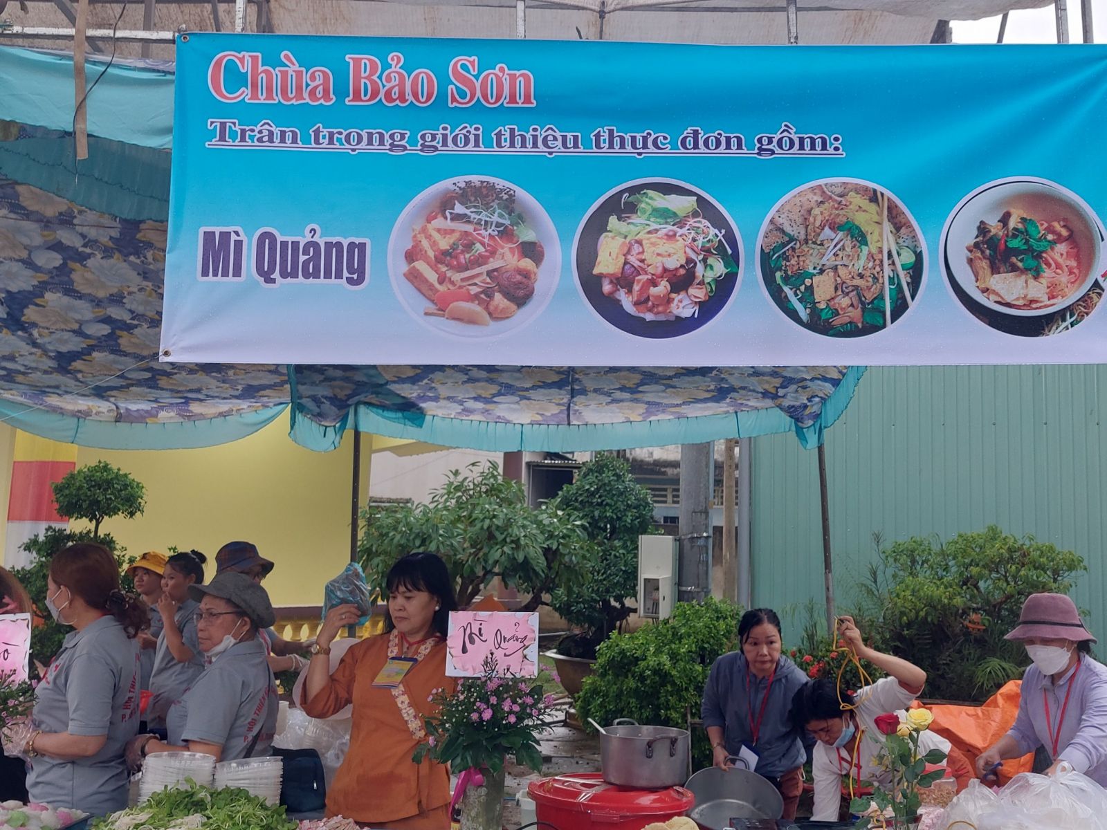 Mặc dù trời mưa bão kéo dài, nhưng hơn 20 đơn vị phát tâm với 70 món ăn vô cùng hấp dẫn và đẹp mắt, đã vất vả nổ lực vận chuyển đồ đạc trong mưa để lo cho tiệc buffet. Những nghĩa cử thật xúc động thân thương để lại ấn tượng trong lòng mọi người.