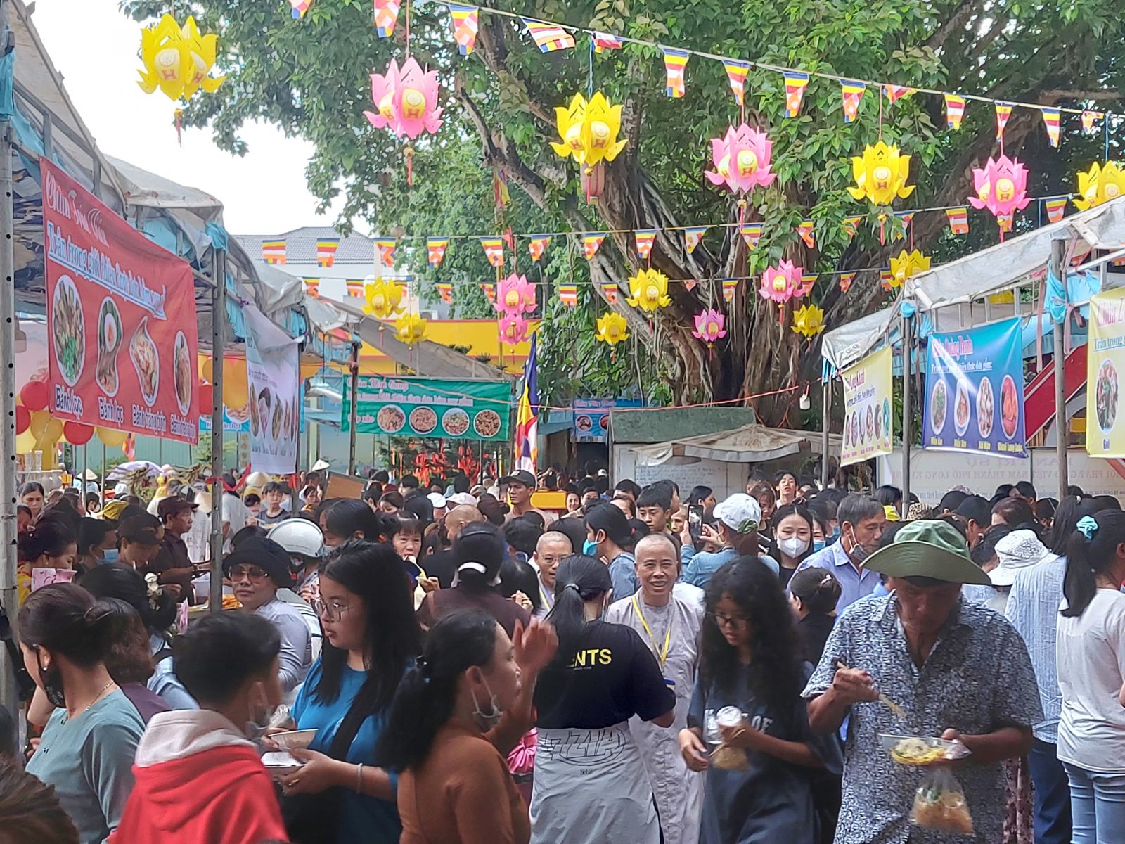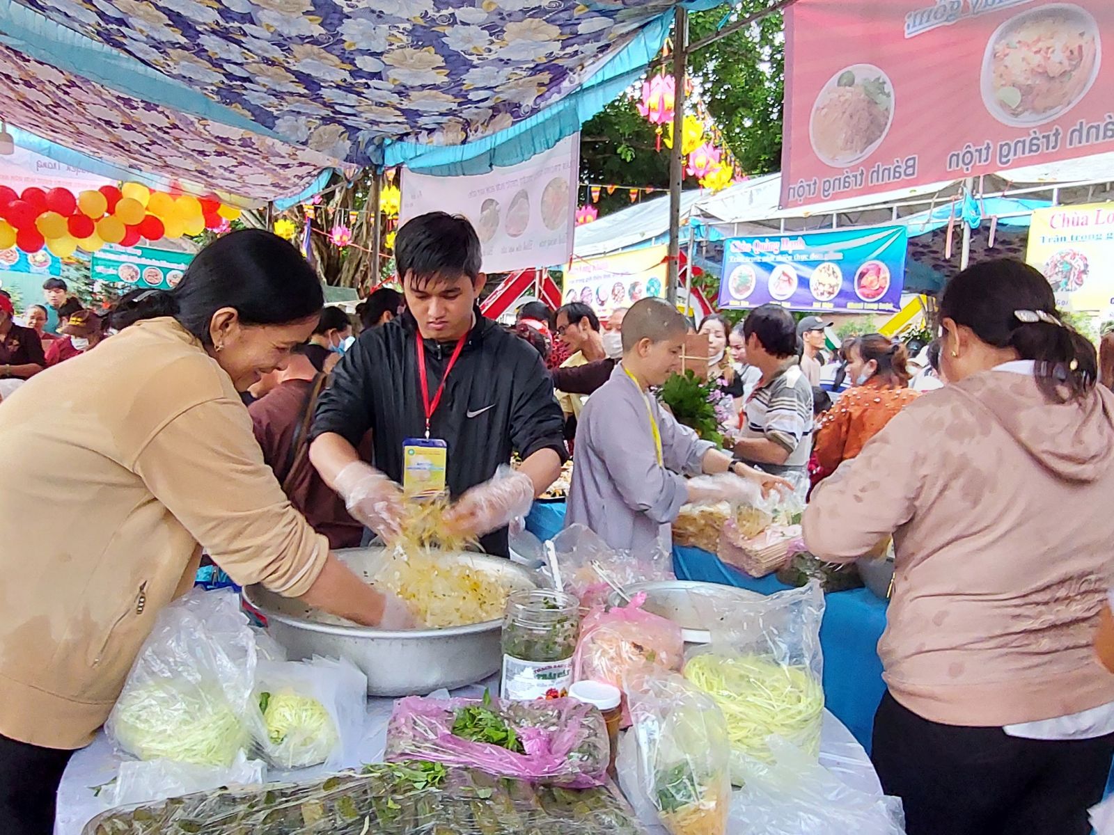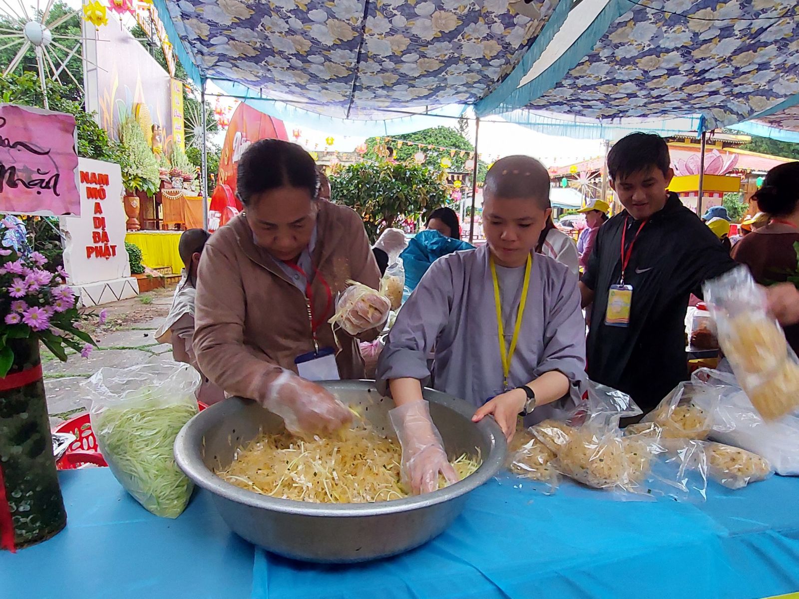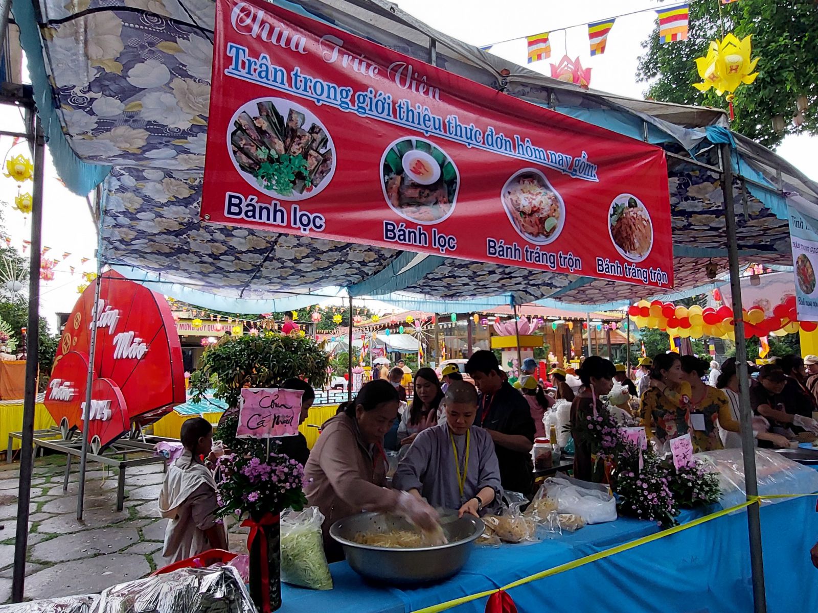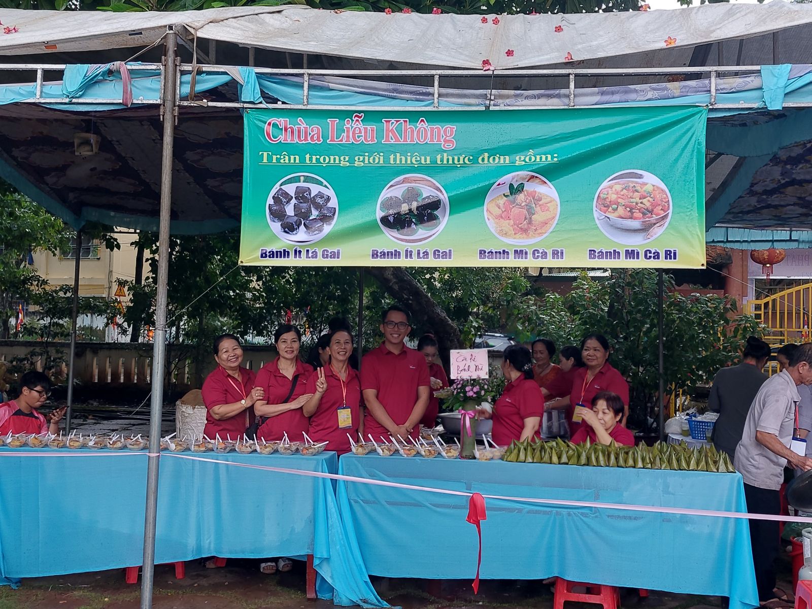 Mặc dù trời mưa bão kéo dài, nhưng hơn 20 đơn vị phát tâm với 70 món ăn vô cùng hấp dẫn và đẹp mắt, đã vất vả nổ lực vận chuyển đồ đạc trong mưa để lo cho tiệc buffet. Những nghĩa cử thật xúc động thân thương để lại ấn tượng trong lòng mọi người.