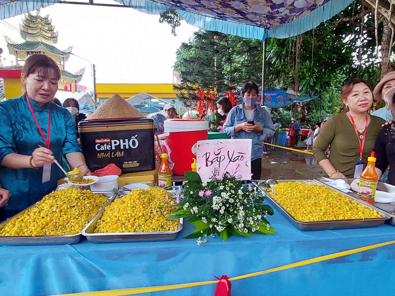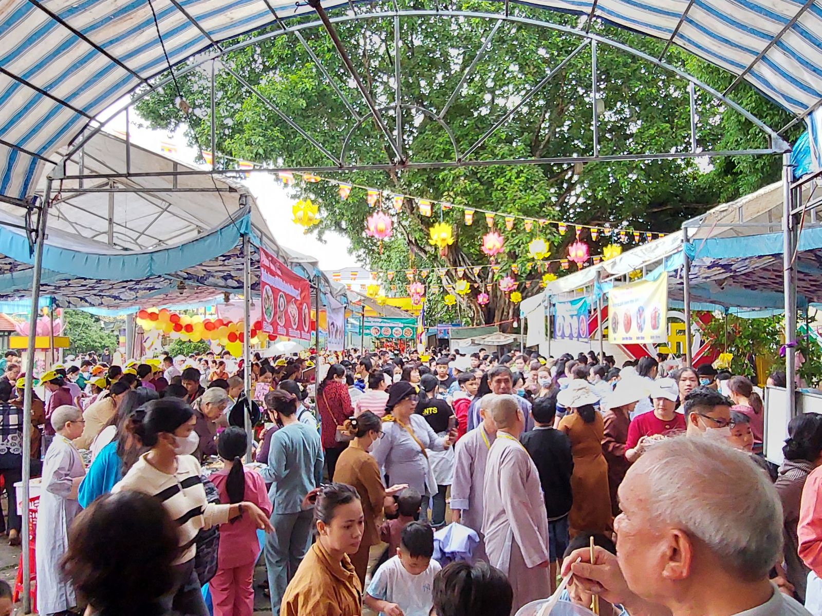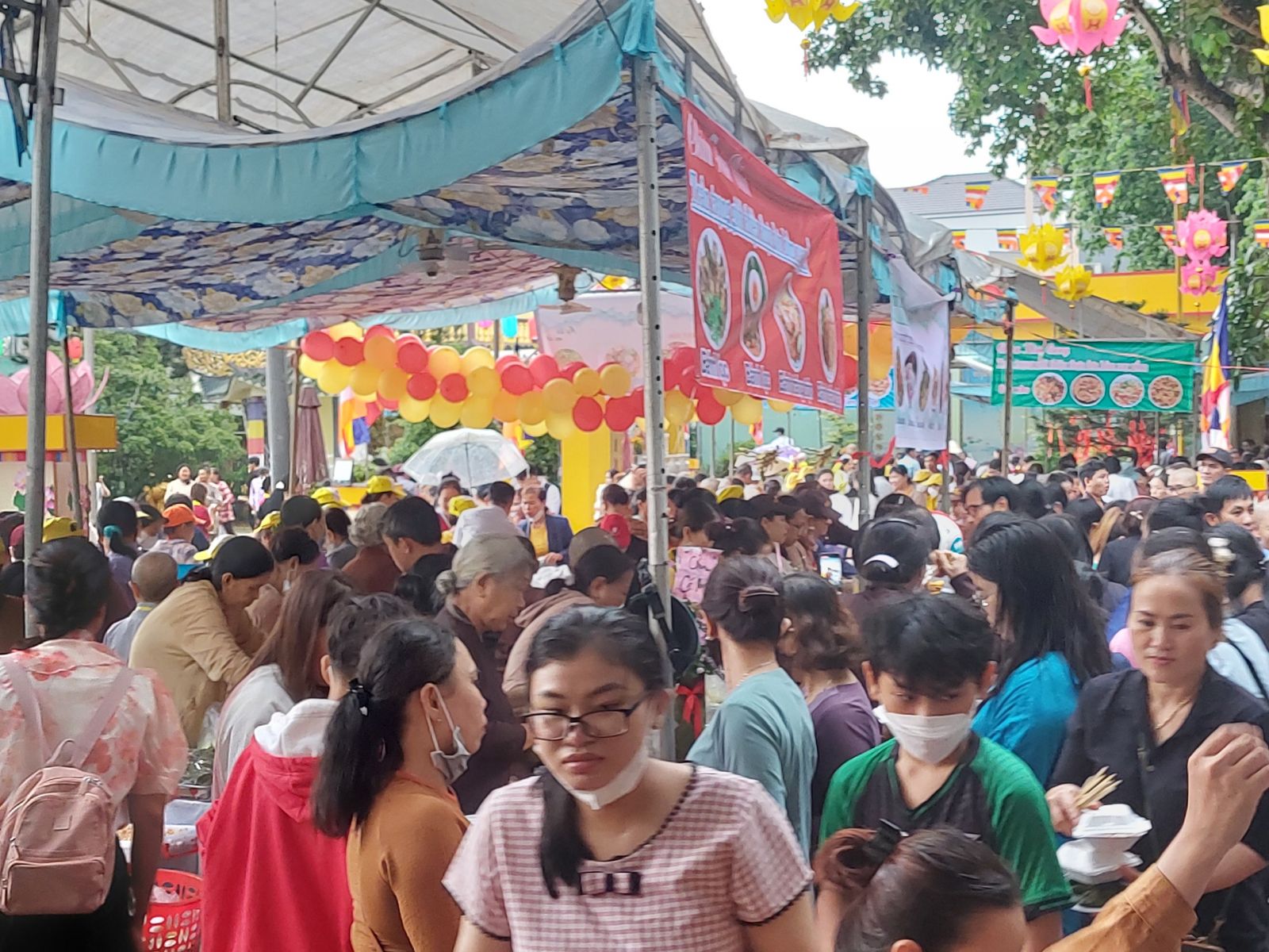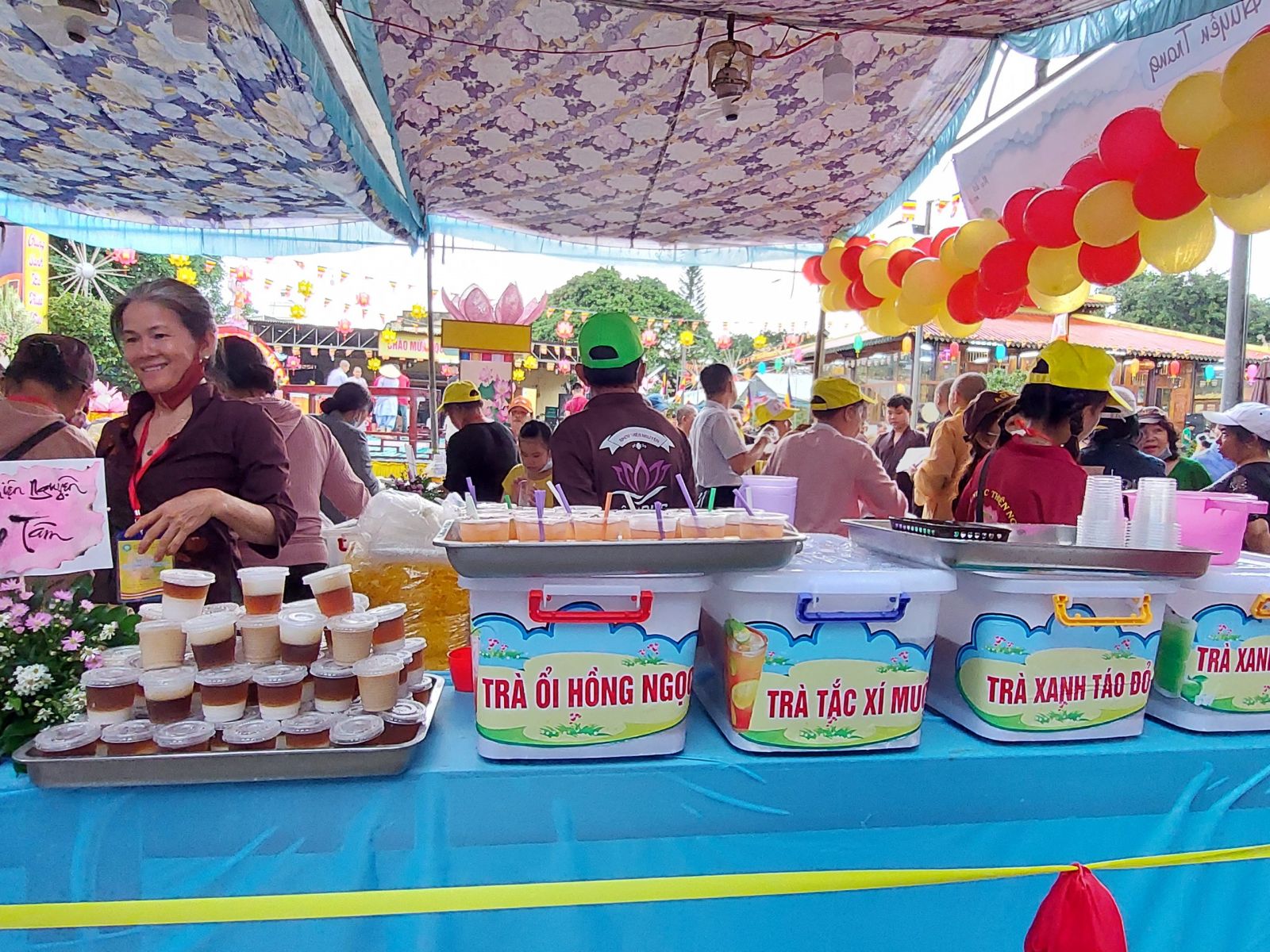 Mặc dù trời mưa bão kéo dài, nhưng hơn 20 đơn vị phát tâm với 70 món ăn vô cùng hấp dẫn và đẹp mắt, đã vất vả nổ lực vận chuyển đồ đạc trong mưa để lo cho tiệc buffet. Những nghĩa cử thật xúc động thân thương để lại ấn tượng trong lòng mọi người.