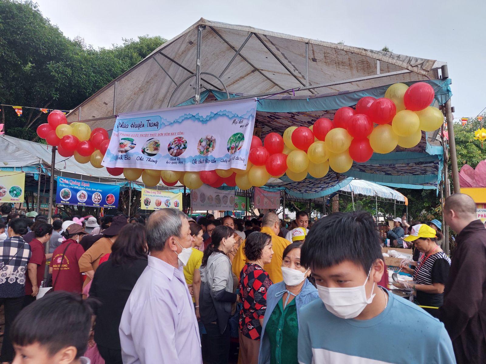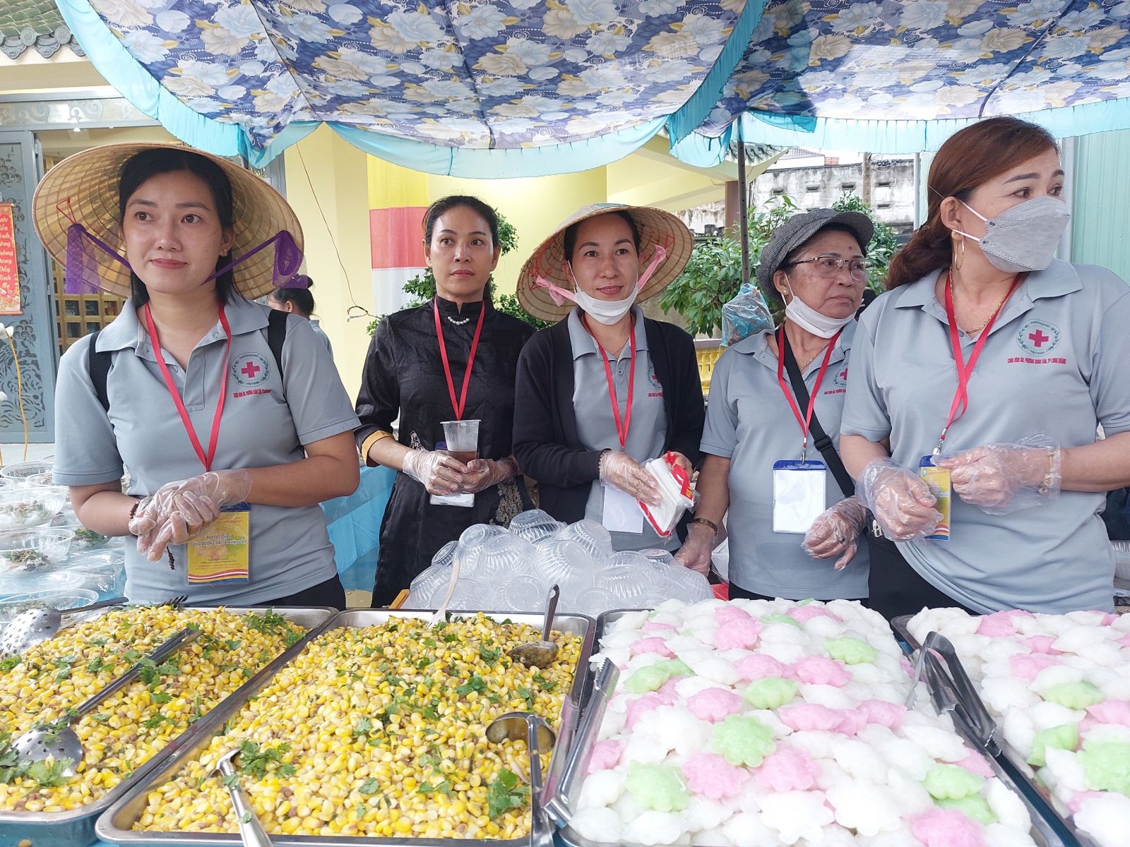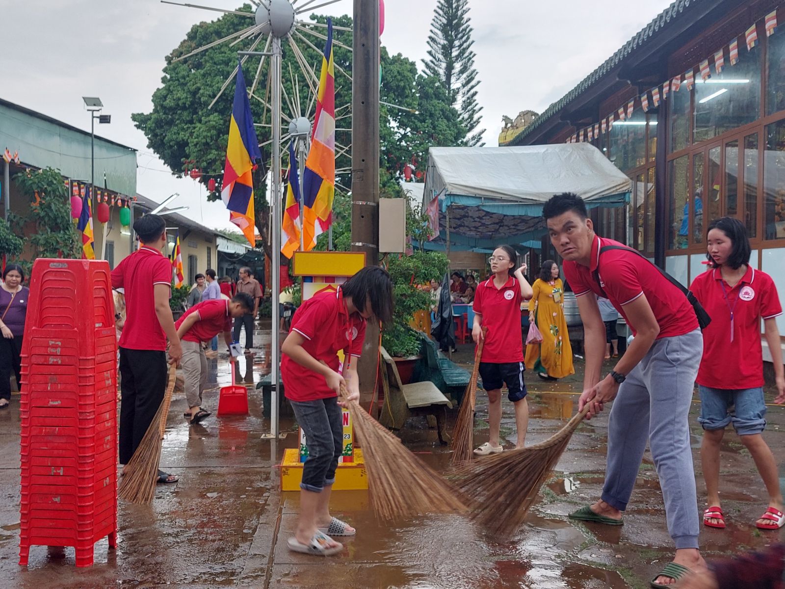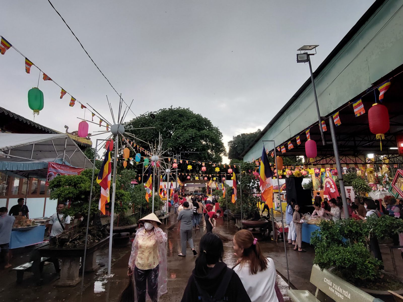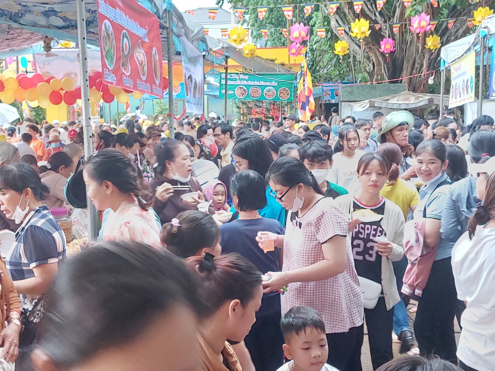Mặc dù trời mưa bão kéo dài, nhưng hơn 20 đơn vị phát tâm với 70 món ăn vô cùng hấp dẫn và đẹp mắt, đã vất vả nổ lực vận chuyển đồ đạc trong mưa để lo cho tiệc buffet. Những nghĩa cử thật xúc động thân thương để lại ấn tượng trong lòng mọi người.