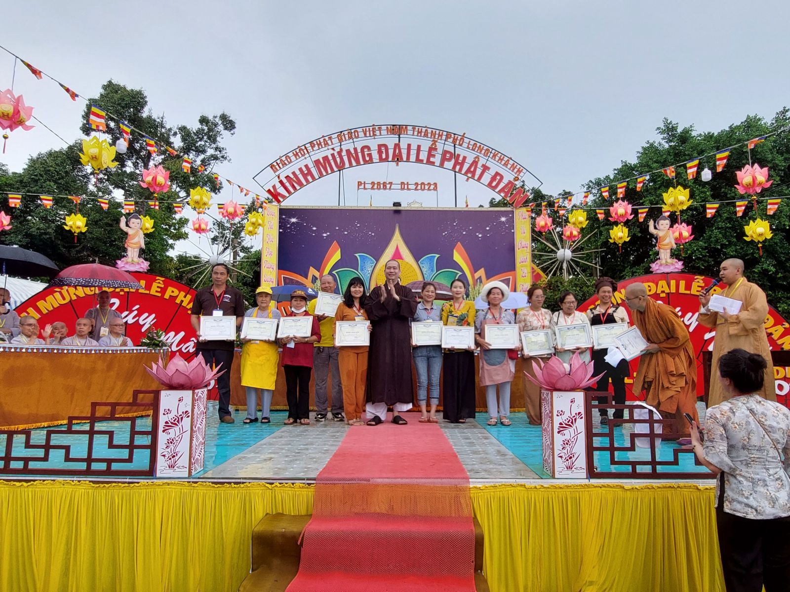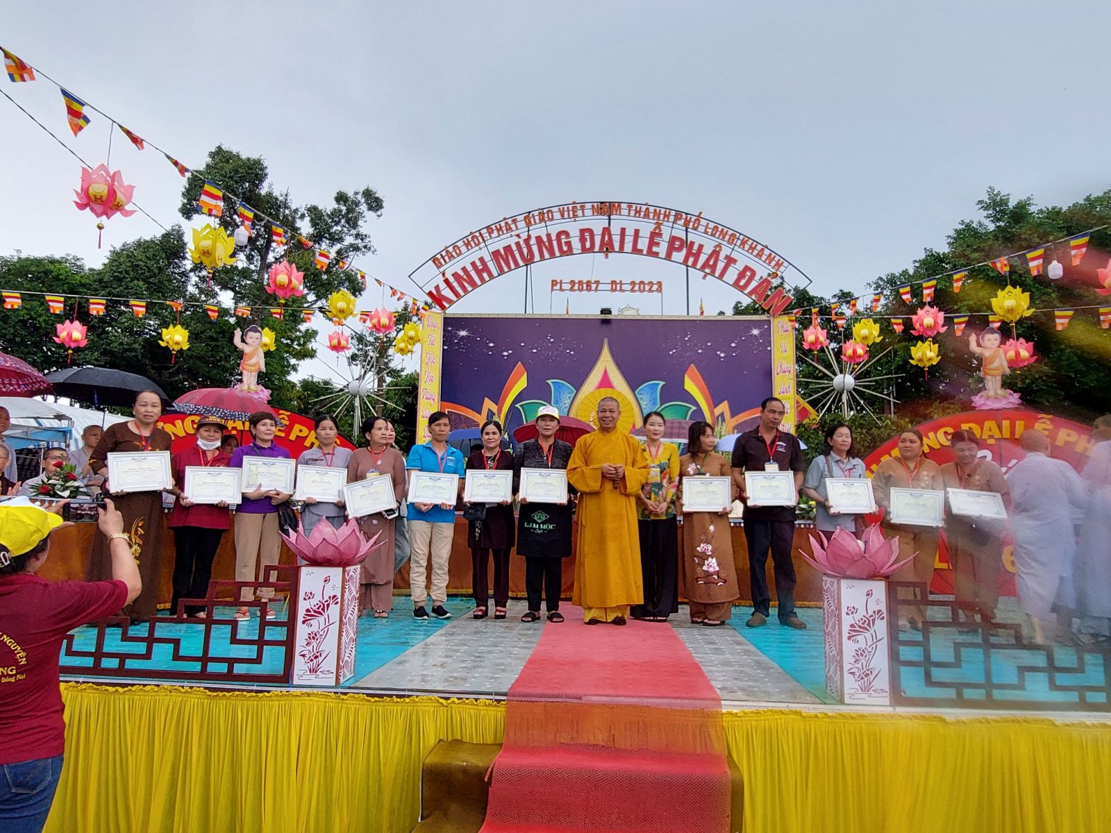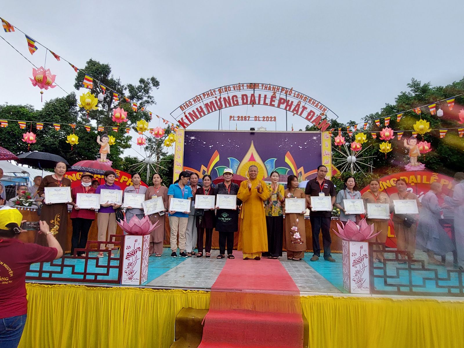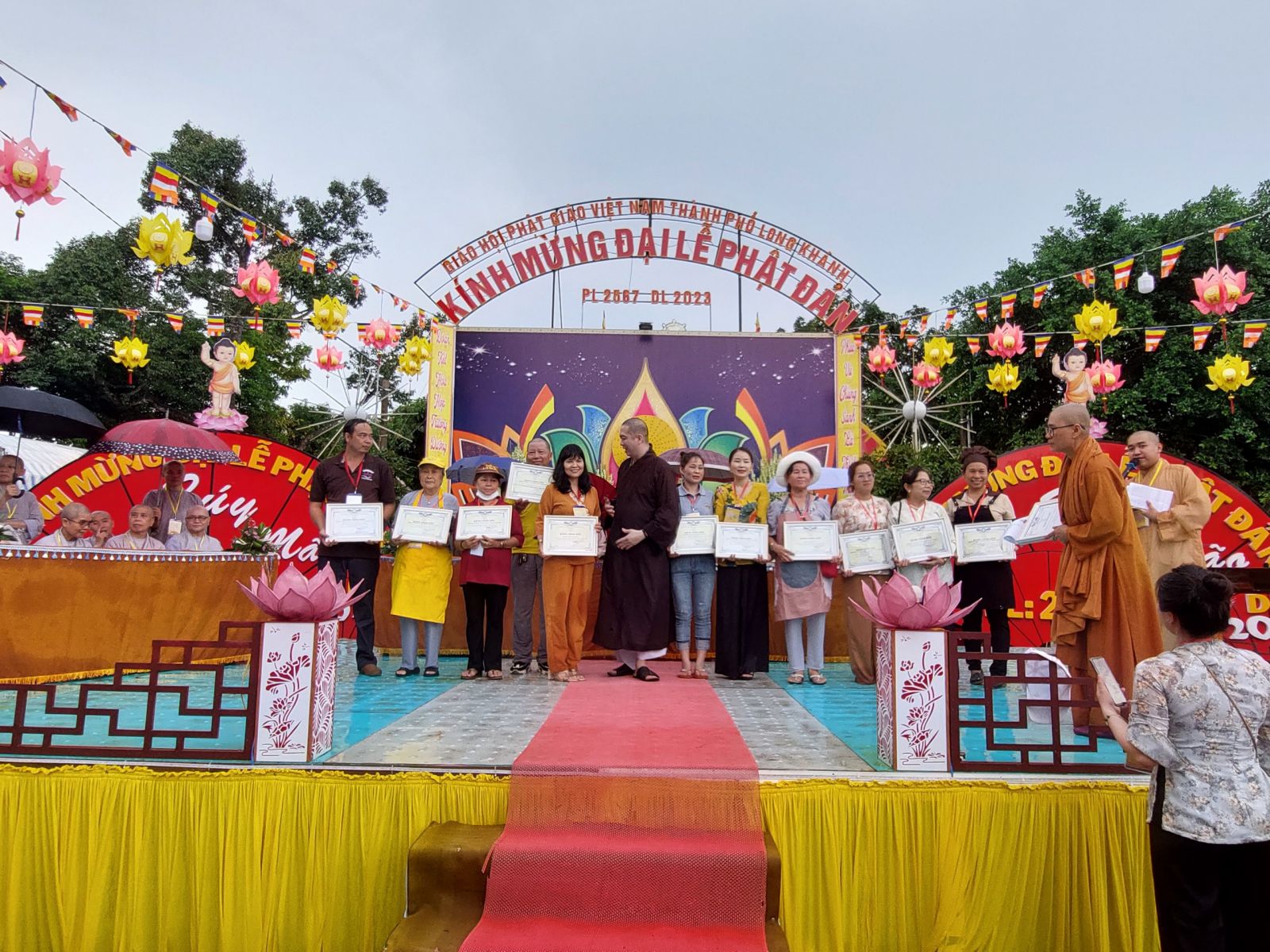 Các đơn vị được BTS tán dương công đức và phát bằng khen trong buổi khai mạc. Mặc dù mưa gió rất lớn nhưng ai ai cũng nở nụ cười trên môi vì được phụng sự chút gì nhỏ bé dâng lên cúng dường nhân đại lễ Phật đản.