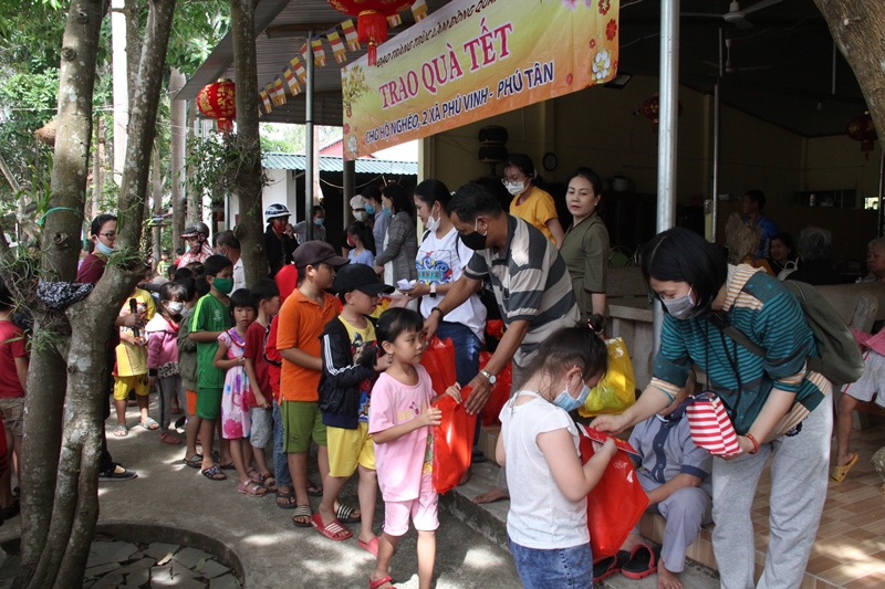Mỗi phần quà gồm gạo, mì ăn liền, chăn đắp, nhu yếu phẩm cần thiết trị giá trên 400.000 đồng. Ngoài ra, Đạo tràng Trúc Lâm Đông Quang còn tặng 100 phần quà là bánh kẹo cho các trẻ em trên địa bàn. Kinh phí và vật phẩm trong đợt từ thiện này là sự vận động đóng góp của các Đoàn phật tử thuộc hệ phái Trúc Lâm tại TP Hồ Chí Minh, TP Biên Hoà và tỉnh Bình Dương.