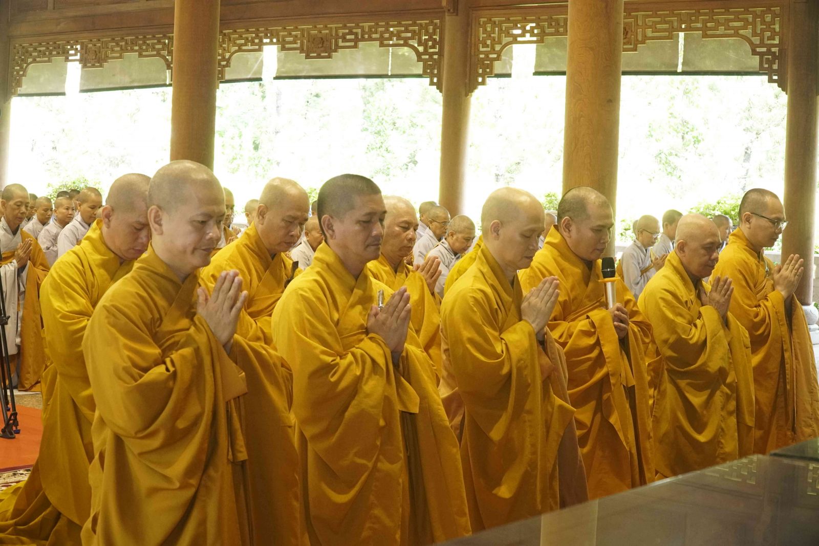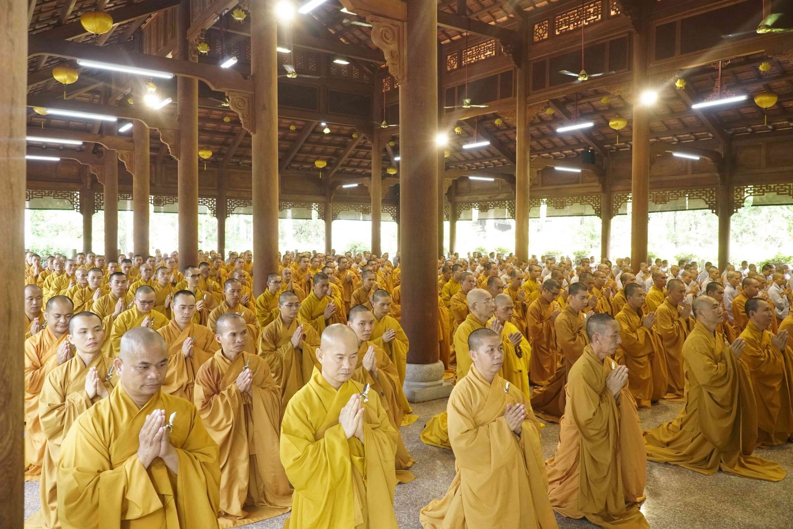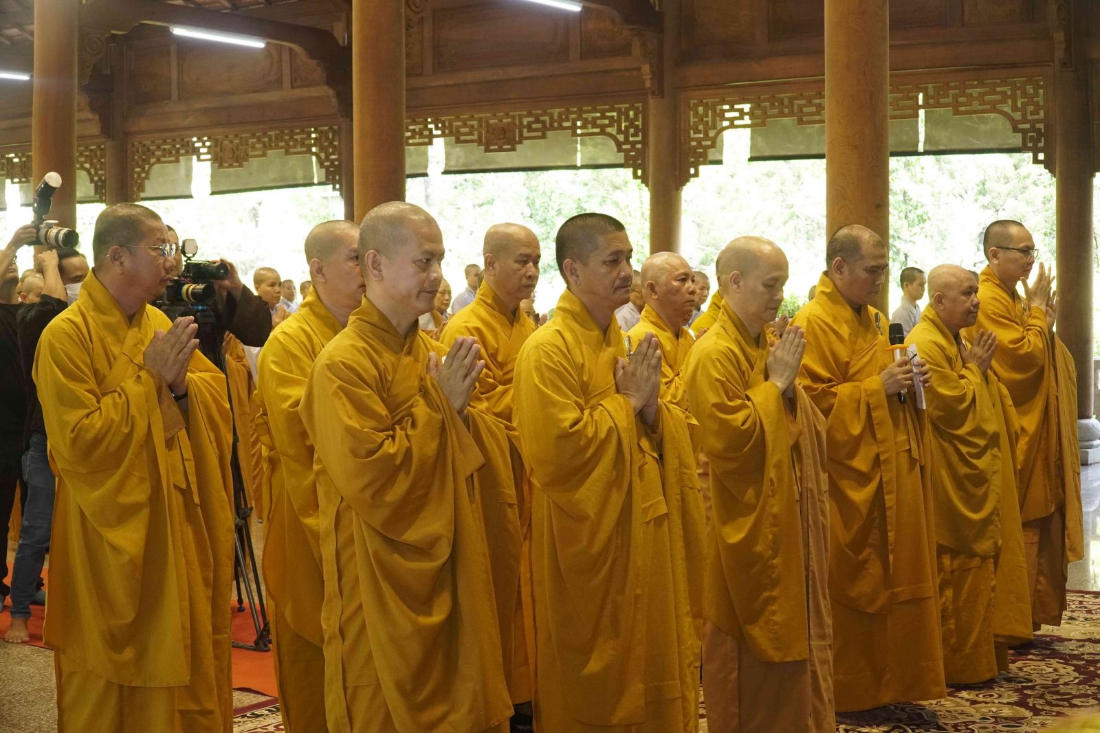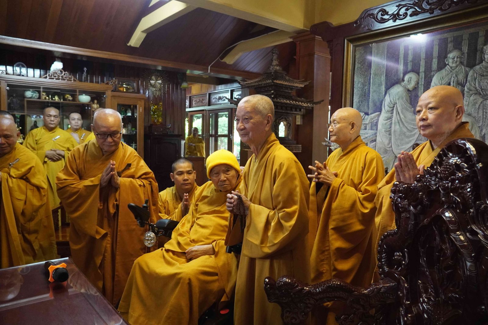 Cung đón Hòa thượng Đức pháp chủ GHPGVN có HT. Thích Nhật Quang - Ủy viên Thường trực HĐCM GHPGVN, Chứng minh Ban Trị sự GHPGVN tỉnh Đồng Nai, Trưởng ban Quản Trị Thiền Phái Trúc Lâm Việt Nam; TT. Thích Huệ Khai - Ủy viên Thường trực HĐTS, Trưởng Ban Trị sự, Trưởng ban Tăng sự GHPGVN tỉnh Đồng Nai; TT. Thích Huệ Sanh - Ủy viên HĐTS, Phó Ban Trị sự, Trưởng ban Hoằng Pháp GHPGVN tỉnh; TT. Thích Thông Hạnh – Phó ban Quản Trị Thiền phái Trúc Lâm Việt Nam; TT. Thích Đạo Huy – Phó ban kiêm Chánh thư ký BTS GHPGVN tỉnh; TT. Thích Minh Trì – Phó Ban Trị sự tỉnh, Trưởng Ban Trị sự GHPGVN huyện Trảng Bom; TT. Thích Huệ Nghiệp – Phó Ban Trị sự, Trưởng ban Pháp chế GHPGVN tỉnh; TT. Thích Quảng Trí – Phó Ban Trị sự, Trưởng ban Nghi lễ GHPGVN tỉnh; Cùng chư tôn đức Ban Trị sự GHPGVN tỉnh, Chư tôn đức Thiền phái Trúc lâm và Chư hành giả An cư Kiết hạ tại Thiền viện Thường Chiếu đồng trang nghiêm cung đón.