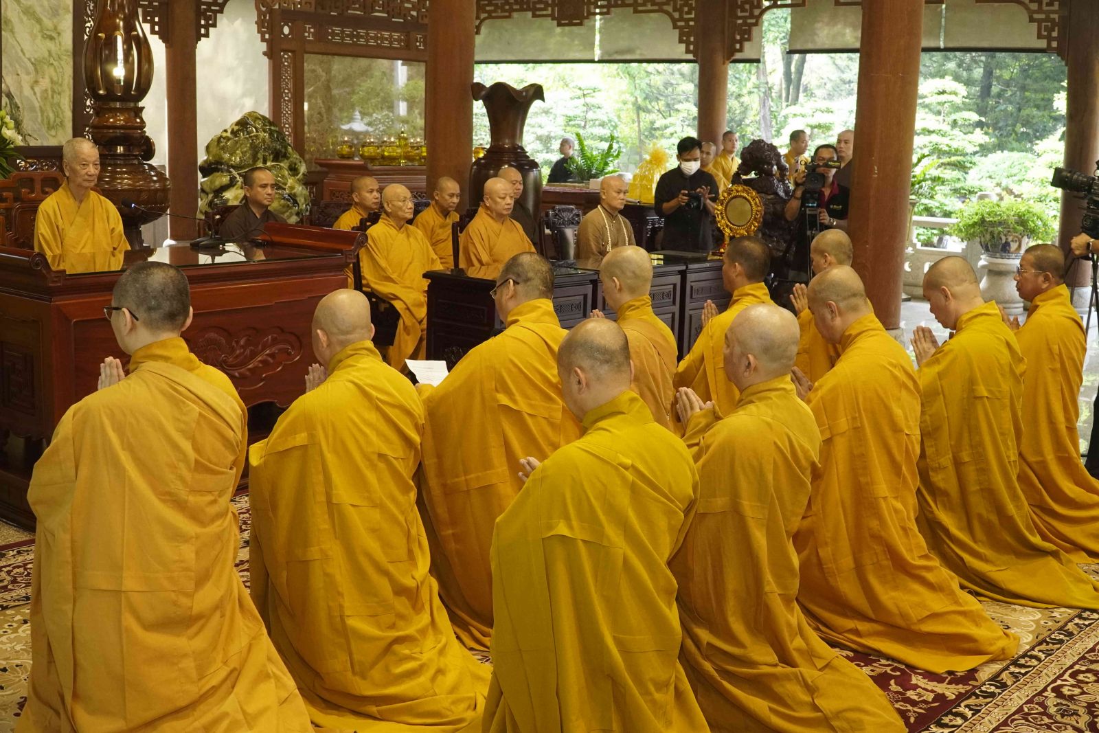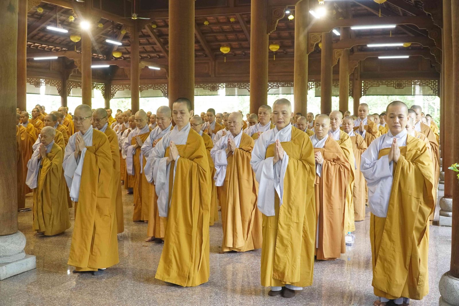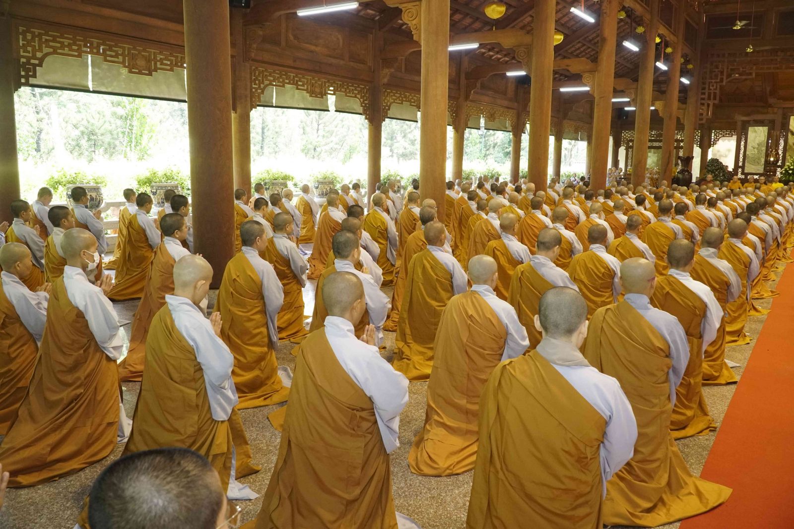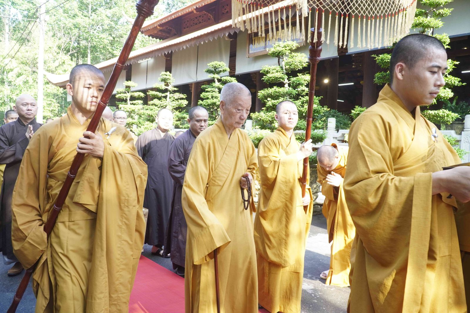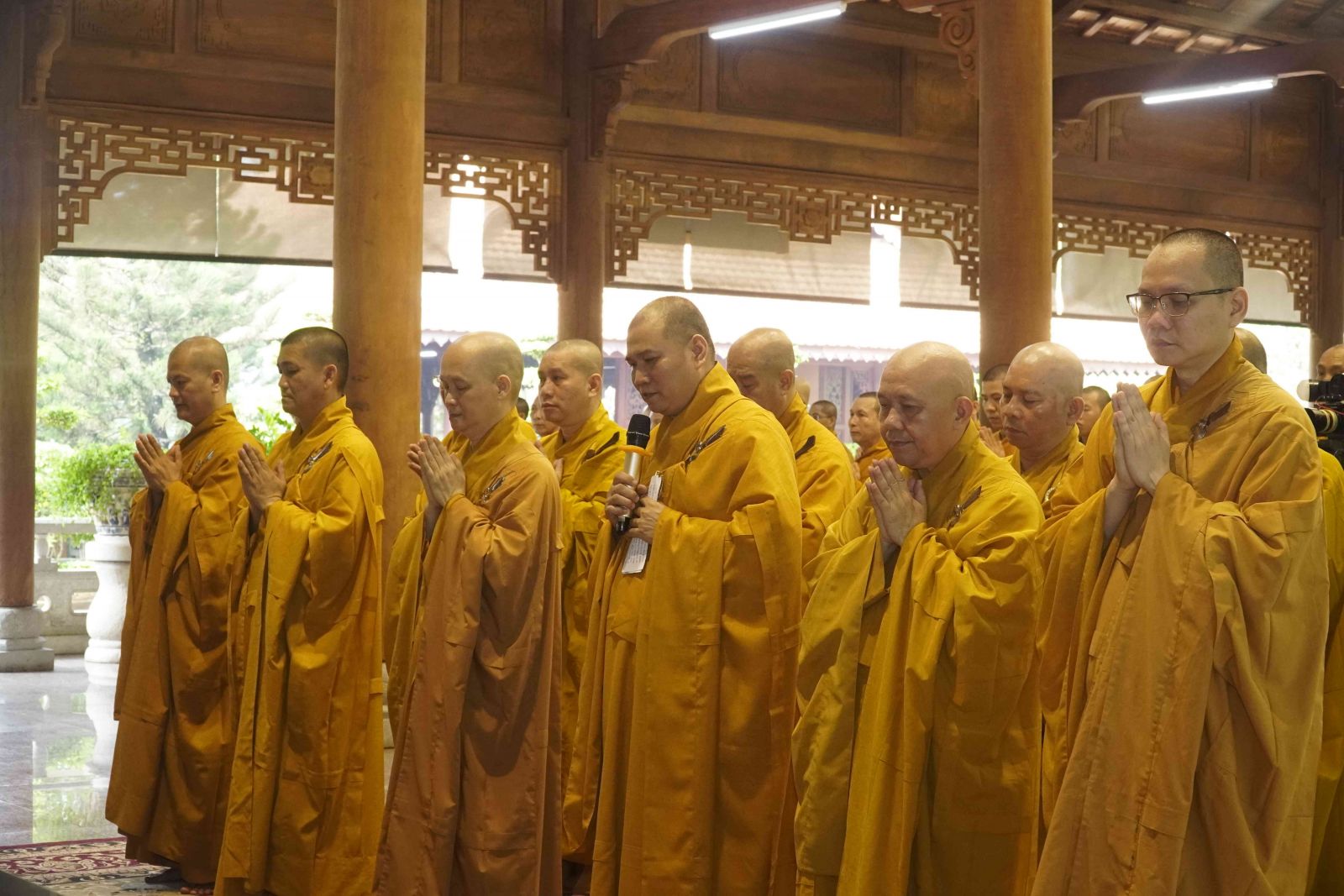 Cung đón Hòa thượng Đức pháp chủ GHPGVN có HT. Thích Nhật Quang - Ủy viên Thường trực HĐCM GHPGVN, Chứng minh Ban Trị sự GHPGVN tỉnh Đồng Nai, Trưởng ban Quản Trị Thiền Phái Trúc Lâm Việt Nam; TT. Thích Huệ Khai - Ủy viên Thường trực HĐTS, Trưởng Ban Trị sự, Trưởng ban Tăng sự GHPGVN tỉnh Đồng Nai; TT. Thích Huệ Sanh - Ủy viên HĐTS, Phó Ban Trị sự, Trưởng ban Hoằng Pháp GHPGVN tỉnh; TT. Thích Thông Hạnh – Phó ban Quản Trị Thiền phái Trúc Lâm Việt Nam; TT. Thích Đạo Huy – Phó ban kiêm Chánh thư ký BTS GHPGVN tỉnh; TT. Thích Minh Trì – Phó Ban Trị sự tỉnh, Trưởng Ban Trị sự GHPGVN huyện Trảng Bom; TT. Thích Huệ Nghiệp – Phó Ban Trị sự, Trưởng ban Pháp chế GHPGVN tỉnh; TT. Thích Quảng Trí – Phó Ban Trị sự, Trưởng ban Nghi lễ GHPGVN tỉnh; Cùng chư tôn đức Ban Trị sự GHPGVN tỉnh, Chư tôn đức Thiền phái Trúc lâm và Chư hành giả An cư Kiết hạ tại Thiền viện Thường Chiếu đồng trang nghiêm cung đón.