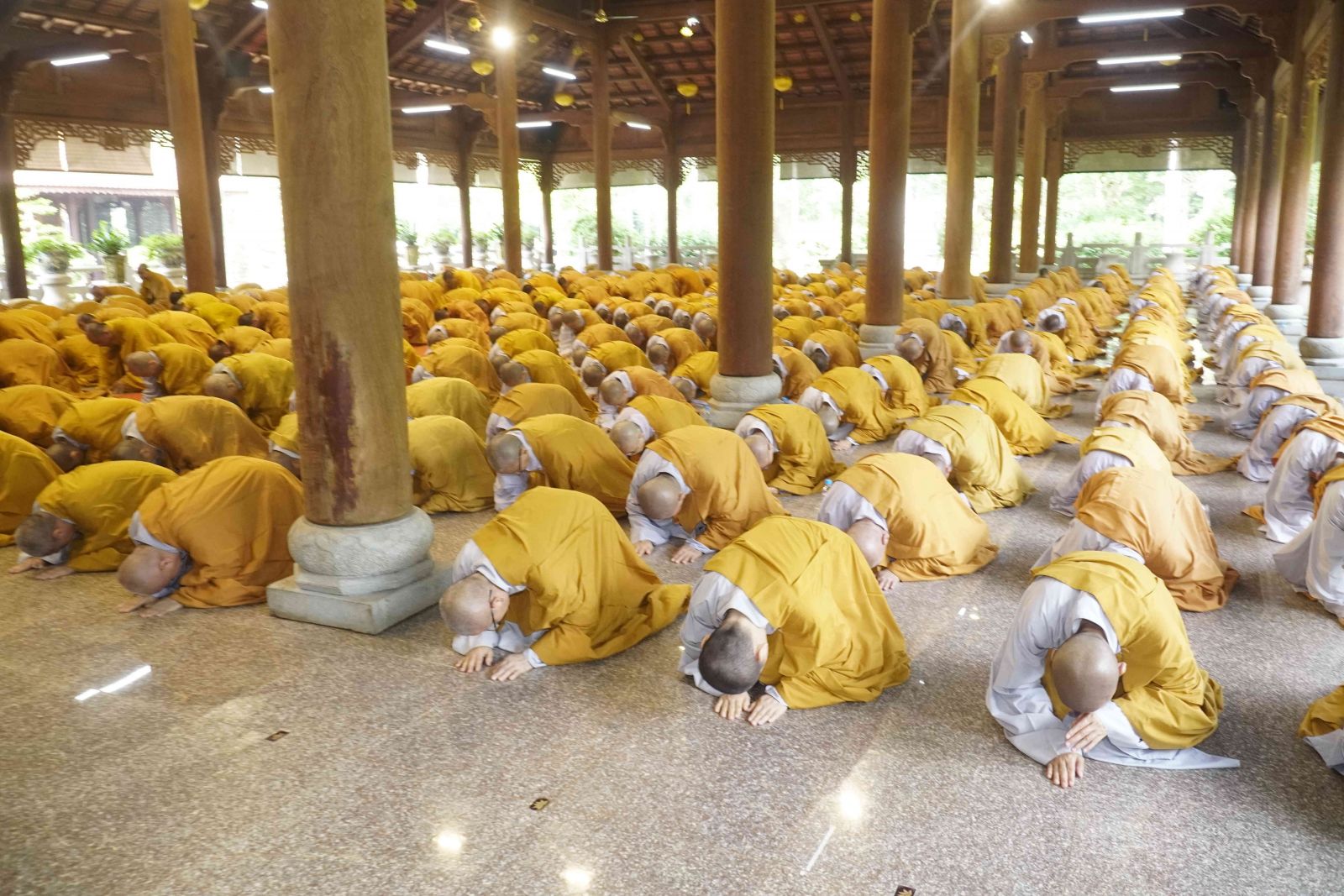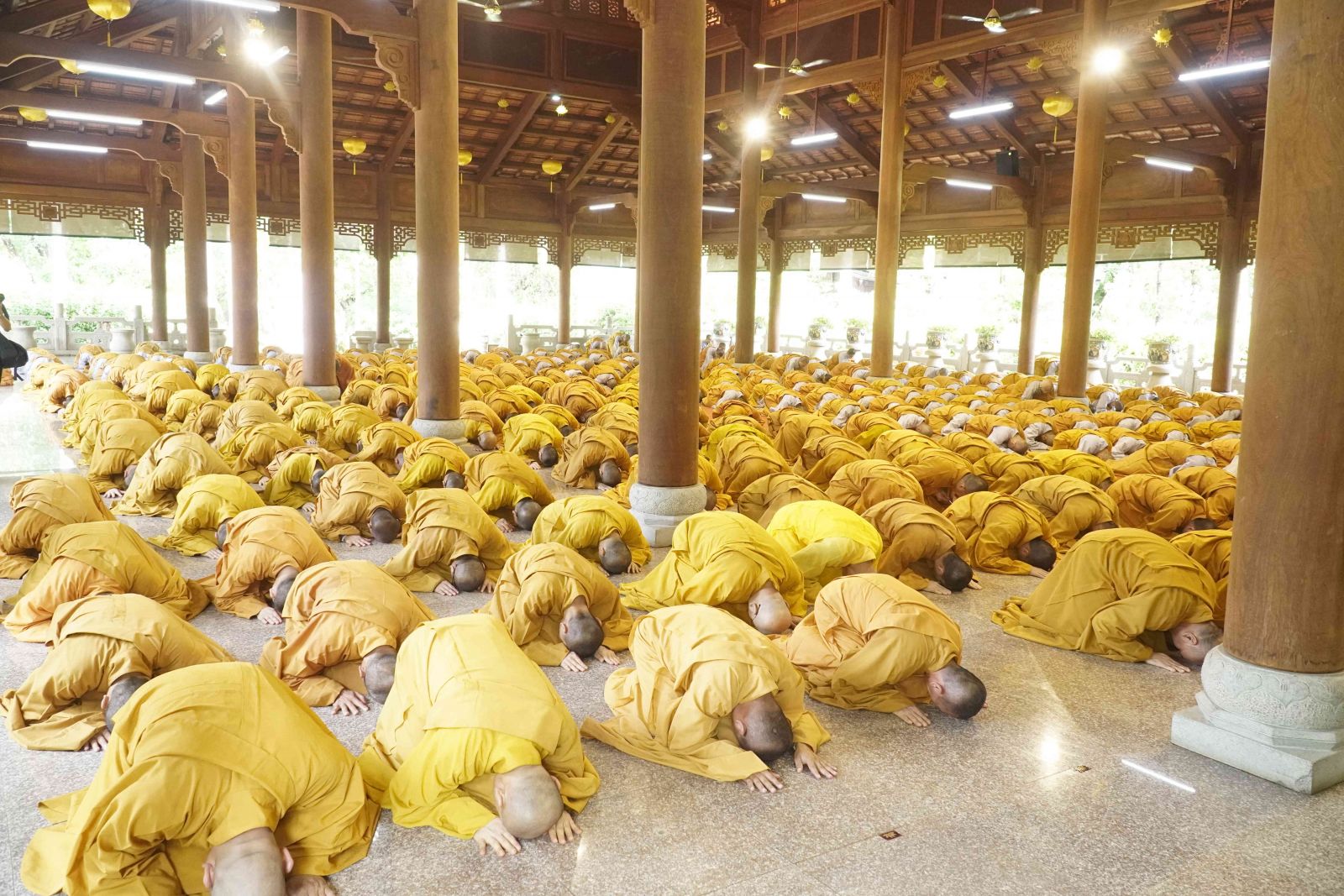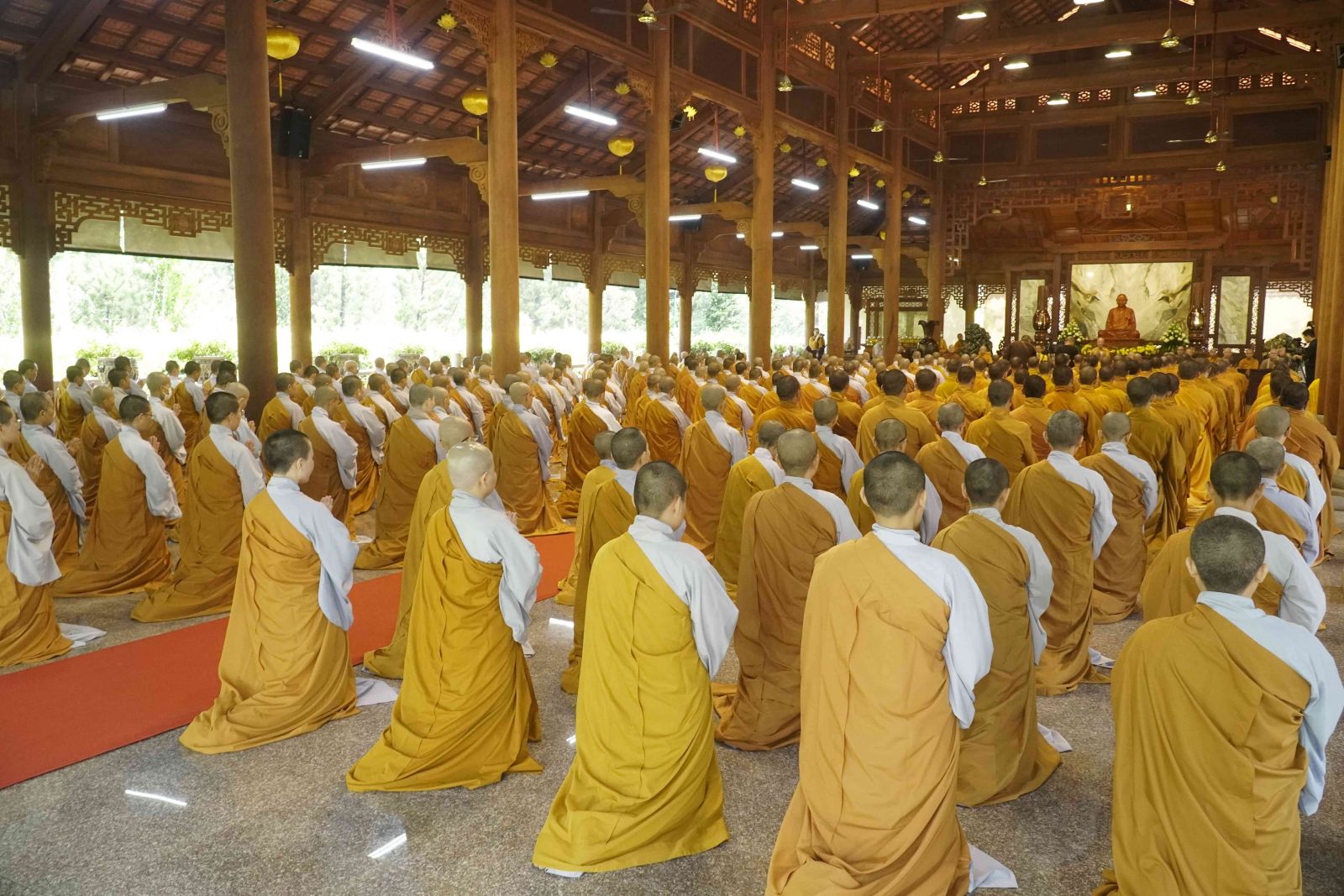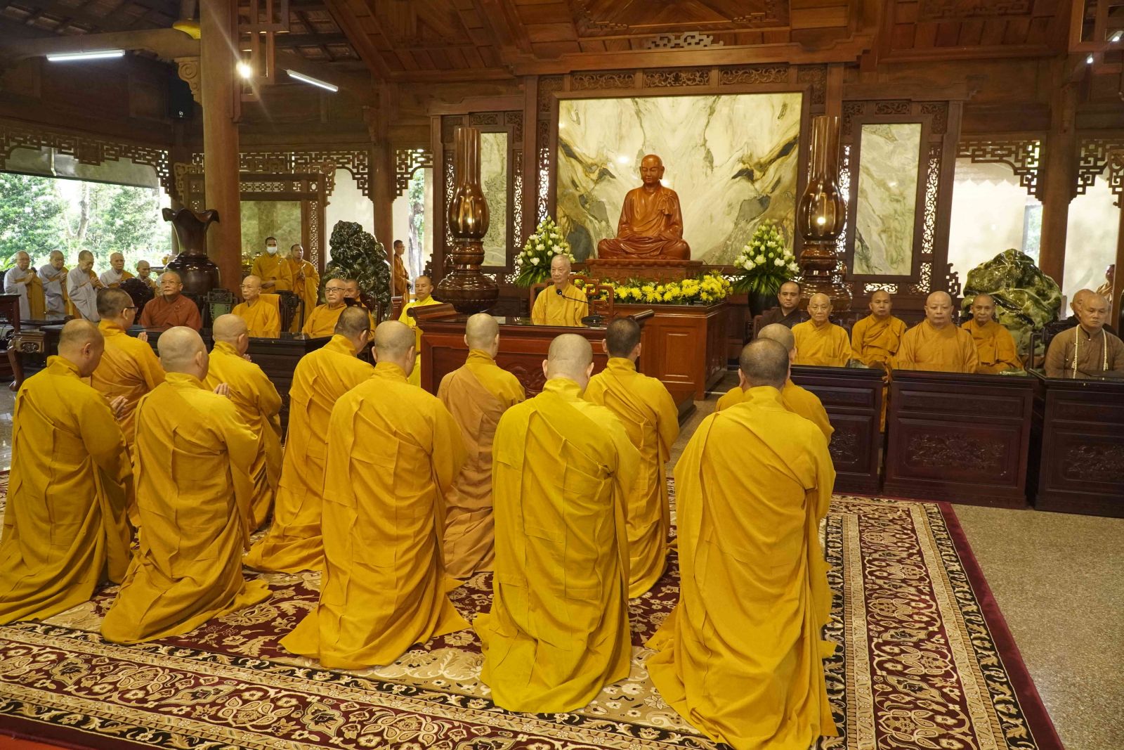 Cung đón Hòa thượng Đức pháp chủ GHPGVN có HT. Thích Nhật Quang - Ủy viên Thường trực HĐCM GHPGVN, Chứng minh Ban Trị sự GHPGVN tỉnh Đồng Nai, Trưởng ban Quản Trị Thiền Phái Trúc Lâm Việt Nam; TT. Thích Huệ Khai - Ủy viên Thường trực HĐTS, Trưởng Ban Trị sự, Trưởng ban Tăng sự GHPGVN tỉnh Đồng Nai; TT. Thích Huệ Sanh - Ủy viên HĐTS, Phó Ban Trị sự, Trưởng ban Hoằng Pháp GHPGVN tỉnh; TT. Thích Thông Hạnh – Phó ban Quản Trị Thiền phái Trúc Lâm Việt Nam; TT. Thích Đạo Huy – Phó ban kiêm Chánh thư ký BTS GHPGVN tỉnh; TT. Thích Minh Trì – Phó Ban Trị sự tỉnh, Trưởng Ban Trị sự GHPGVN huyện Trảng Bom; TT. Thích Huệ Nghiệp – Phó Ban Trị sự, Trưởng ban Pháp chế GHPGVN tỉnh; TT. Thích Quảng Trí – Phó Ban Trị sự, Trưởng ban Nghi lễ GHPGVN tỉnh; Cùng chư tôn đức Ban Trị sự GHPGVN tỉnh, Chư tôn đức Thiền phái Trúc lâm và Chư hành giả An cư Kiết hạ tại Thiền viện Thường Chiếu đồng trang nghiêm cung đón.