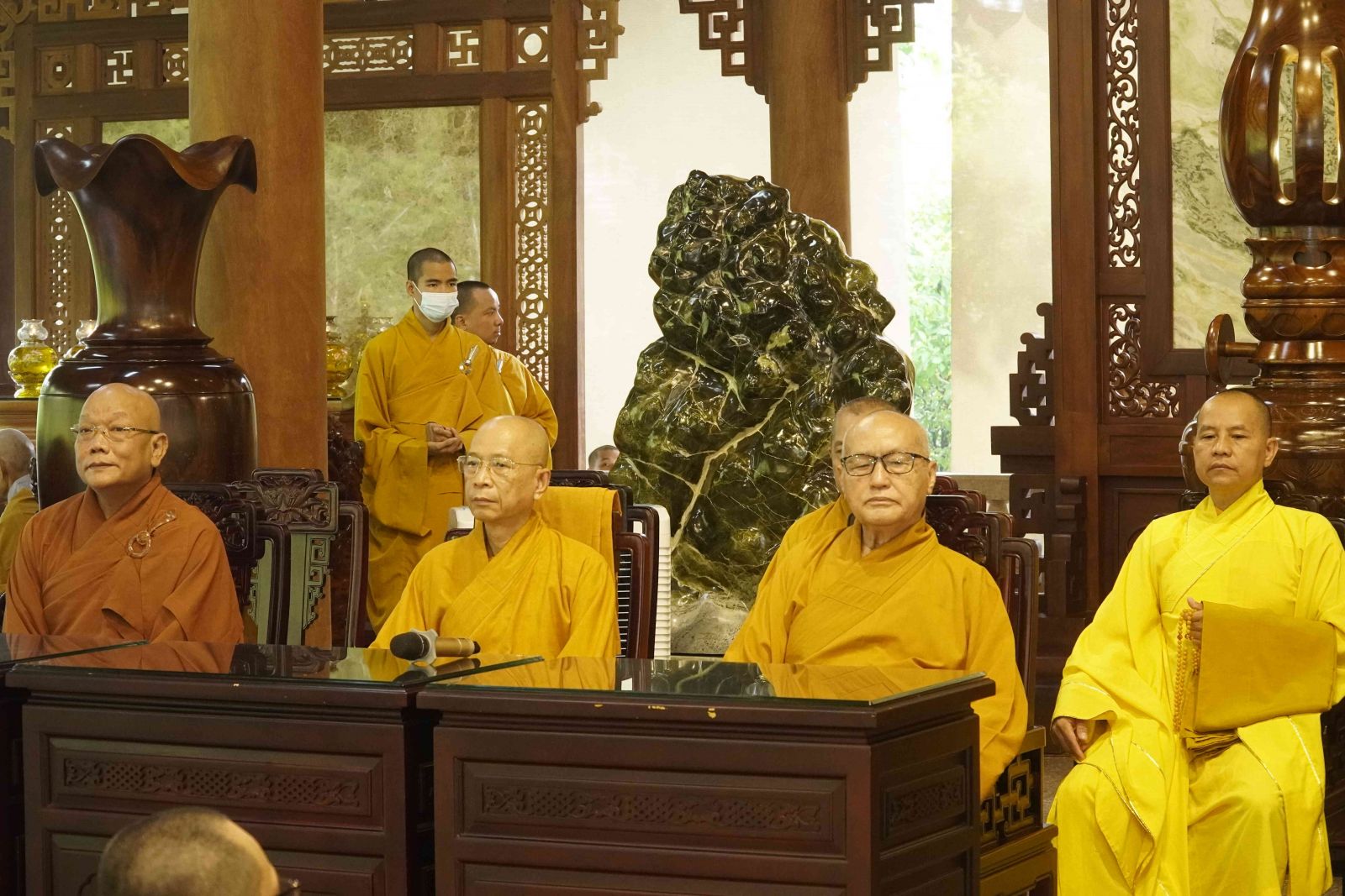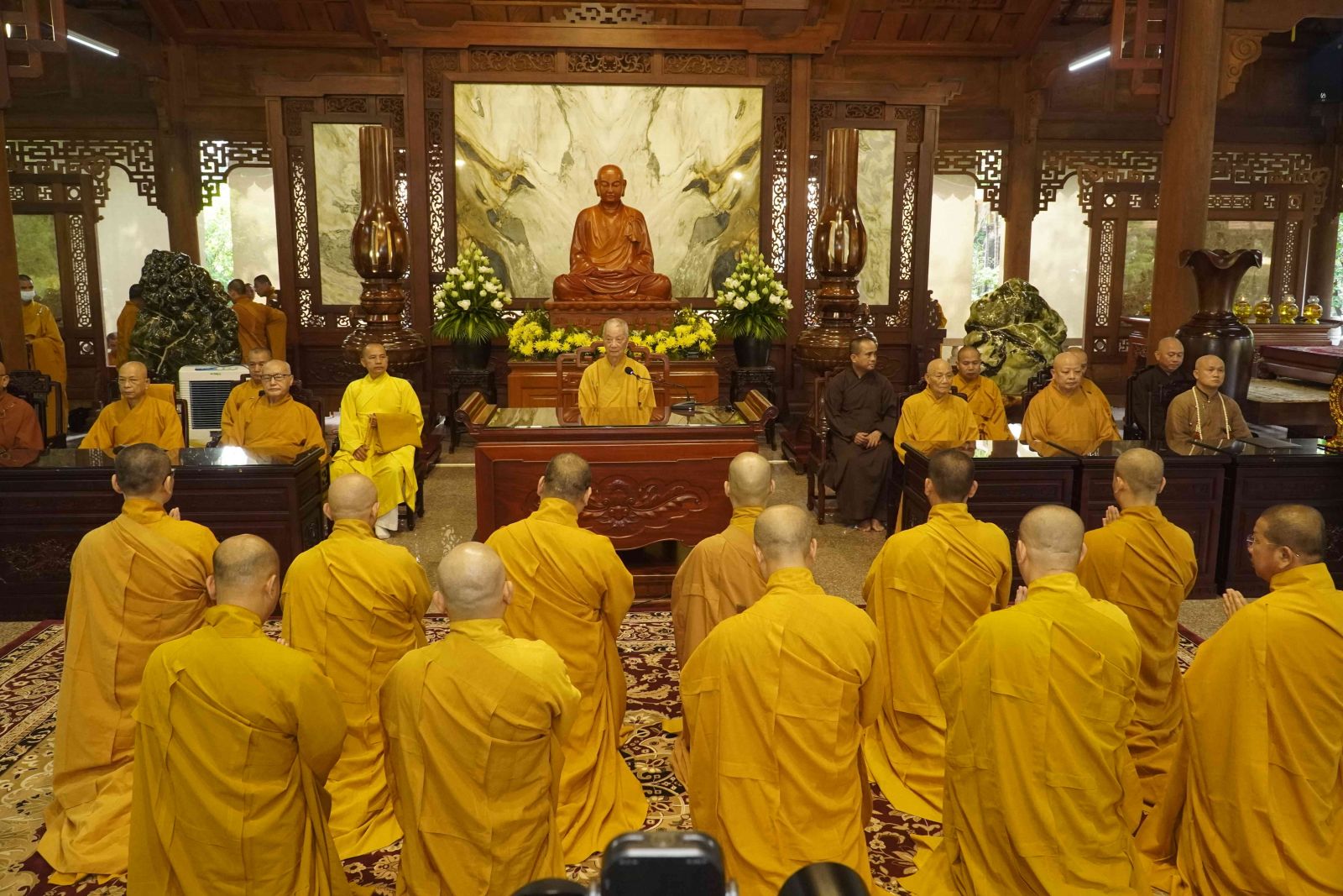 Đức Pháp chủ cho biết nhân mùa An cư, ngài thay mặt GHPGVN đến vấn an sức khỏe quý Hòa thượng Trưởng lão đang khiếm an và niên cao lạp trưởng.
