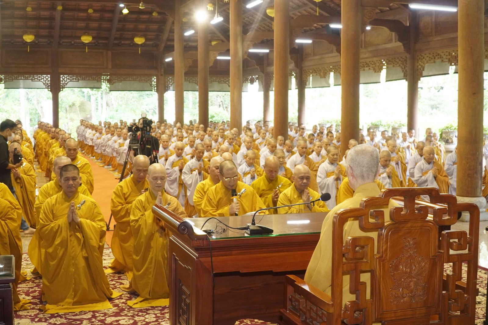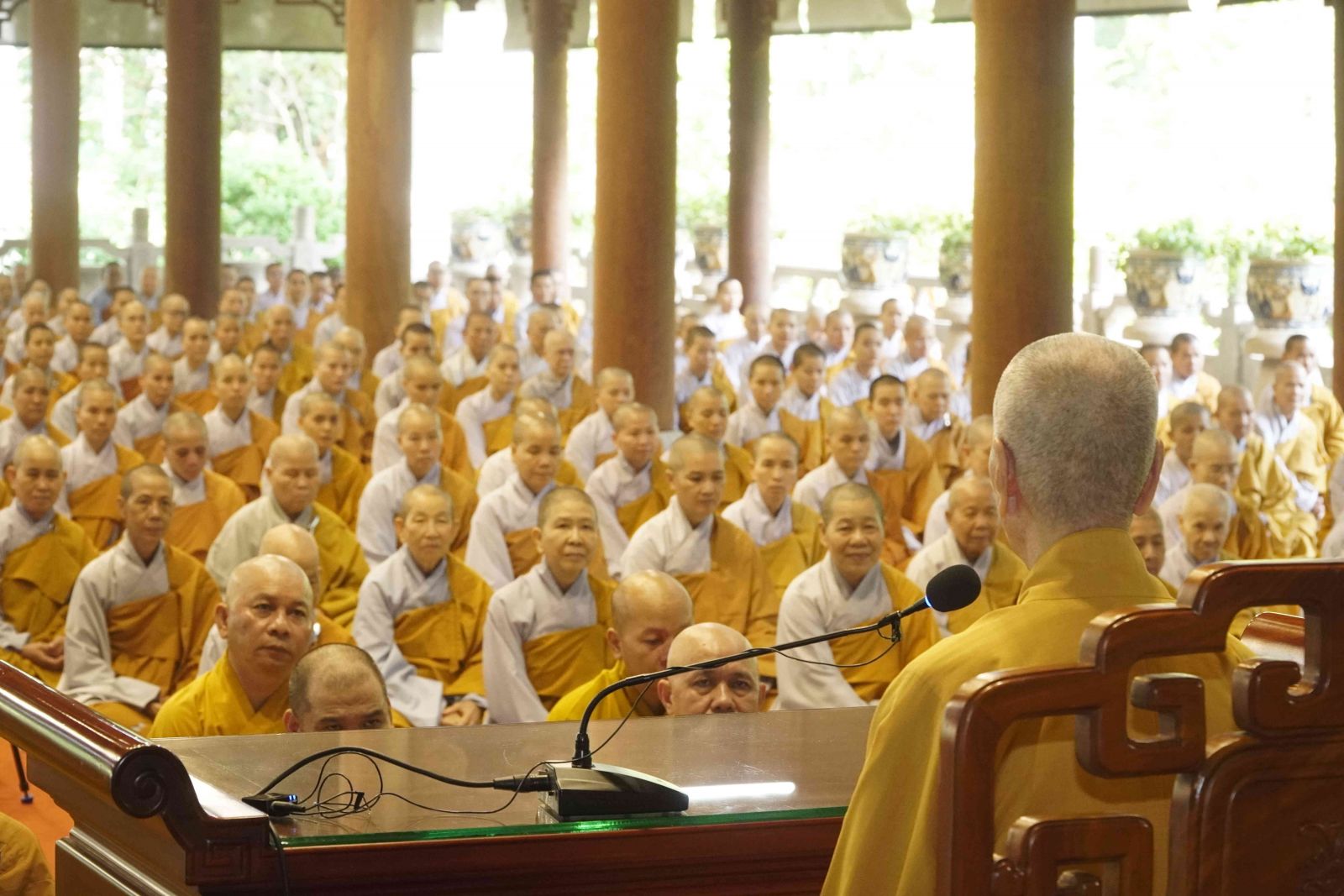 Với lời thỉnh cầu của chư Tăng Ni hiện diện, Đức Pháp chủ GHPGVN có lời huấn thị cho toàn thể Tăng Ni thuộc Thiền phái Trúc Lâm. Ngài một lần nữa chia sẻ về gương sáng của Thiền sư Thích Thanh Từ, đặc biệt nhấn mạnh tới vấn đề cốt lõi của sự tu tập trong bất cứ pháp môn nào, đó là phải chứng ngộ, thể nhập được vào dòng thánh.