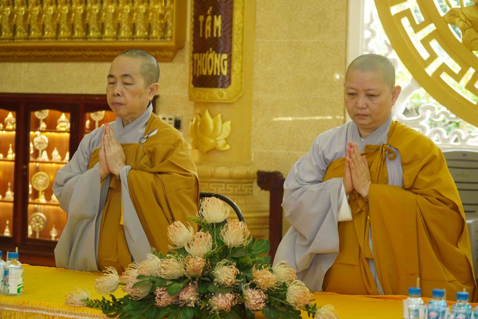 Quang lâm về Tịnh nghiệp Đạo tràng An cư Kiết hạ Chùa Long Vân, Thượng tọa Trưởng Ban Trị sự cùng Chư tôn đức Tăng Ni đã cung đối trước tam bảo, niêm hương đảnh lễ Tam bảo. Sau đó NT. TN Như Dung đã vấn an sức khỏe Chư tôn đức trong Ban Trị sự và bày tỏ niềm hoan hỷ khi đón đoàn Ban Trị sự GHPGVN tỉnh về thăm và sách tấn Chư hành giả An cư tại hạ trường.