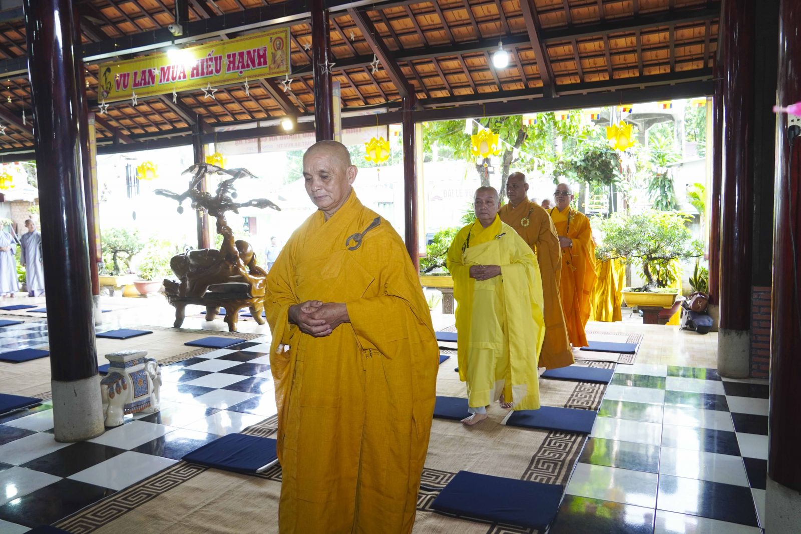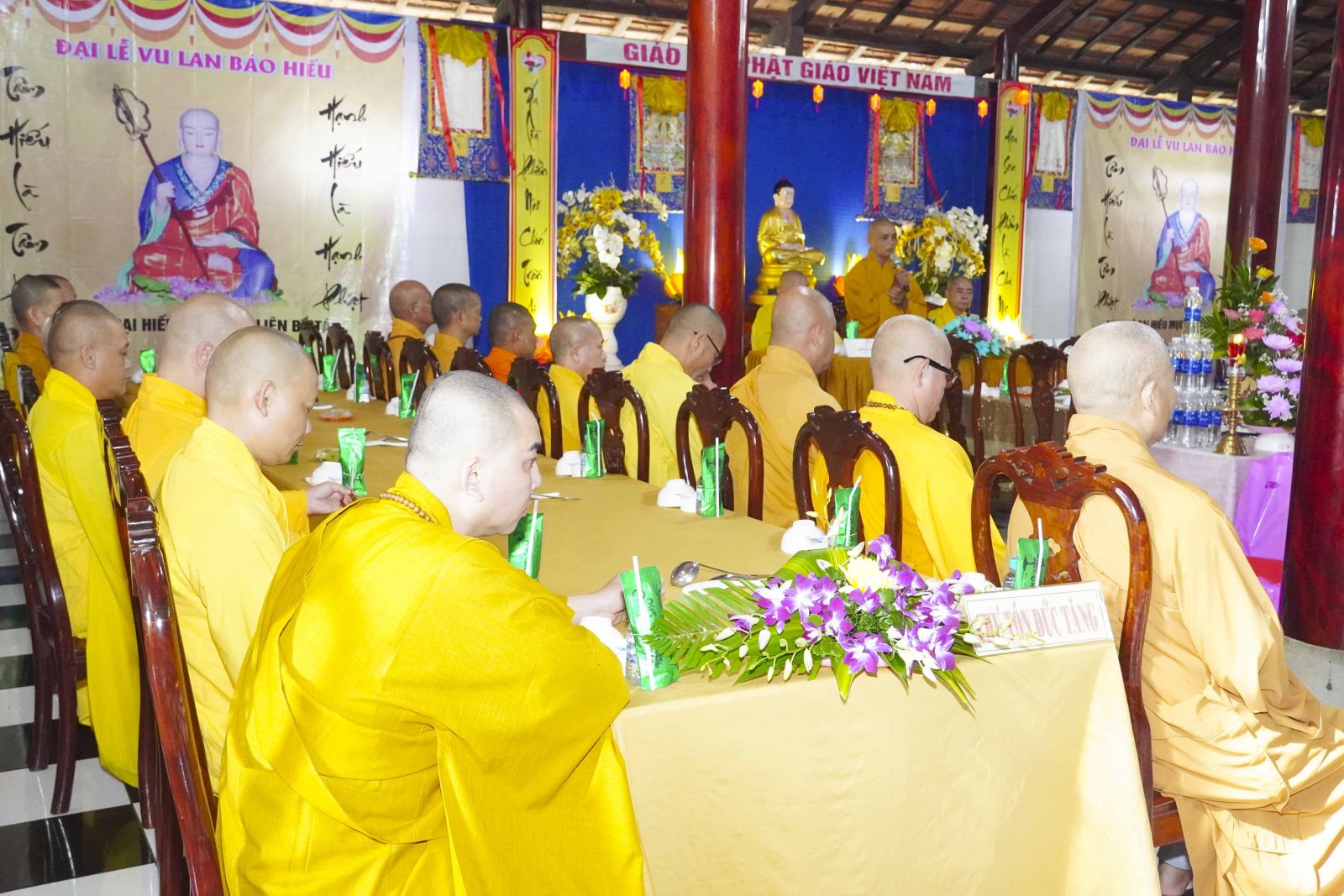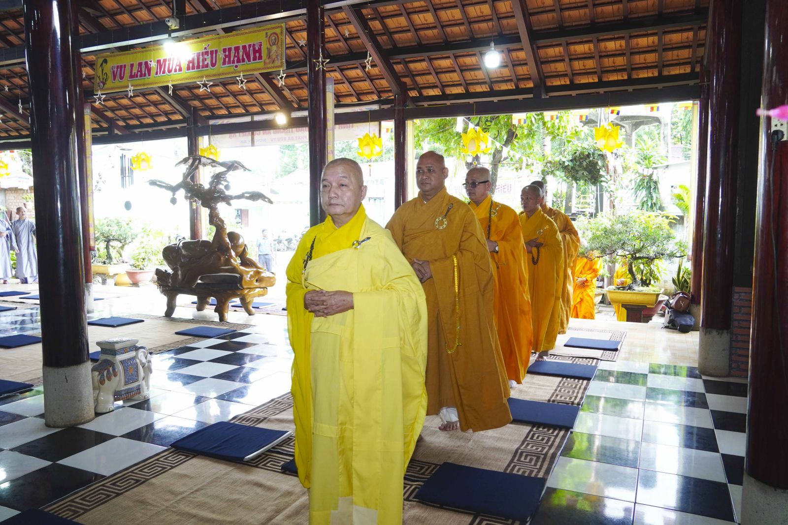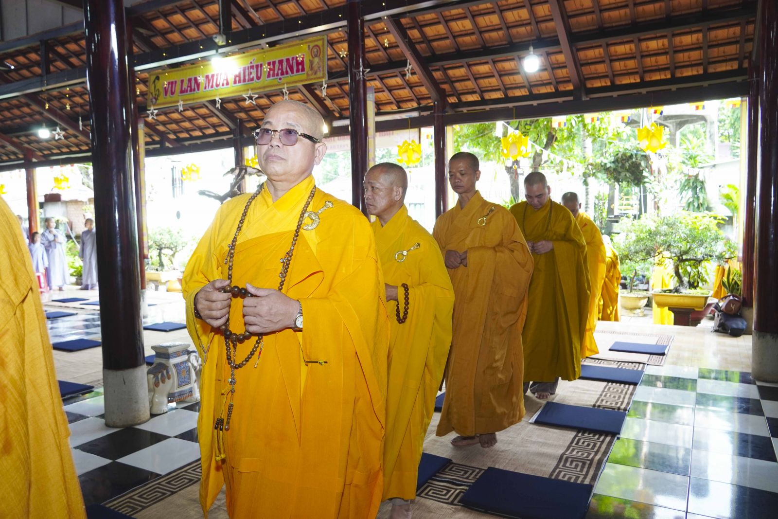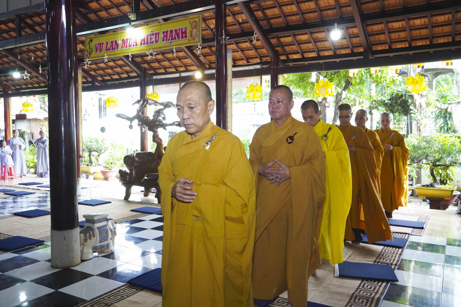 Buổi lễ trang nghiêm cung thỉnh chư Tôn đức quang lâm tổ đường. Tiếp đó, HT. Thích Huệ Quang có đôi lời chúc mừng đến Tăng Ni hành giả An cư, sau ba tháng tu học, Tăng Ni lại tăng trưởng thêm Hạ lạp, tăng trưởng thêm đạo lực.