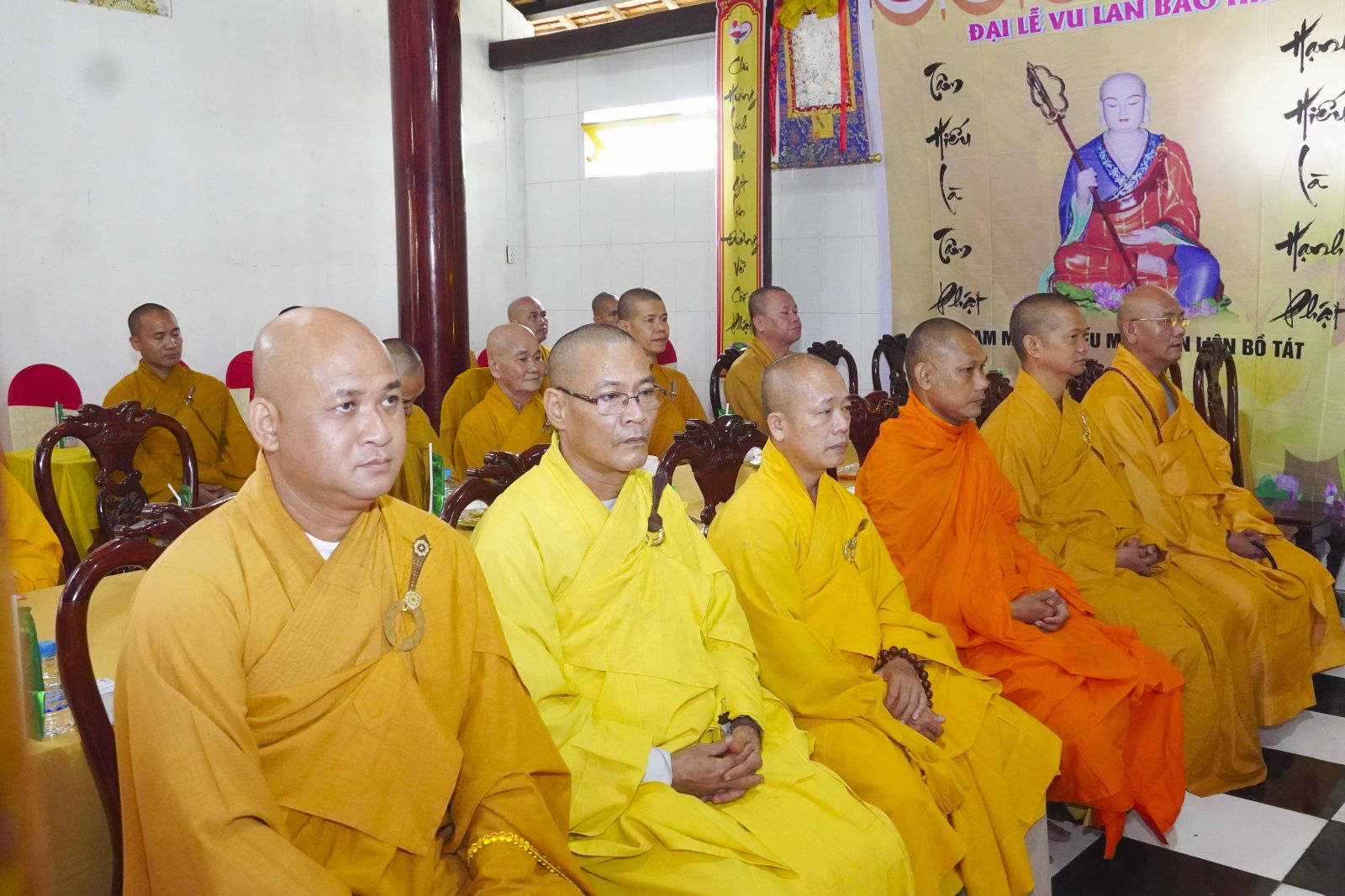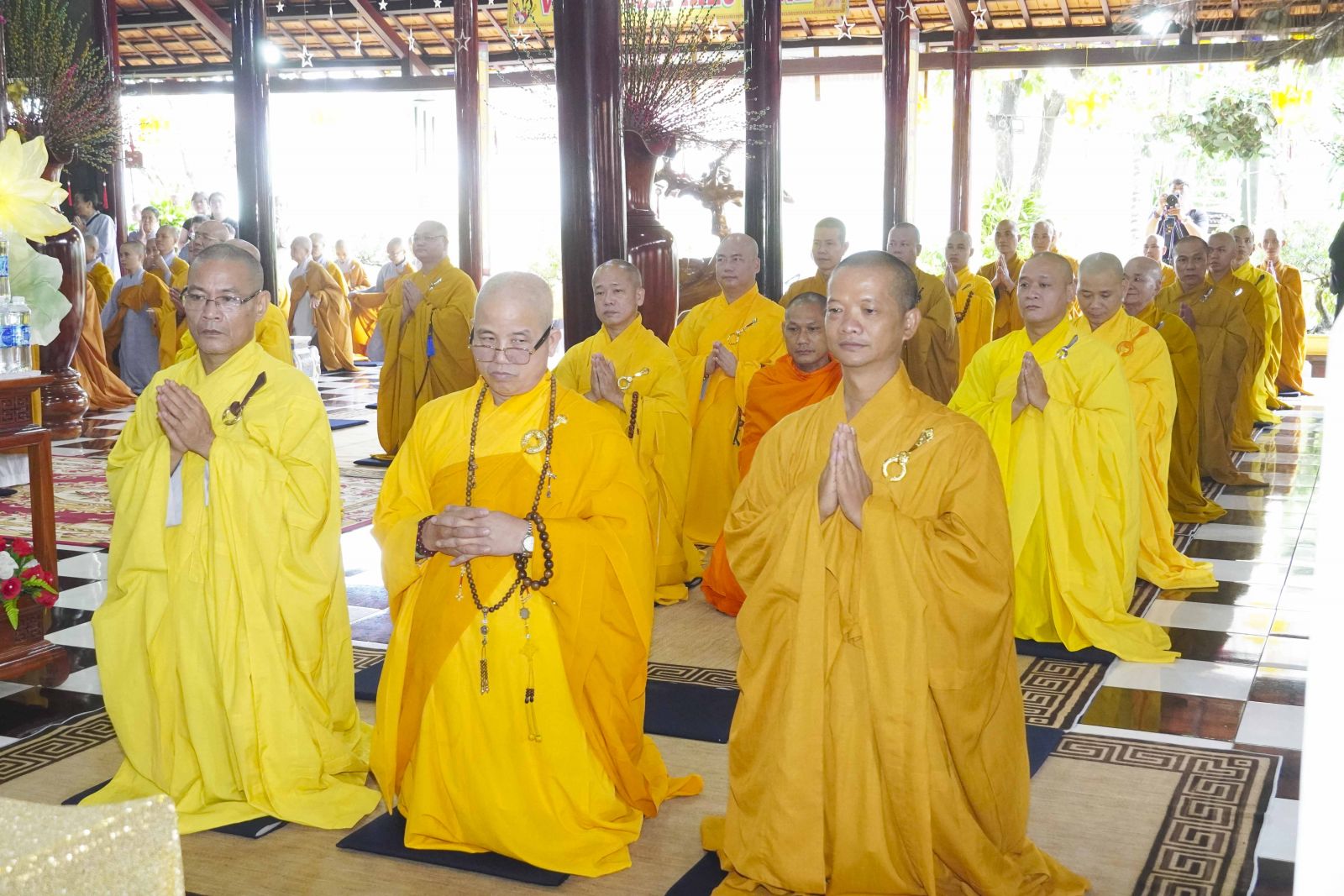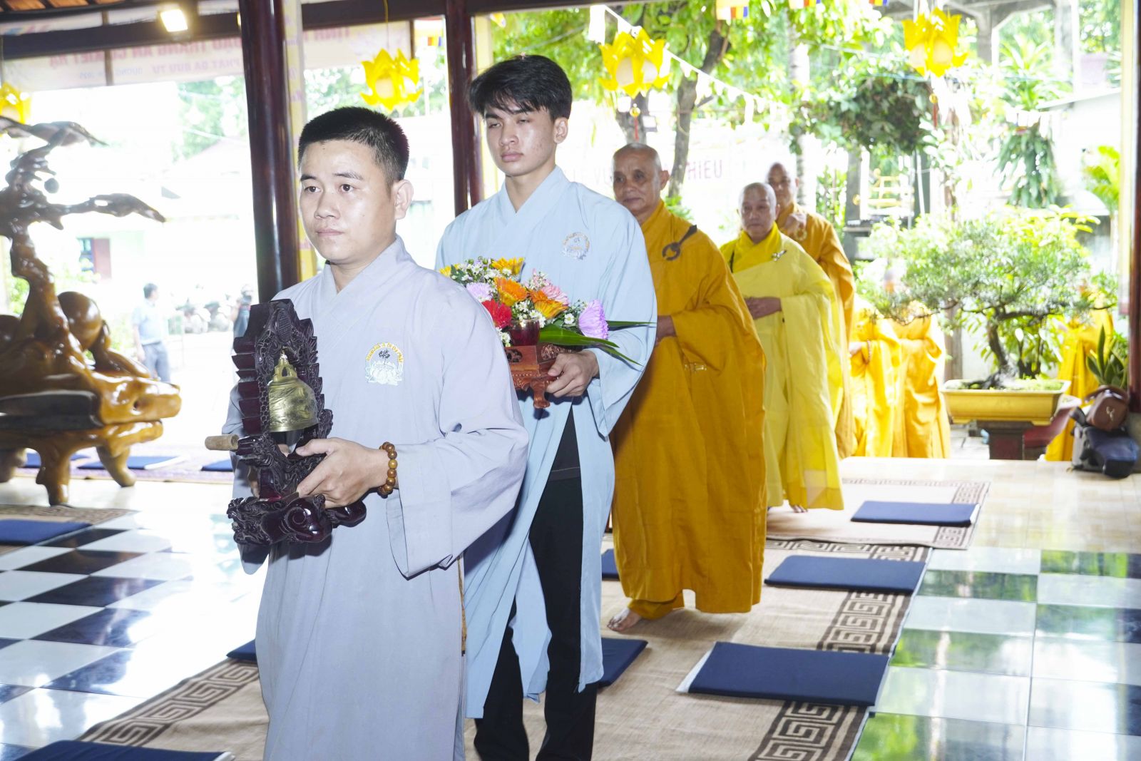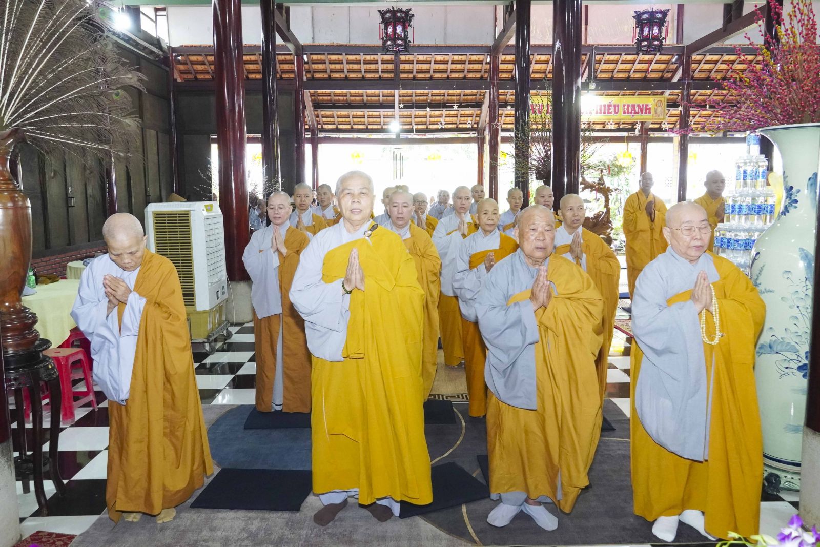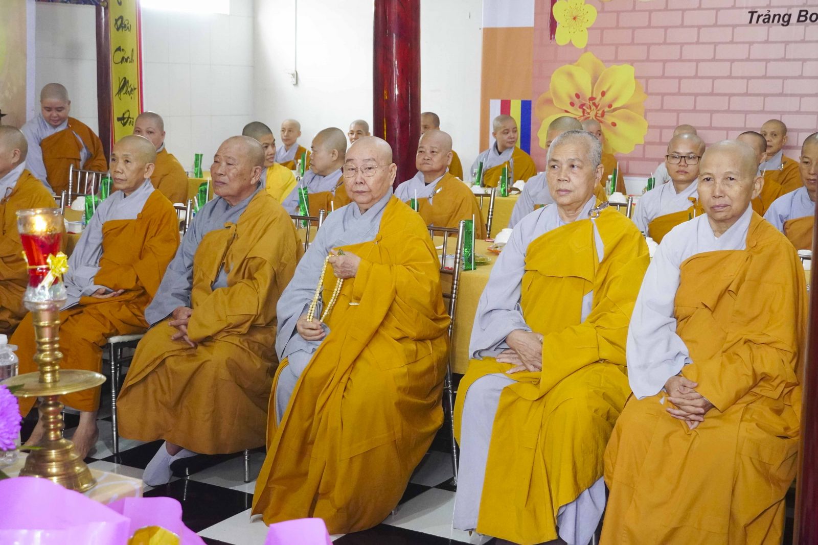 Buổi lễ trang nghiêm cung thỉnh chư Tôn đức quang lâm tổ đường. Tiếp đó, HT. Thích Huệ Quang có đôi lời chúc mừng đến Tăng Ni hành giả An cư, sau ba tháng tu học, Tăng Ni lại tăng trưởng thêm Hạ lạp, tăng trưởng thêm đạo lực.