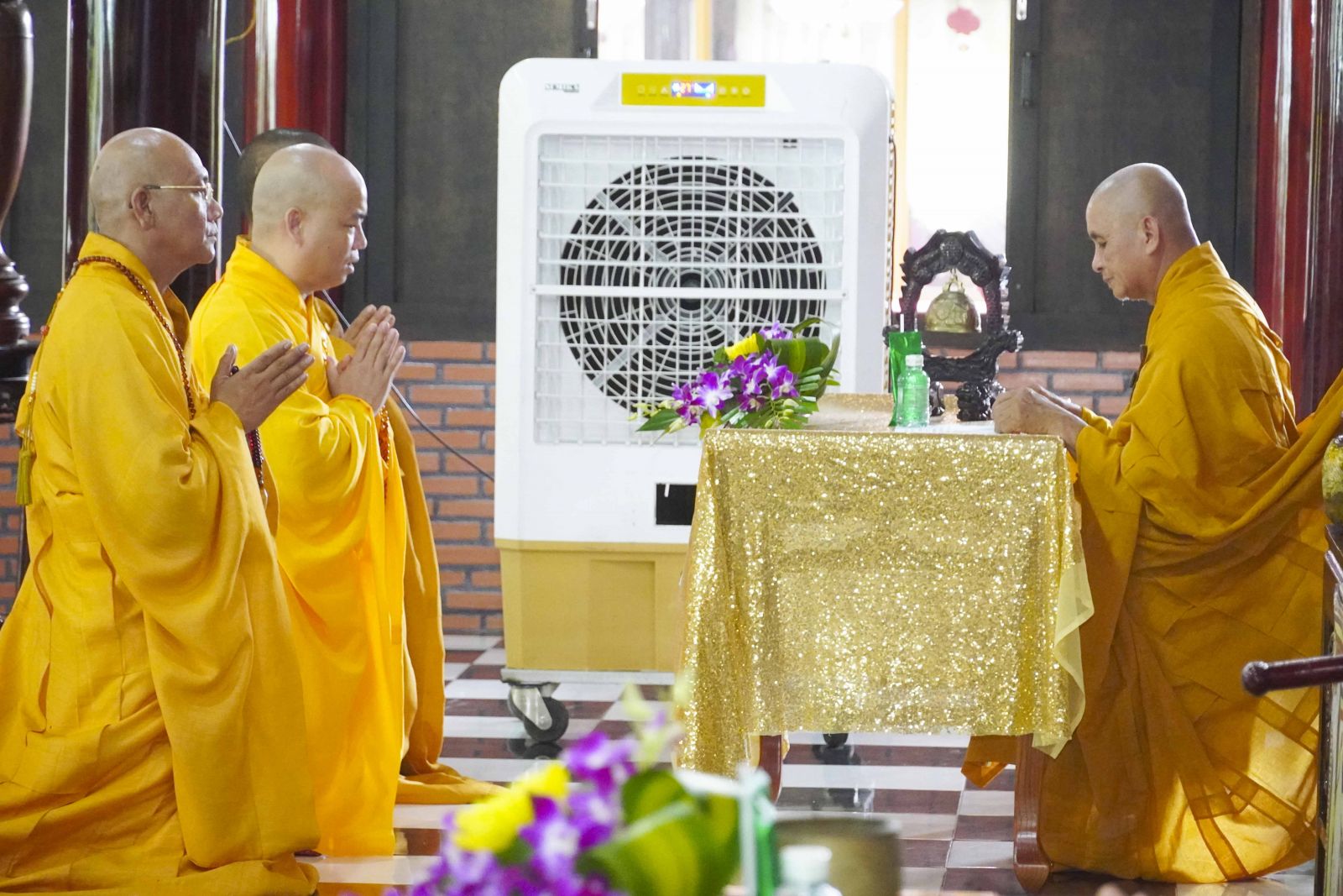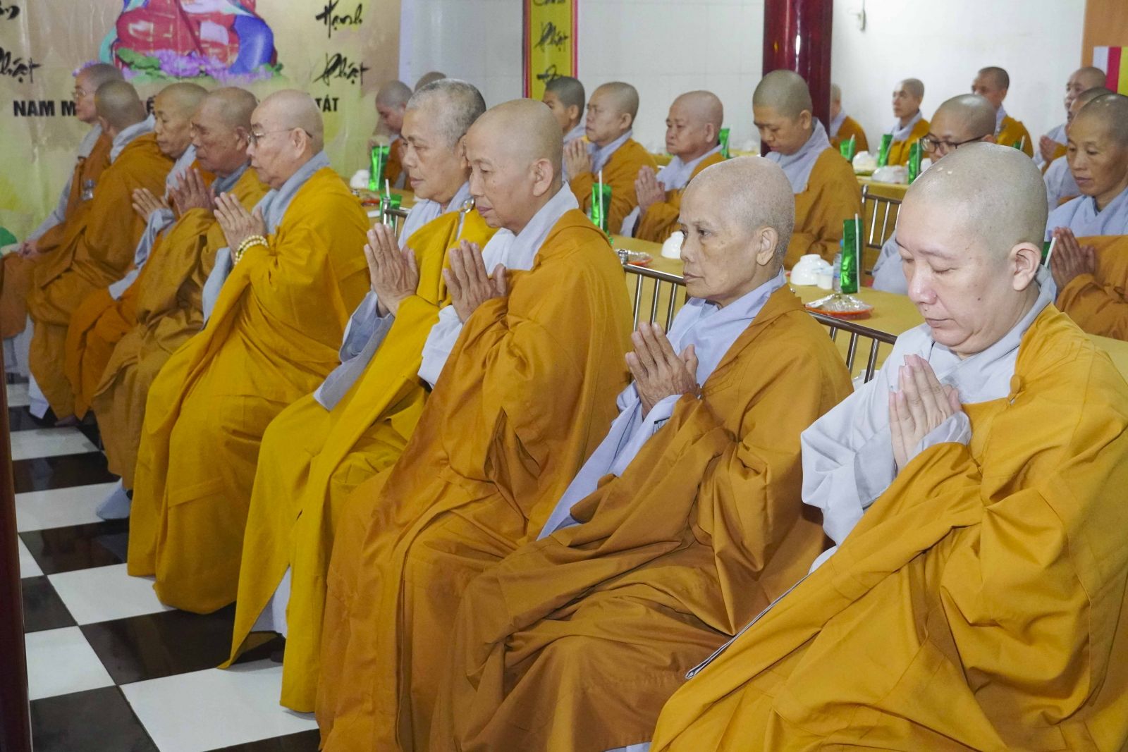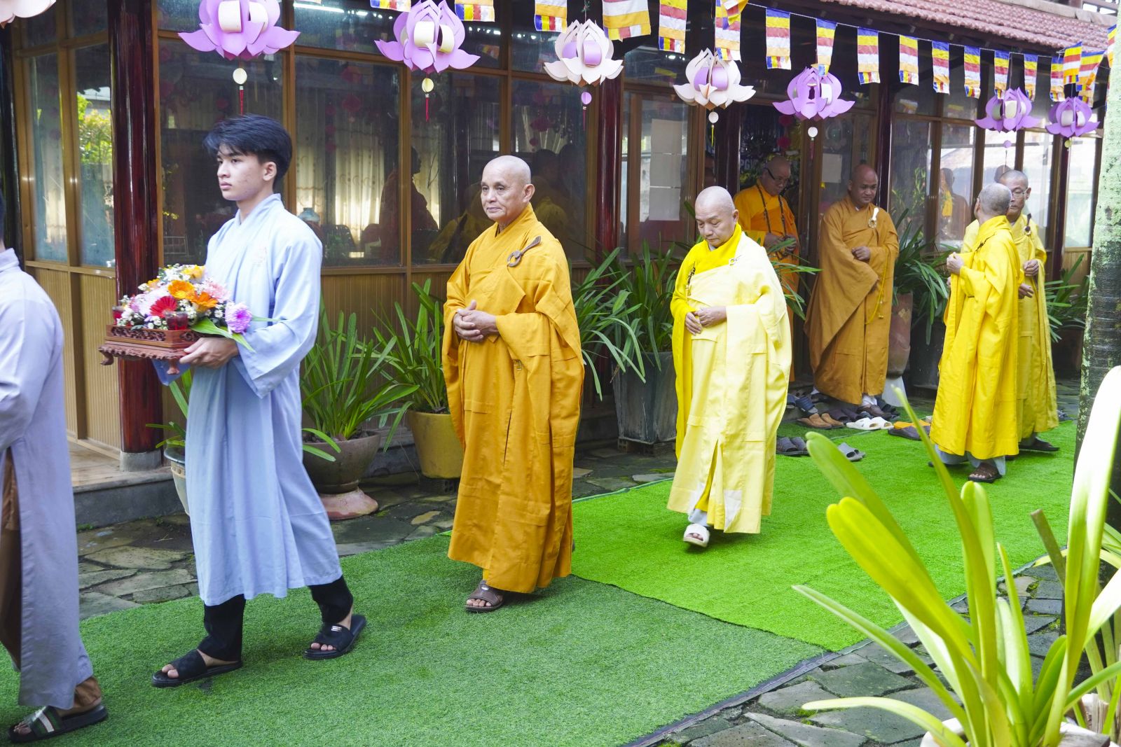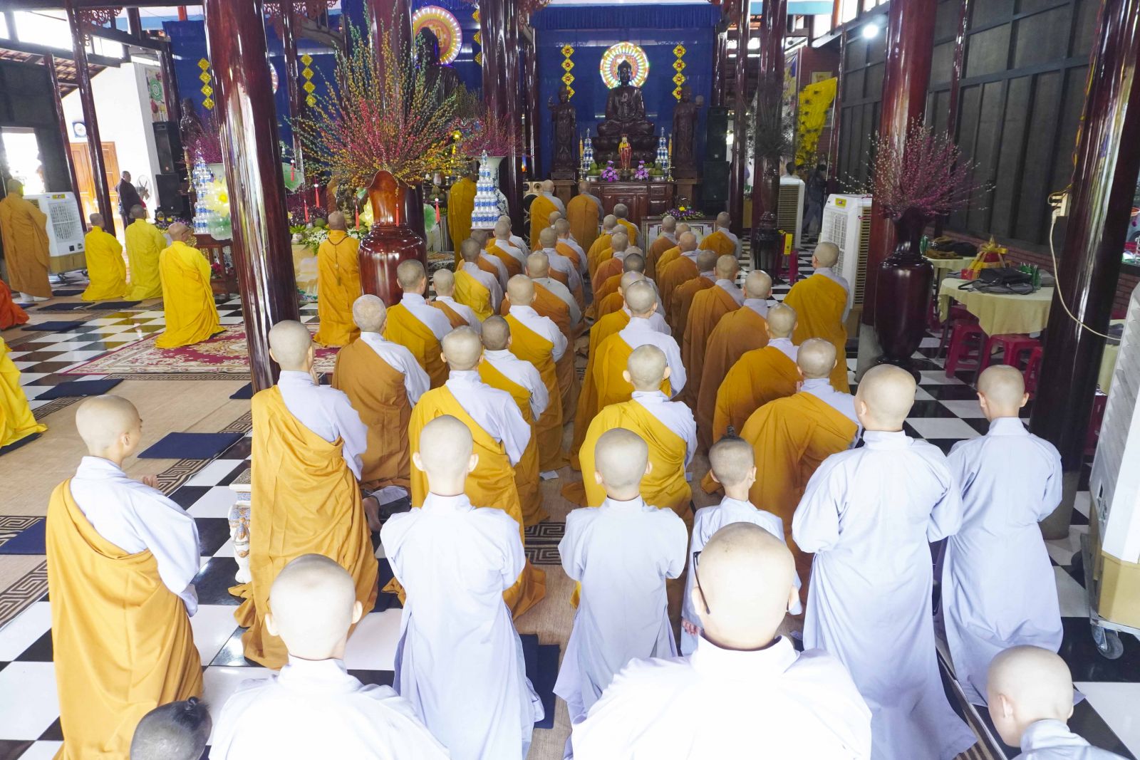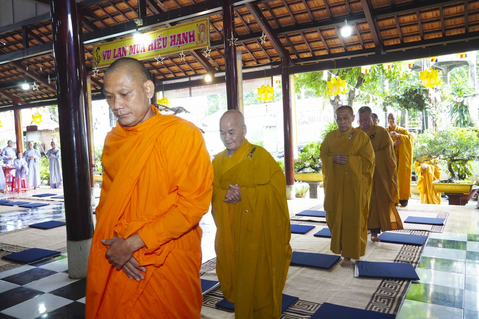 Buổi lễ trang nghiêm cung thỉnh chư Tôn đức quang lâm tổ đường. Tiếp đó, HT. Thích Huệ Quang có đôi lời chúc mừng đến Tăng Ni hành giả An cư, sau ba tháng tu học, Tăng Ni lại tăng trưởng thêm Hạ lạp, tăng trưởng thêm đạo lực.