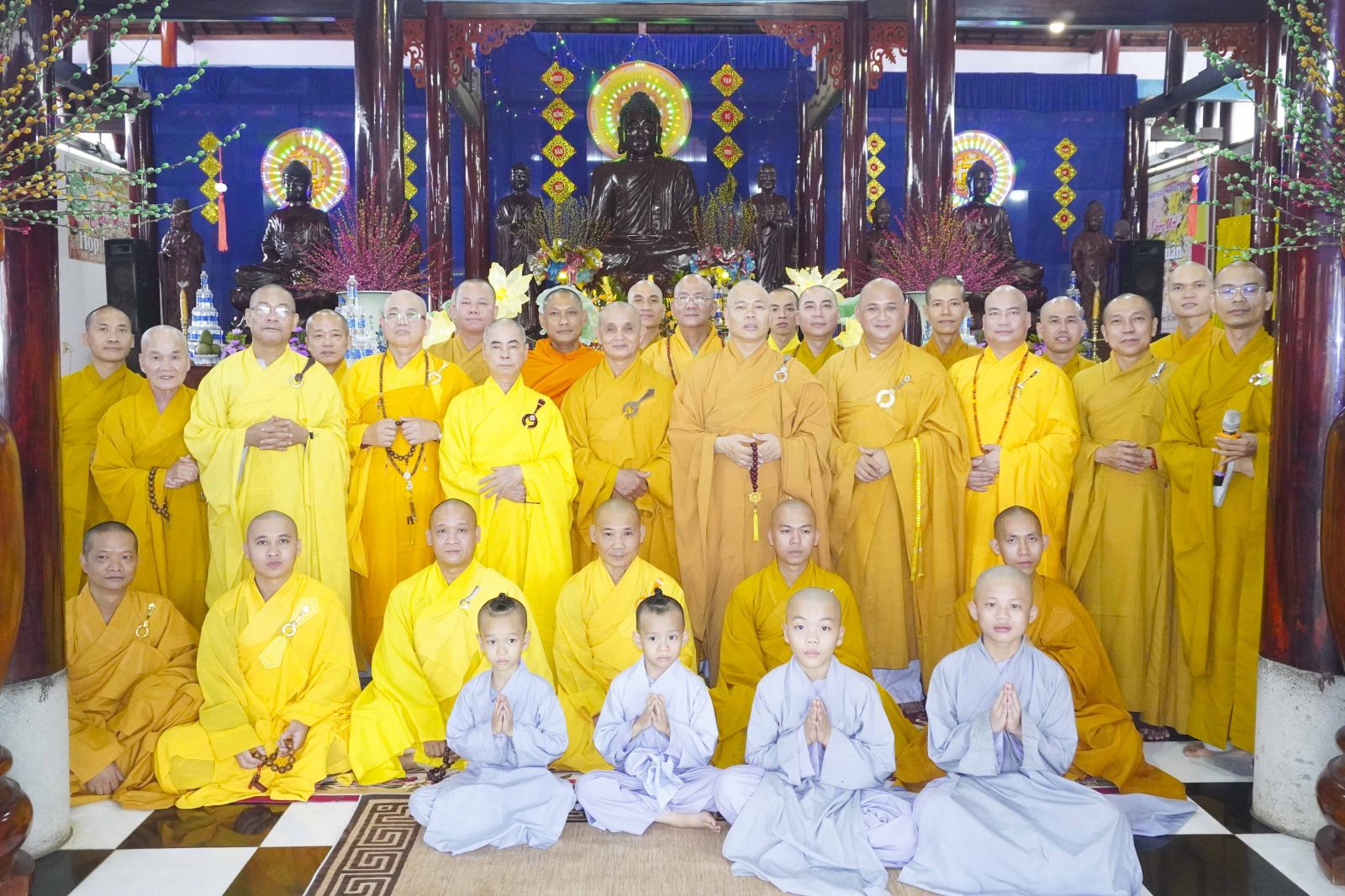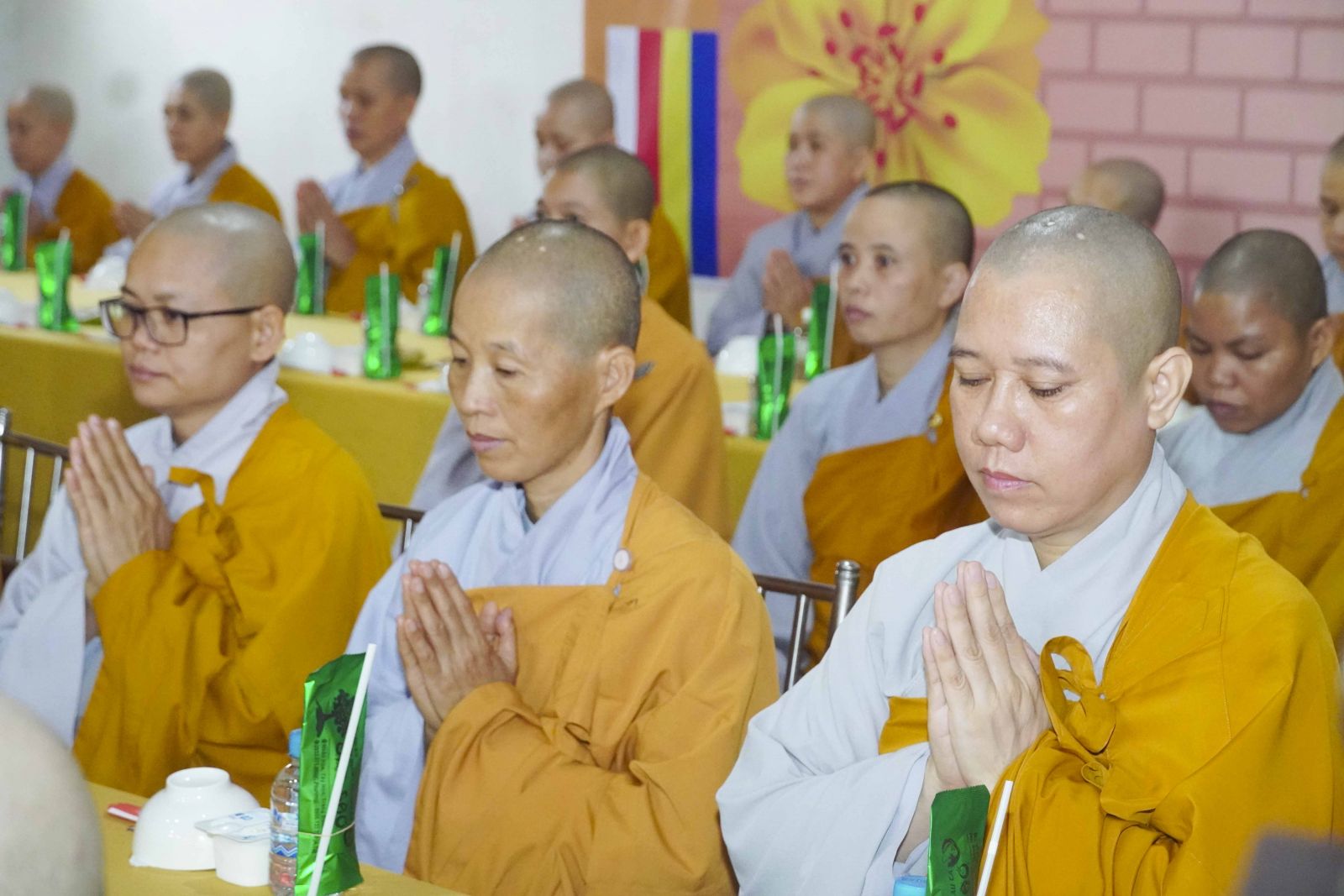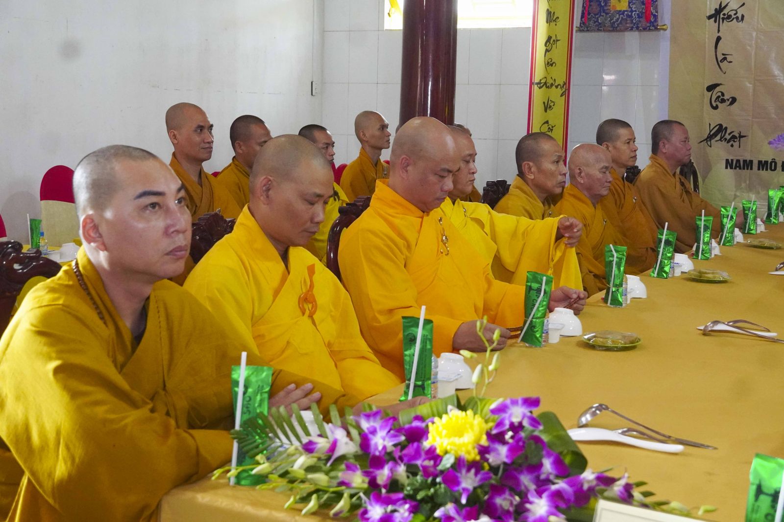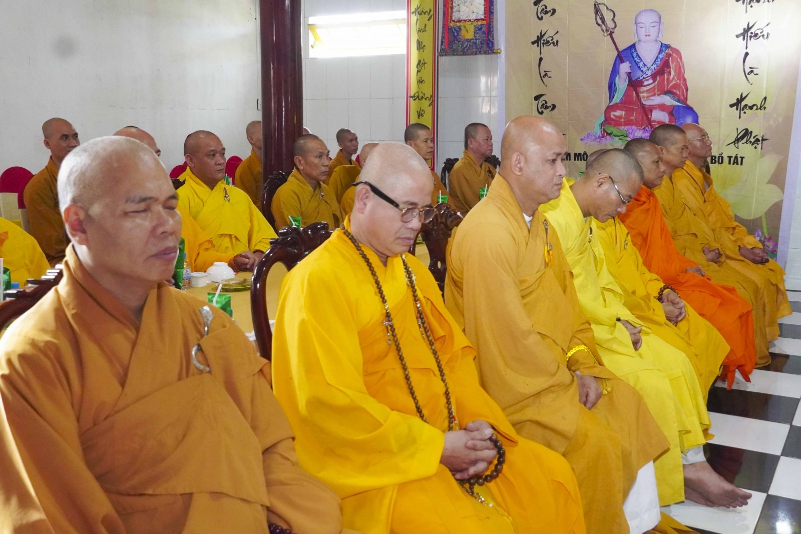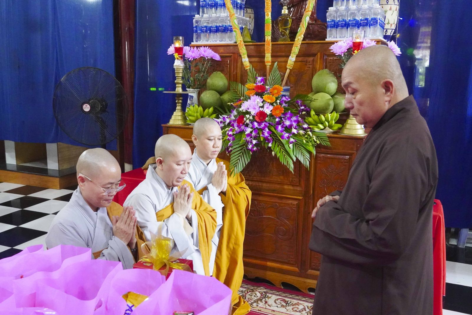 Buổi lễ trang nghiêm cung thỉnh chư Tôn đức quang lâm tổ đường. Tiếp đó, HT. Thích Huệ Quang có đôi lời chúc mừng đến Tăng Ni hành giả An cư, sau ba tháng tu học, Tăng Ni lại tăng trưởng thêm Hạ lạp, tăng trưởng thêm đạo lực.