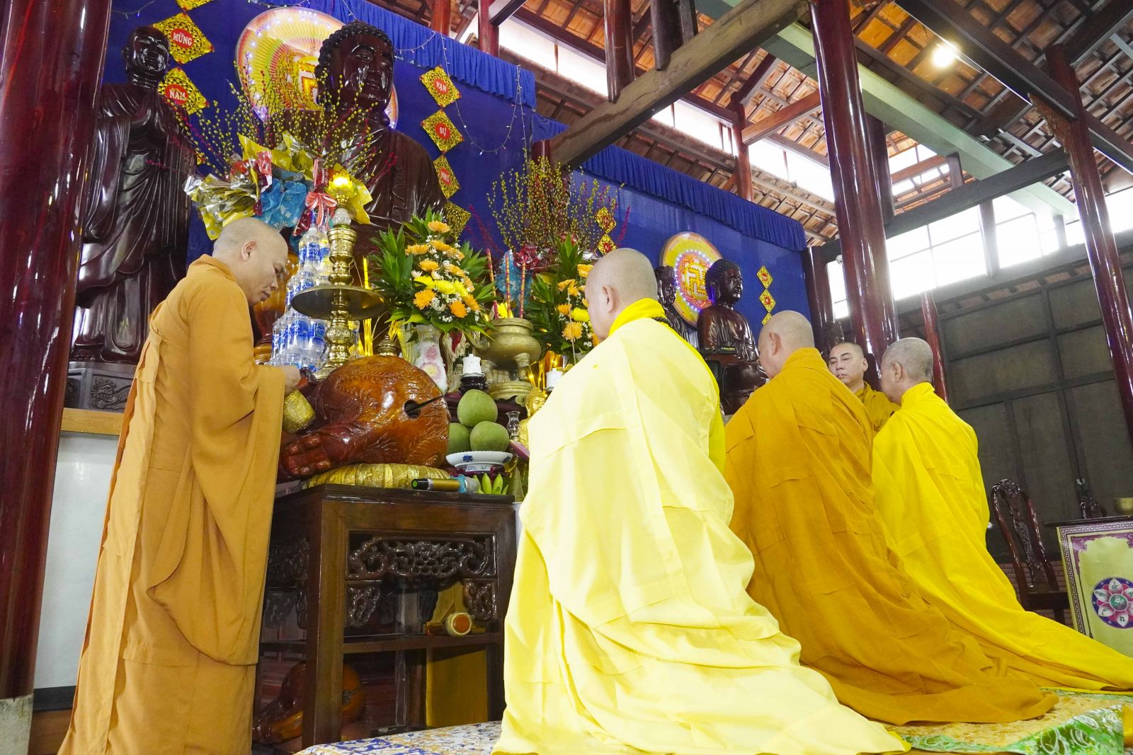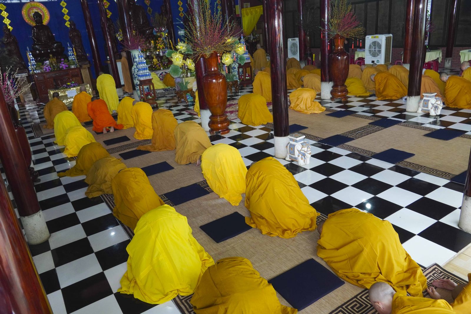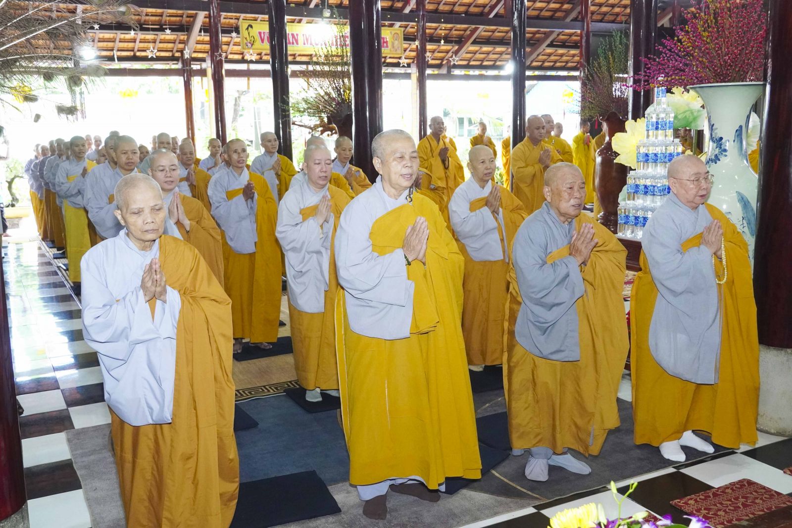 Sau đó, Tăng Ni đã trang nghiêm trước Chánh điện, lễ bái tam bảo và yết ma tác pháp mãn hạ, tự tứ theo nghi thức thiền môn.