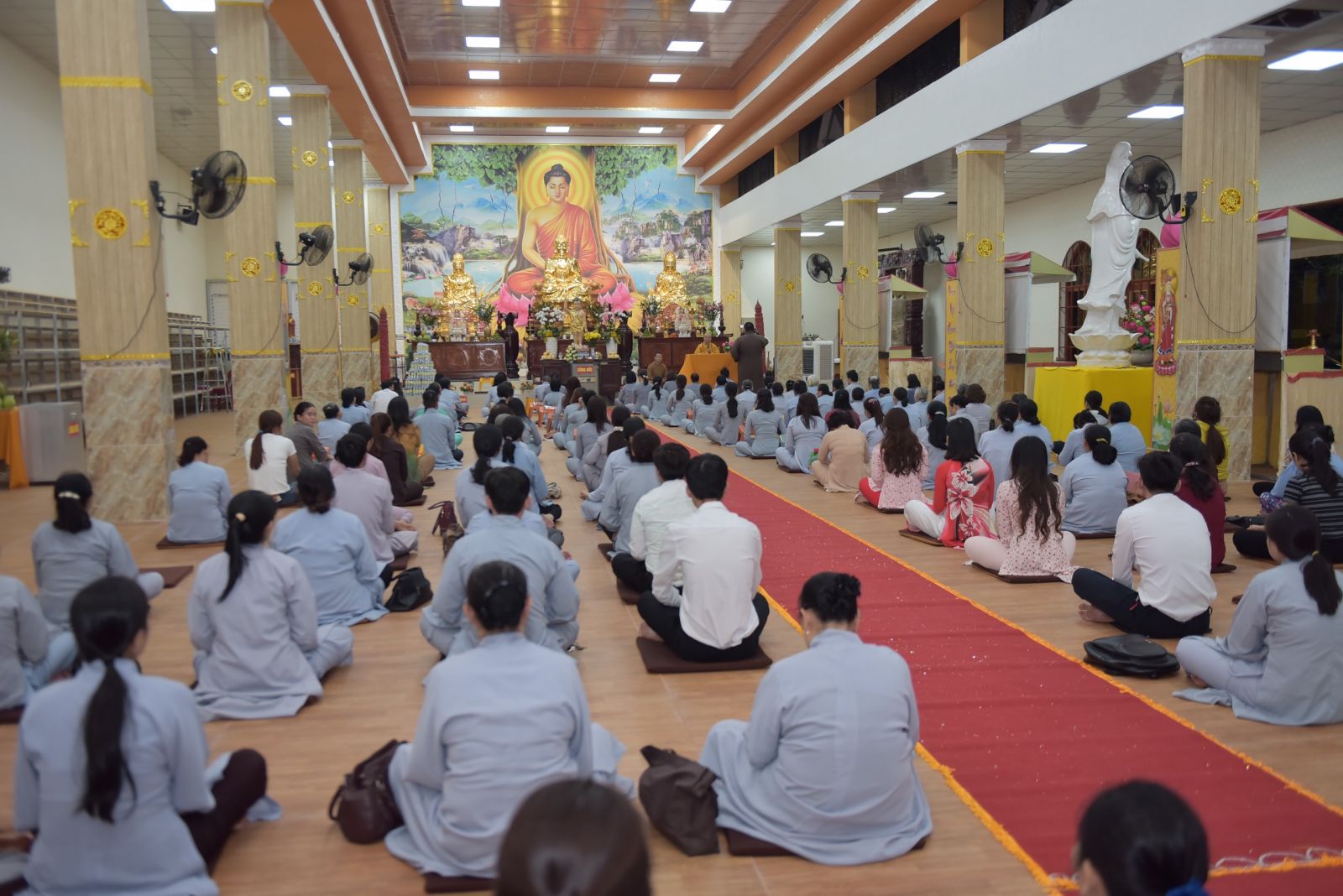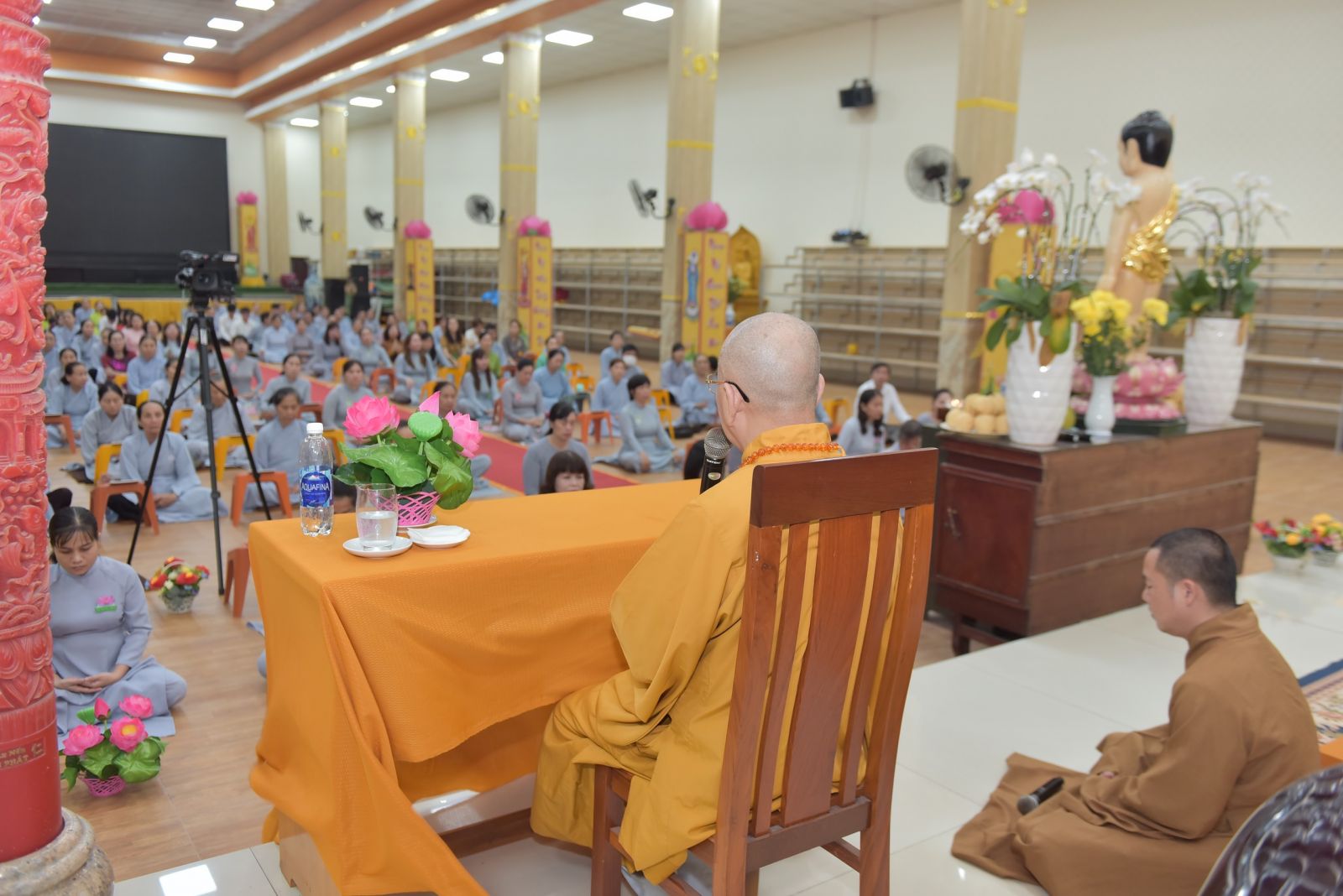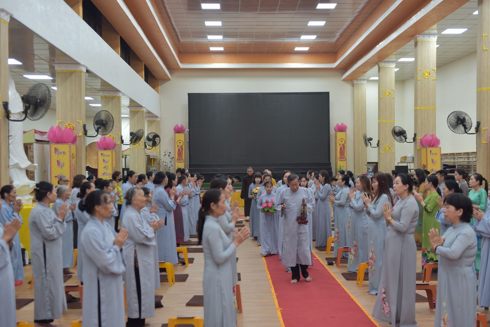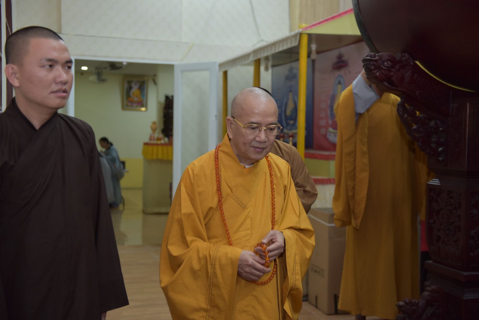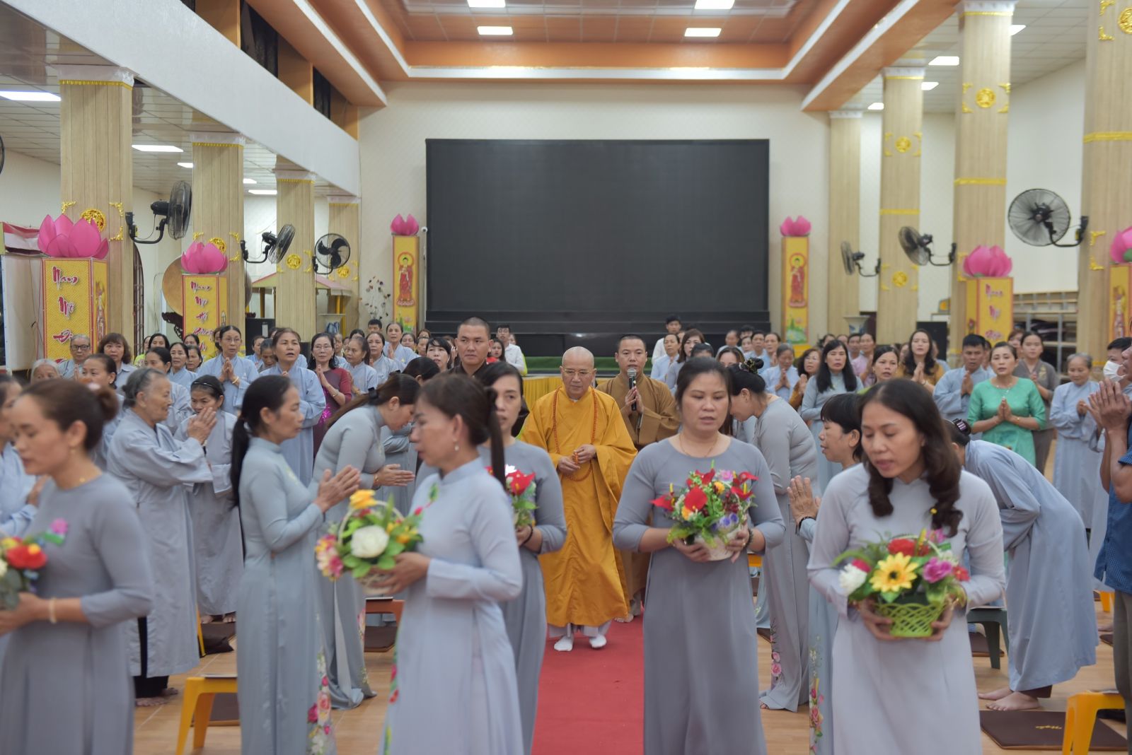 Ba hồi chuông trống Bát Nhã vang lên trầm hùng, nơi chánh điện hàng Phật tử ngân nga tiếng niệm Phật cung đón Hoà thượng quang lâm chia sẻ những lời Pháp của Đức Thế Tôn. Dừng chân tại Trúc Lâm Viên Nghiêm, Hoà thượng thấy hoan hỷ với những gì mà đệ tử của Ngài đã dấn thân vì Đạo Pháp, vì sự nghiệp hoằng pháp độ sanh. Qua những lời thăm hỏi, HT tán thán tinh thần, sự nhiệt huyết chung tay vì Đạo Pháp của toàn thể Chư Tăng, Phật tử trải qua bao nhiêu khó khăn, thăng trầm nay đã hoàn thiện được ngôi Tam Bảo trang nghiêm, rộng rãi. Khi một ngôi chùa được xây dựng lên là cánh cửa nhà tù được khép lại. Chư Tăng tâm nguyện hoằng dương Chánh Pháp, lại nhờ thêm sự phát tâm cao quý hộ trì Tam Bảo để những con đường hoằng pháp của Chư Tăng được thuận duyên viên mãn. Tứ chúng đồng tu, đạo tràng hoà hợp thì ắt thiền môn hưng thịnh, Pháp bảo trường tồn.