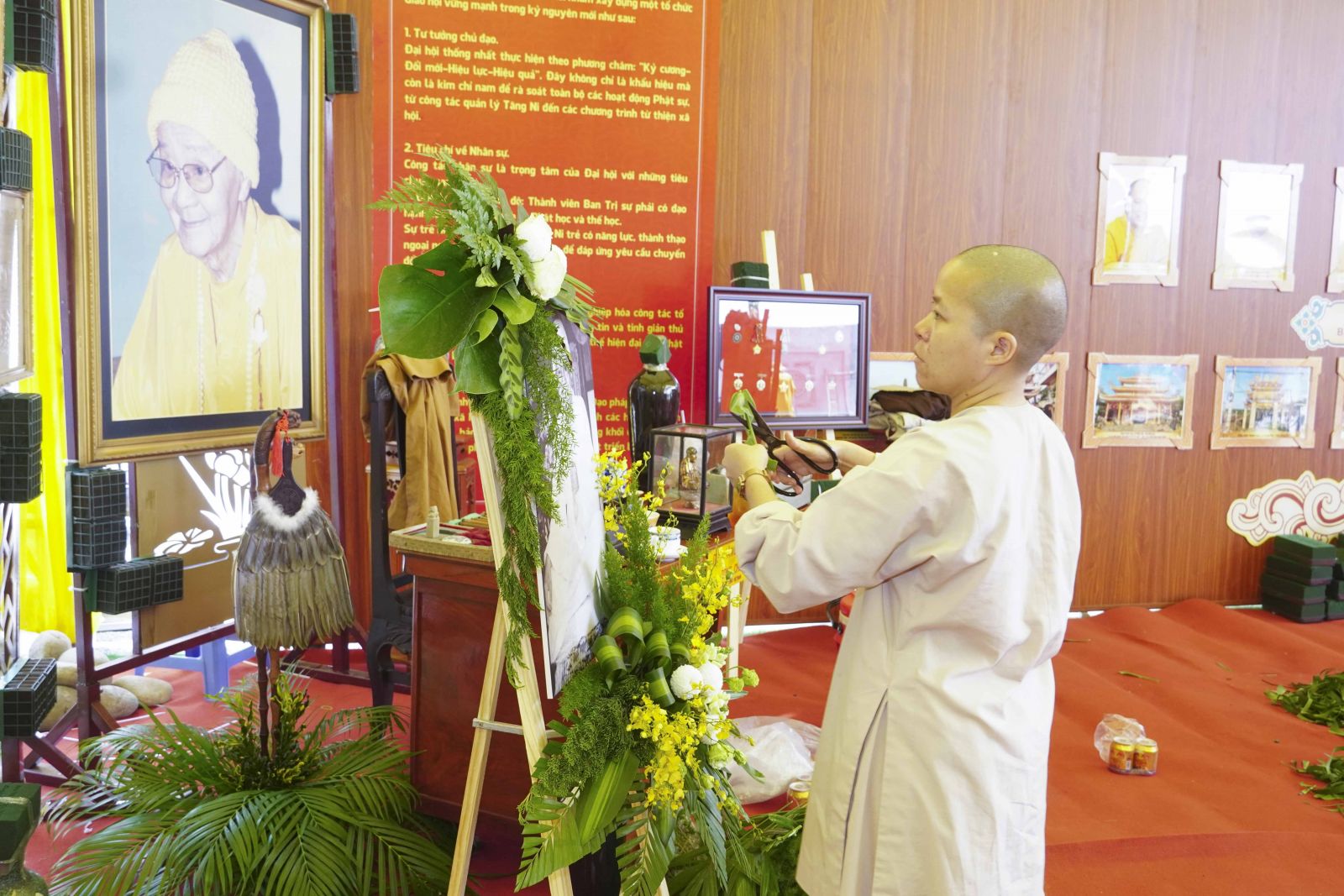 Không gian triển lãm được bố trí hài hòa, trang nhã, sử dụng các hình ảnh, tư liệu và mô hình trực quan sinh động. Các chủ đề được phân khu rõ ràng, tạo thuận lợi cho đại biểu và quan khách tham quan, tìm hiểu. Đặc biệt, khu trưng bày hình ảnh hoạt động từ thiện xã hội đã khắc họa rõ nét tinh thần “từ bi cứu khổ” của đạo Phật, góp phần lan tỏa giá trị nhân văn sâu sắc đến cộng đồng.