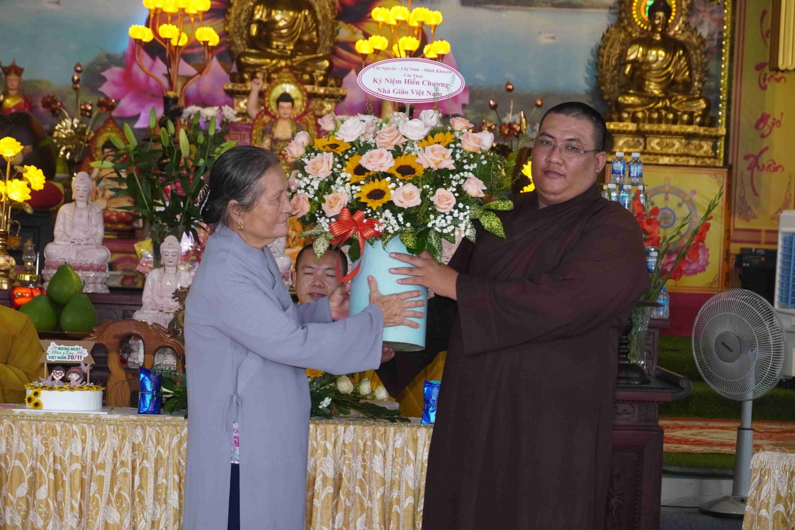 Tại Chùa Viên Giác, ngày lễ Hiến chương Nhà giáo cũng là dịp để quý thầy, cô các thế hệ đứng trên bục giảng cùng ngồi lại, chia sẻ cho nhau những điều tốt đẹp, những người đã về hưu, những người còn đứng trên giảng đường và những người mới bước chân vào giảng đường, họ chia sẻ cho nhau những kinh nghiệm, truyền nhau ngọn lửa tiếp nối đó chính là người lái đò thầm lặng.
