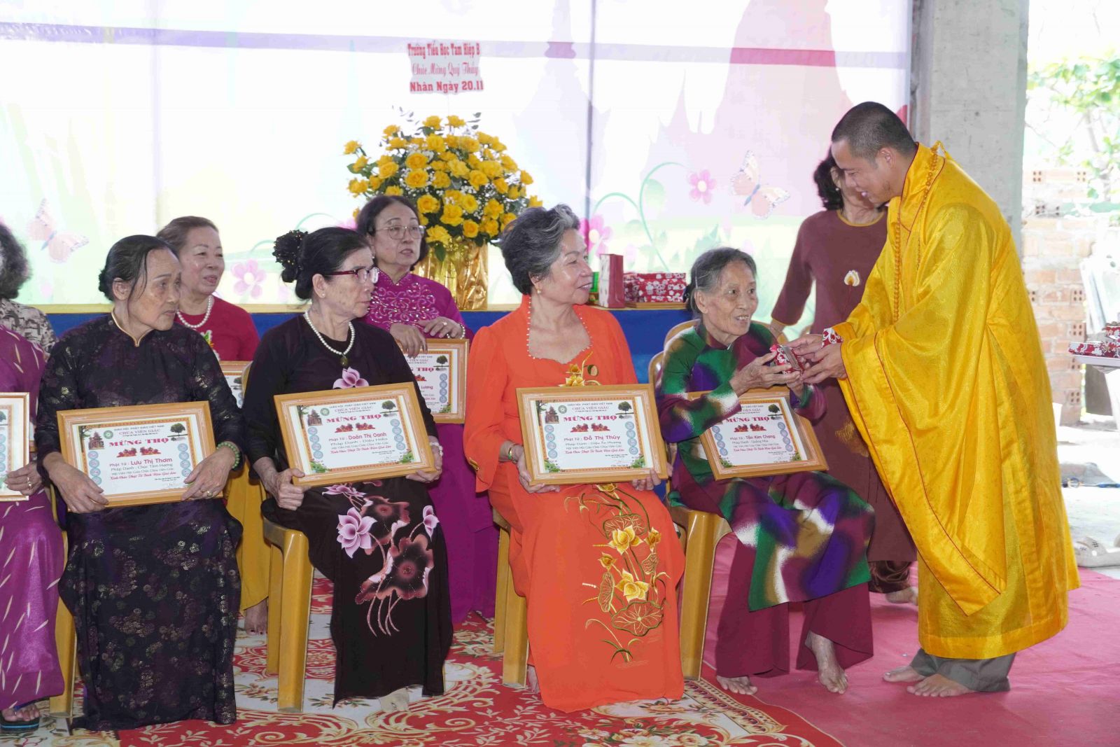 Về Hội Giáo chức (HGC) Chùa Viên Giác có Huỳnh Thị Nhị - Phó ban Cố vấn HGC, Nguyên Hiệu trưởng trường Tiểu học Tam Hiệp B, trường Lê Văn Tám; cô Trương Thị Thảo -Thành viên ban Cố vấn HGC; cô Lê Thị Kiều Thành – Hiệu trưởng trường Tiểu học Tam Hiệp B; cô Nguyễn Thị Thanh Phương – Hiệu trưởng trường Trung học cơ sở Trần Hưng Đạo; cô Lê Thị Nam Nhạn – Giám đốc Trung tâm nuôi dạy trẻ khuyết tật Đồng Nai; cô Nguyễn Thị Ngọc Dung – Hội trưởng HGC Chùa Viên Giác; cùng các thành viên Phó Hội và toàn thể thành viên Hội Giáo chức về tham dự.