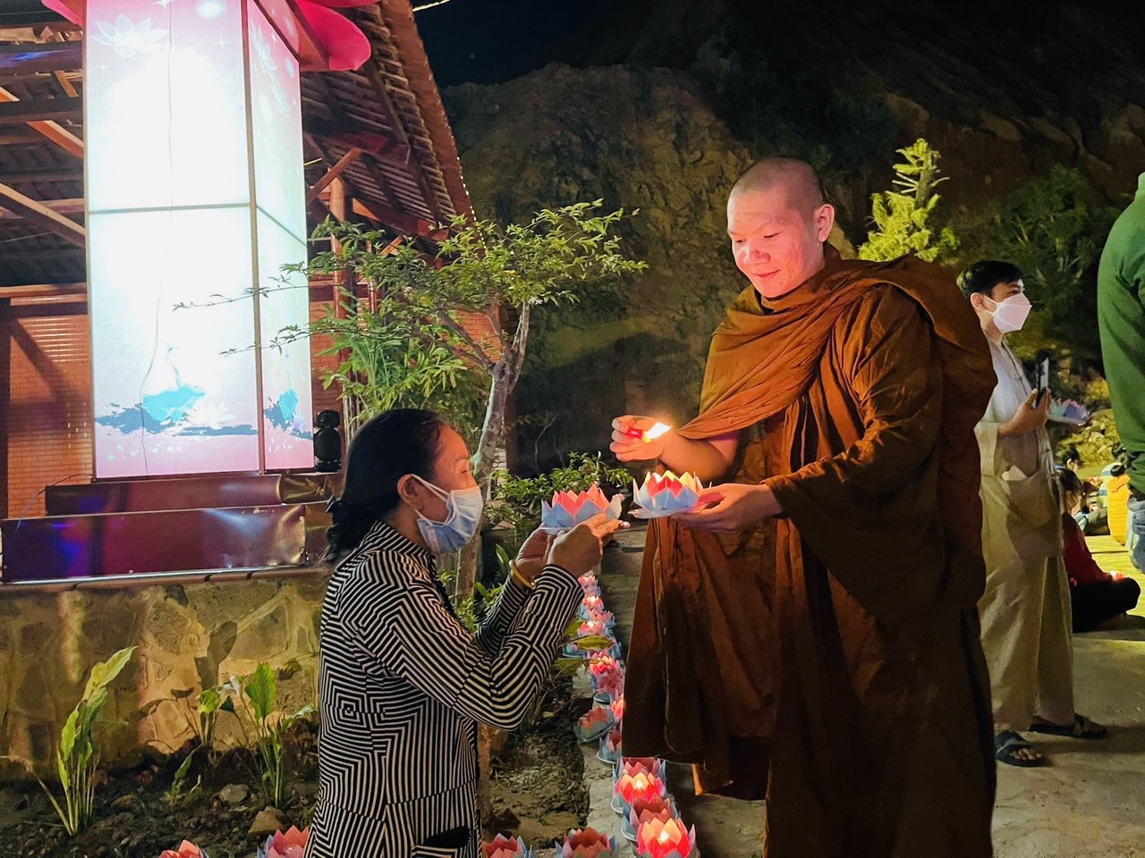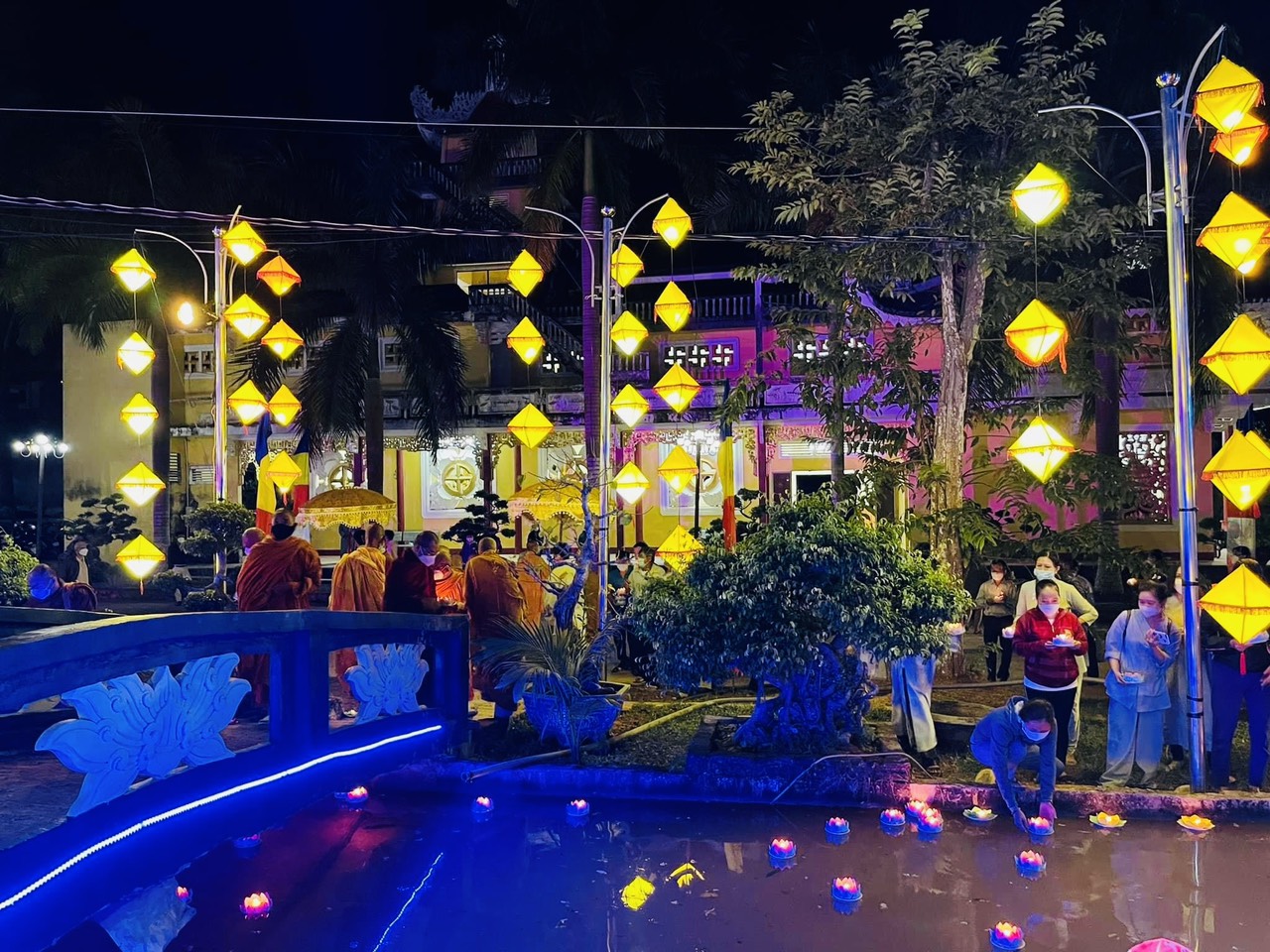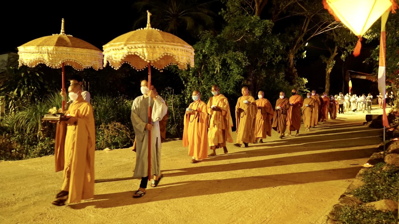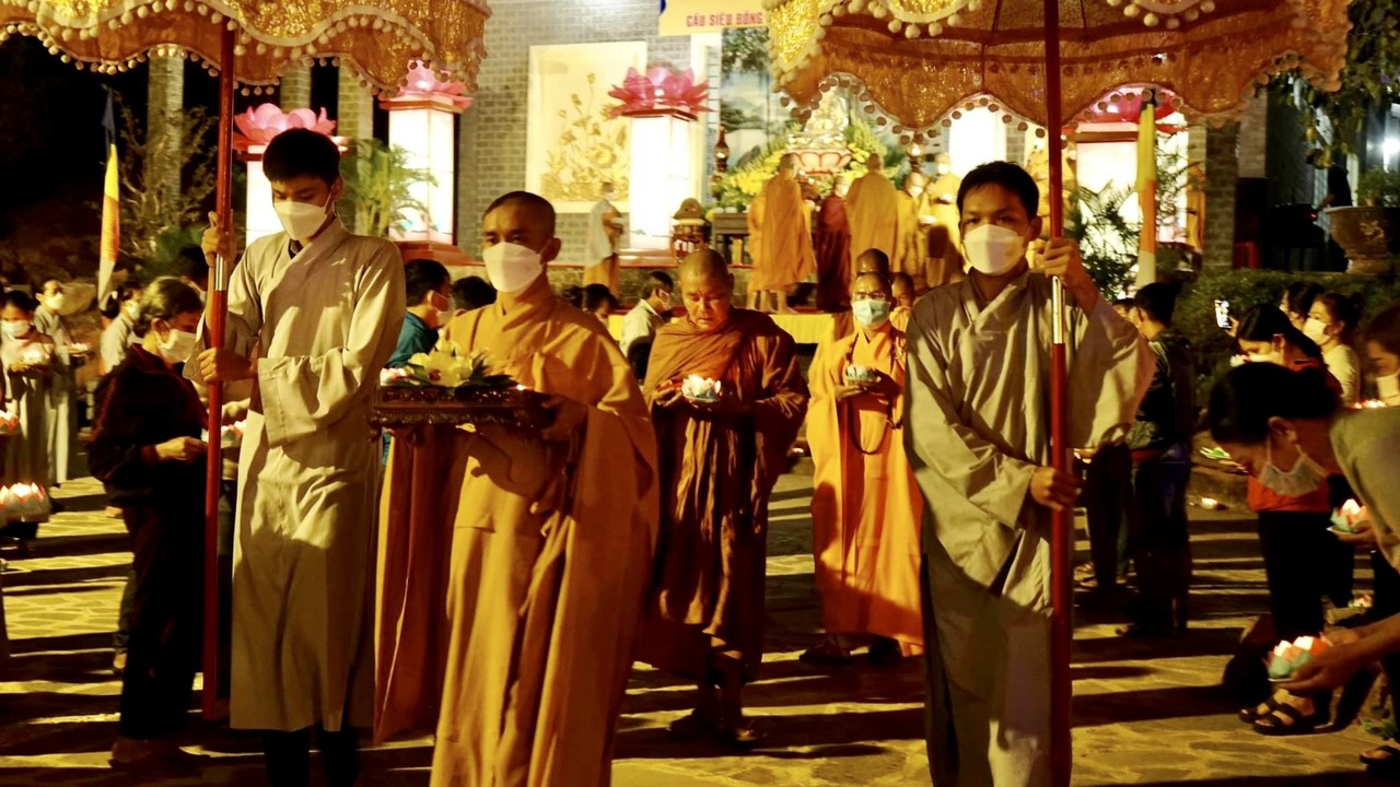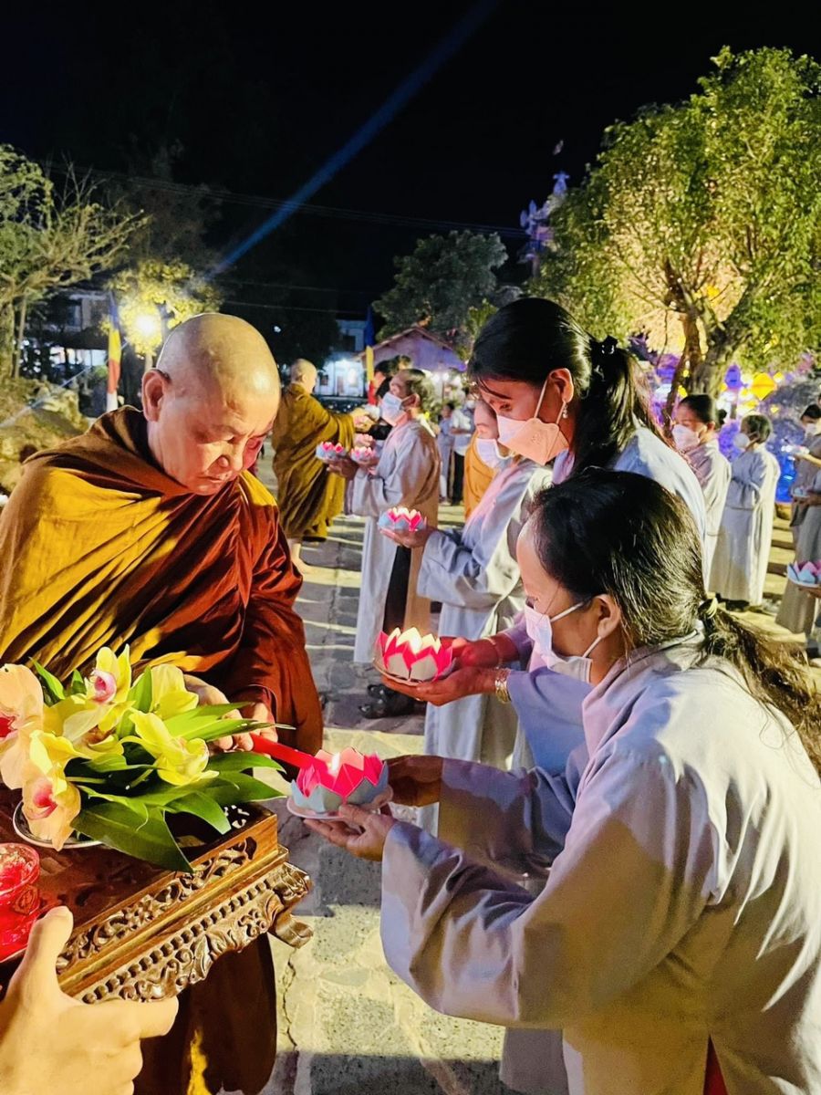 Buổi lễ đã kết thúc trong sự trang nghiêm ý nghĩa khi Chư Tăng cùng quý Phật tử đồng nhau nhiễu quanh hồ với đèn hoa sen trên tay và thả trôi trên mặt hồ như một lời tri ân sâu sắc.