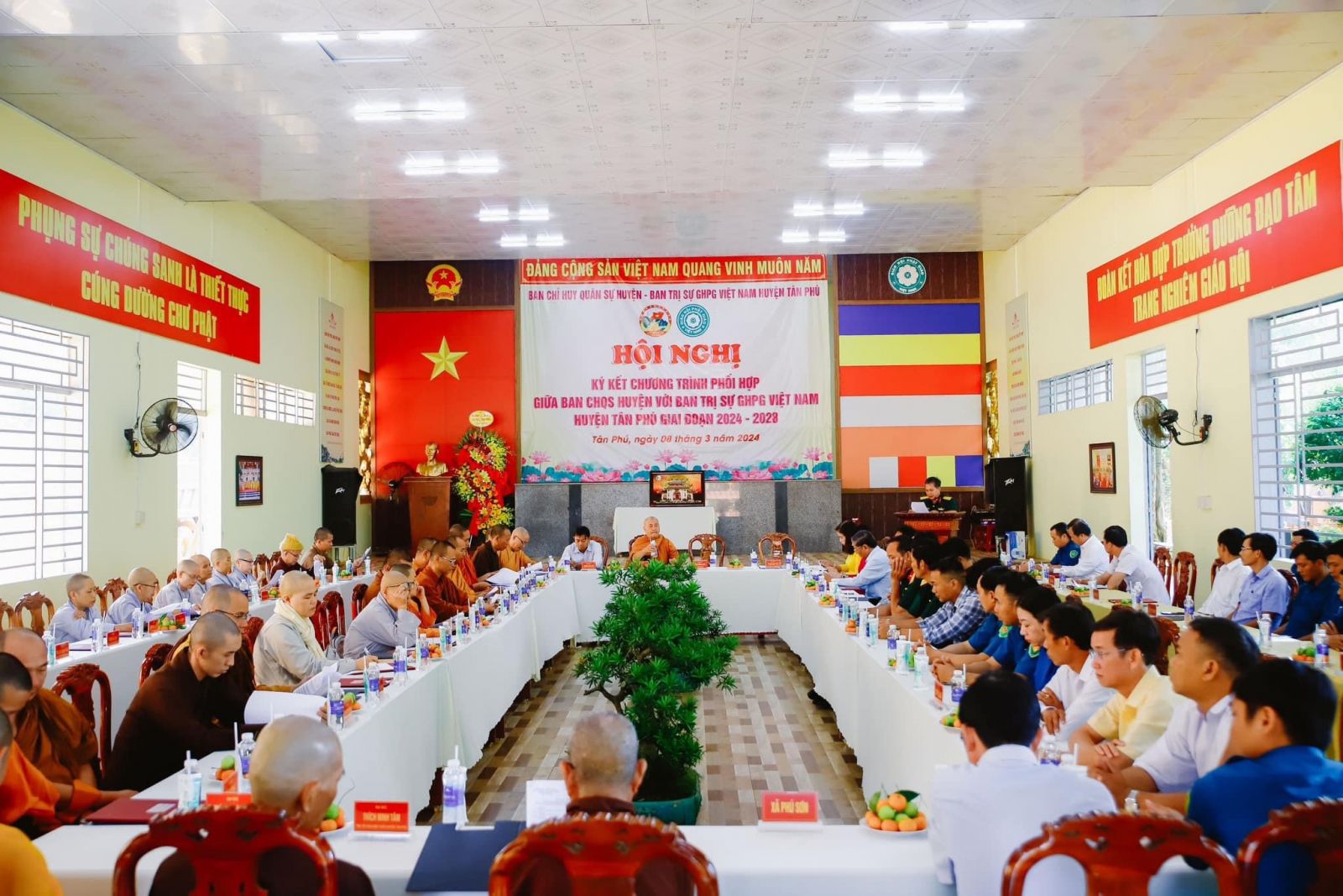 Phát biểu tại Hội nghị, Thượng tá Phạm Hồng Tuyên nhấn mạnh việc phối hợp giữa Ban Chỉ huy Quân sự huyện với Ban Trị sự GHPGVN huyện Tân Phú (giai đoạn 2024 - 2028) là nhằm thực hiện mục đích tuyên truyền về đường lối, chủ trương, chính sách, Pháp luật của Đảng, Nhà nước về công tác quốc phòng và công tác tôn giáo, pháp huy vai trò của tôn giáo trong sự nghiệp xây dựng và bảo vệ Tổ quốc, góp phần giữ vững an ninh chính trị, trật tự an toàn xã hội, tạo điều kiện phát triển kinh tế, văn hóa - xã hội trên địa bàn huyện.