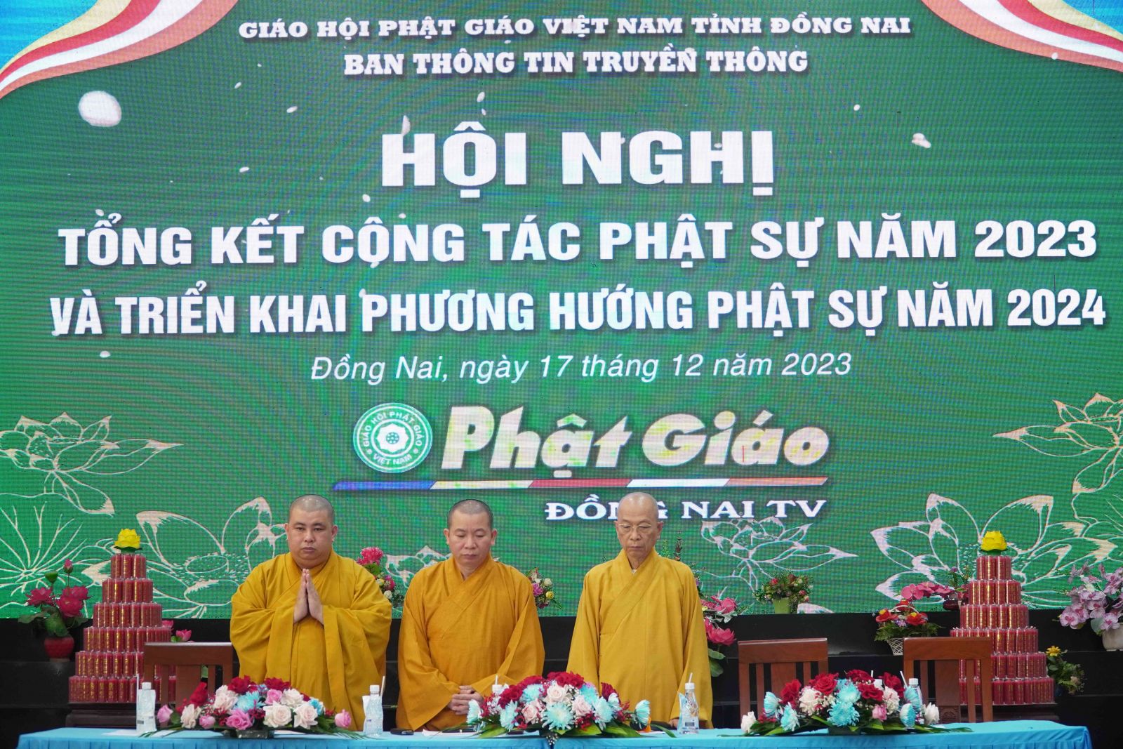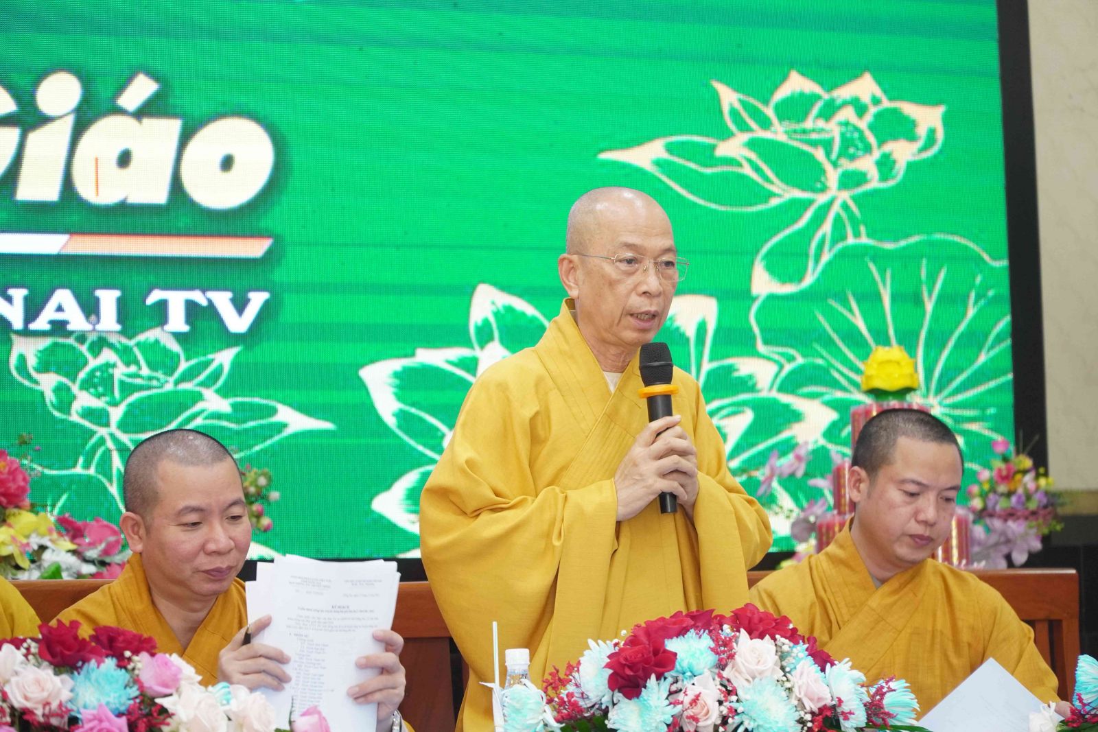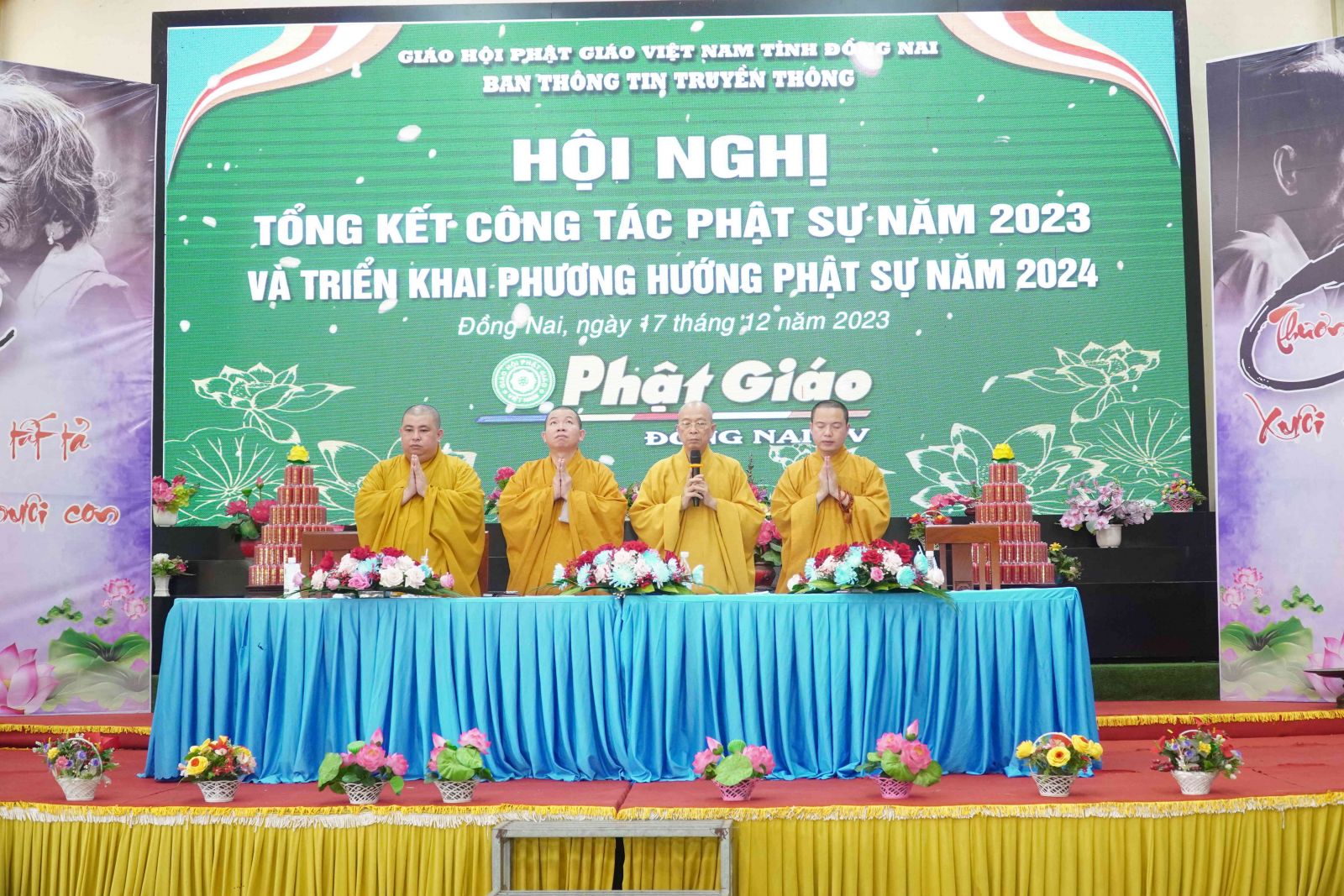 Phát biểu khai mạc hội nghị, ĐĐ. Thích Thiện Mỹ - Trưởng ban Thông tin Truyền thông tỉnh Đồng Nai đã tán những thành tựu, những đóng góp trong thời gian qua của toàn thể thành viên trong ban Truyền thông, đồng thời Ngài cũng nhắc lại trích dẫn của Hiến chương Giáo hội và lời của Hòa thượng Chủ tịch HĐTS đã chỉ dạy là hãy phát huy Truyền thông như một kênh Hoằng pháp. Đồng thời người làm Truyền thông phải phát huy hết vai trò của mình với phương châm Ngòi bút thép, Ẩn ác dương thiện để mang lại những hình ảnh đẹp cho Phật giáo và cho Tăng Ni, Phật tử.