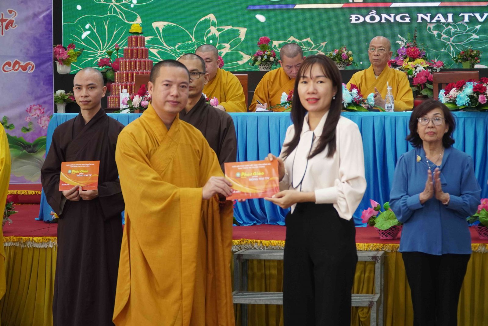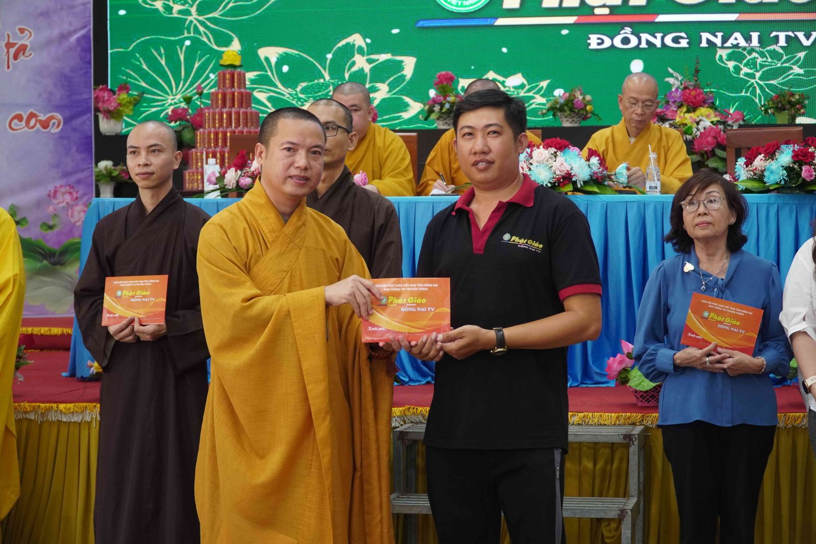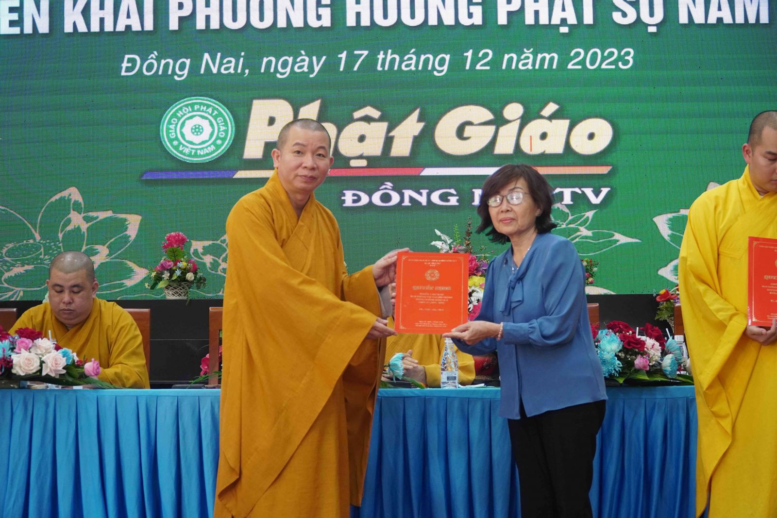 Cũng trong hội nghị, lần này Ban Trị sự GHPGVN tỉnh Đồng Nai tiếp tục trao quyết định Chuẩn y nhân sự ban TTTT nhiệm kỳ 2022 – 2027 cho những thành viên được bổ sung và ban TTTT cũng trao thẻ thành viên ban Biên tập, tài khoản của kênh Phật Giáo Đồng Nai TV.