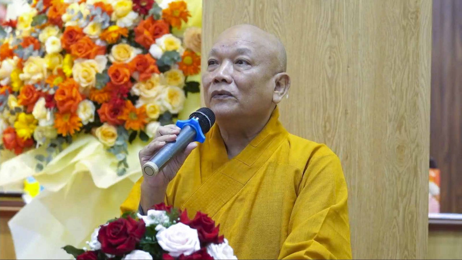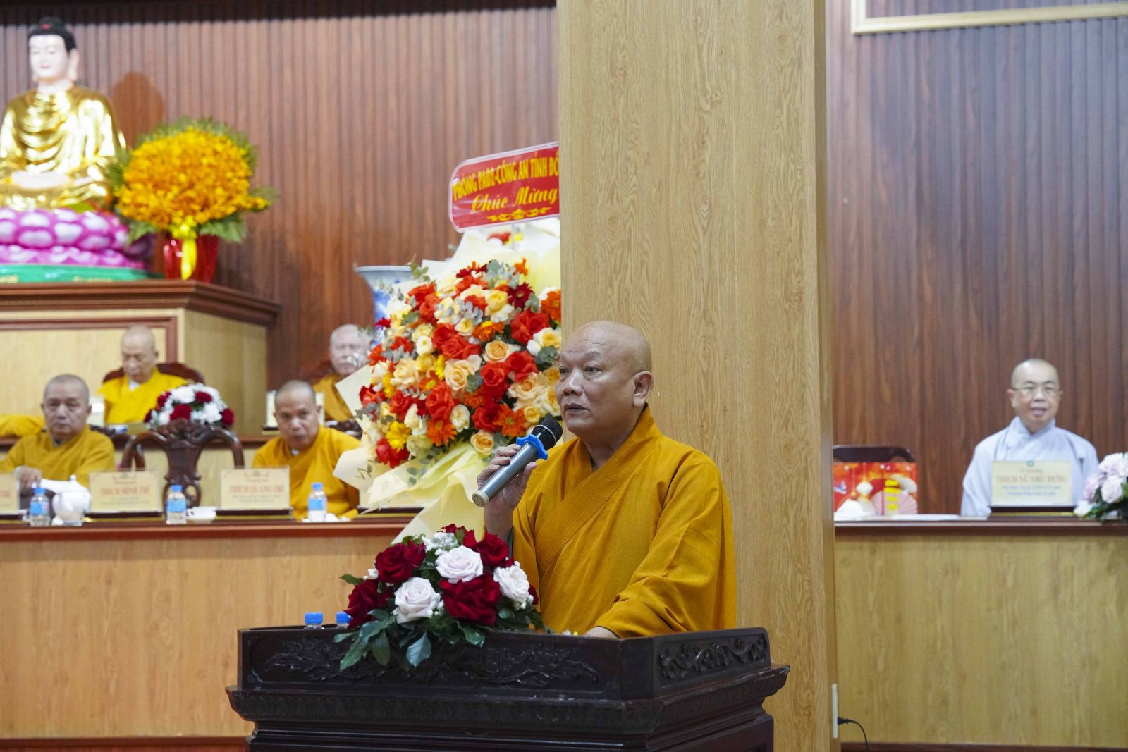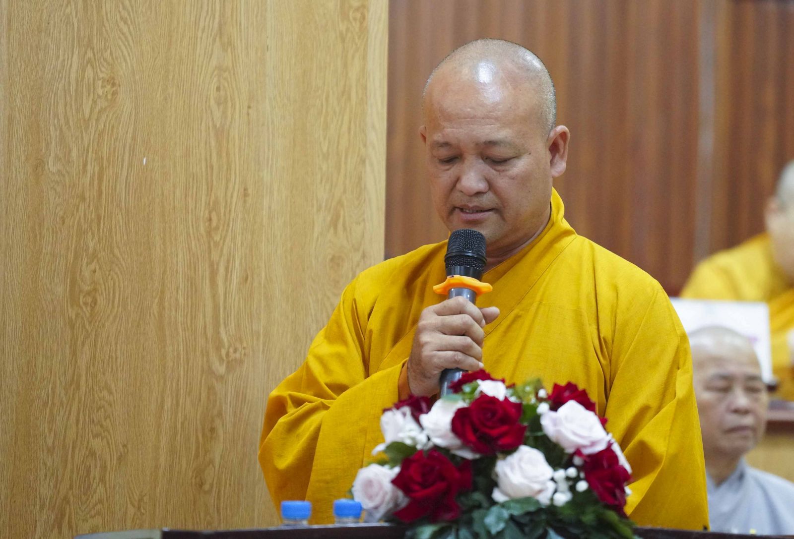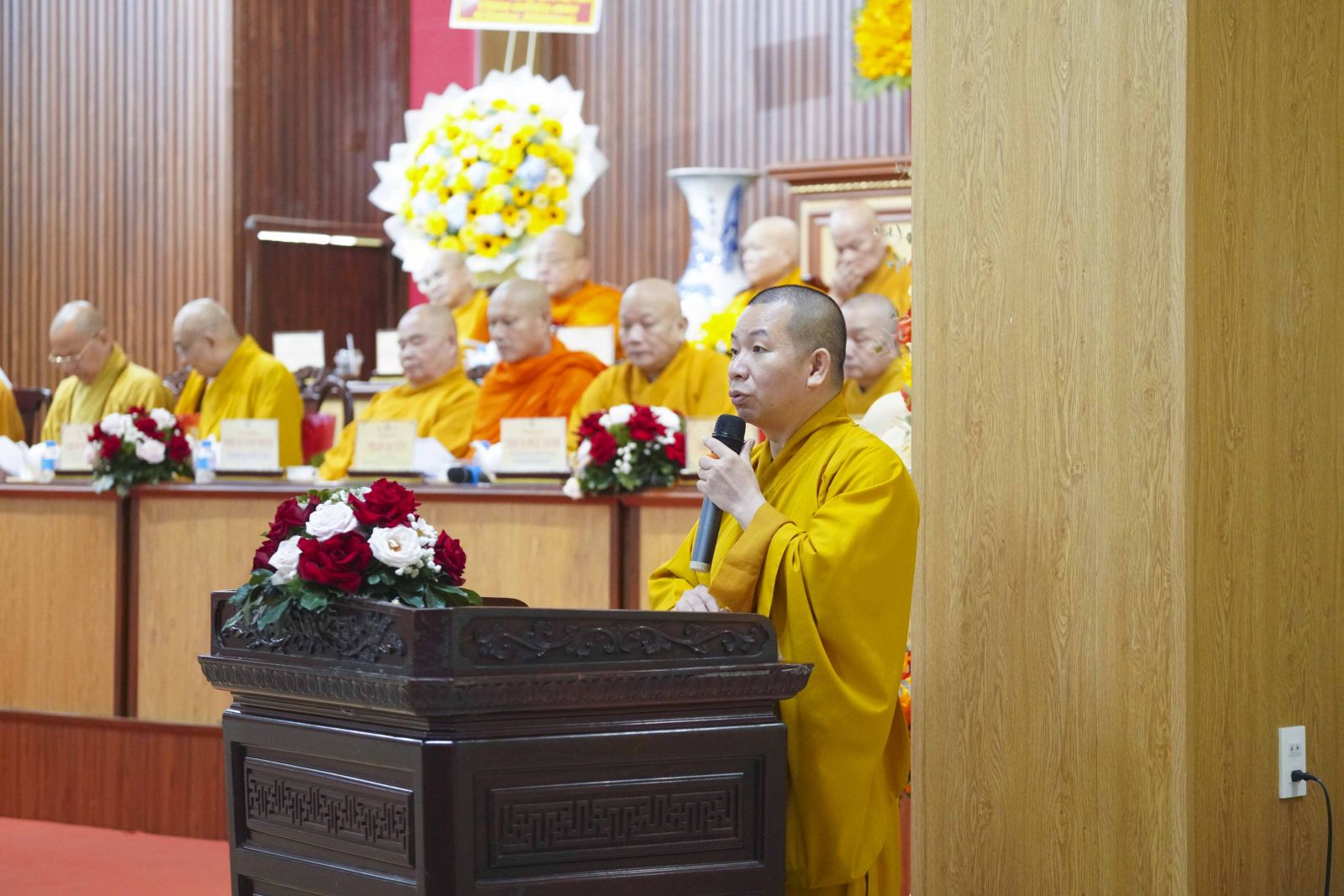Sau lời phát biểu khai mạc, ĐĐ. Thích Đạt Ma Đức Long đã thay mặt Ban Thư ký Ban Trị sự Phật giáo tỉnh báo cáo tổng kết công tác Phật sự năm 2025.