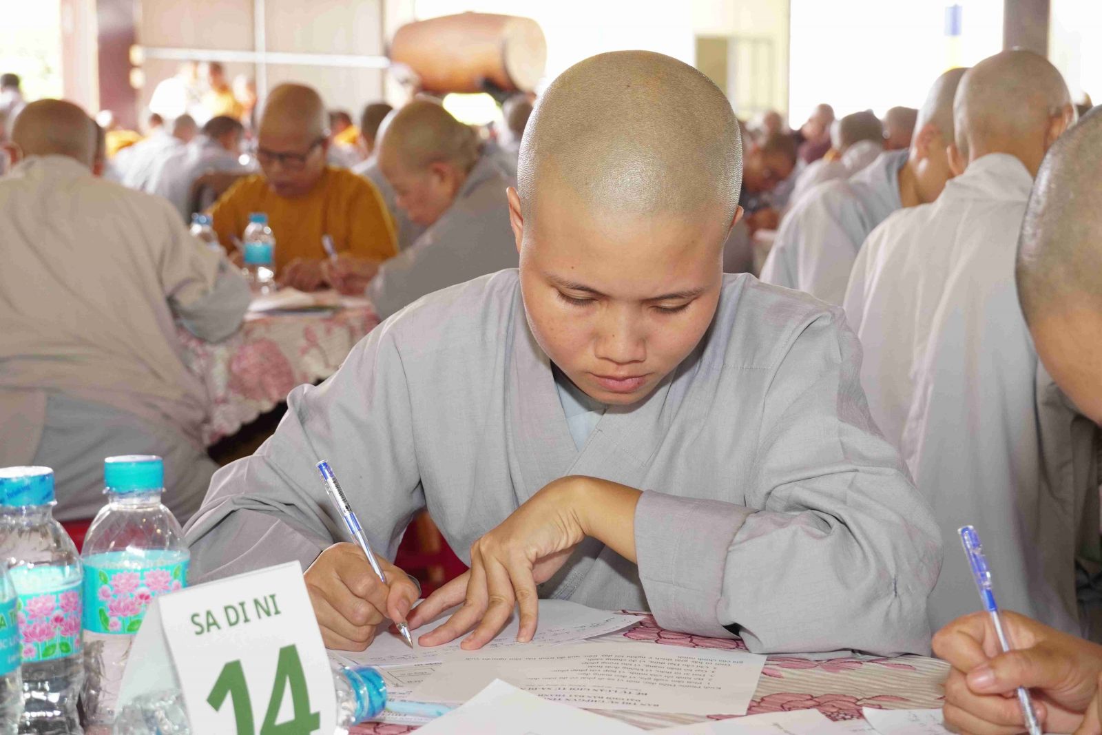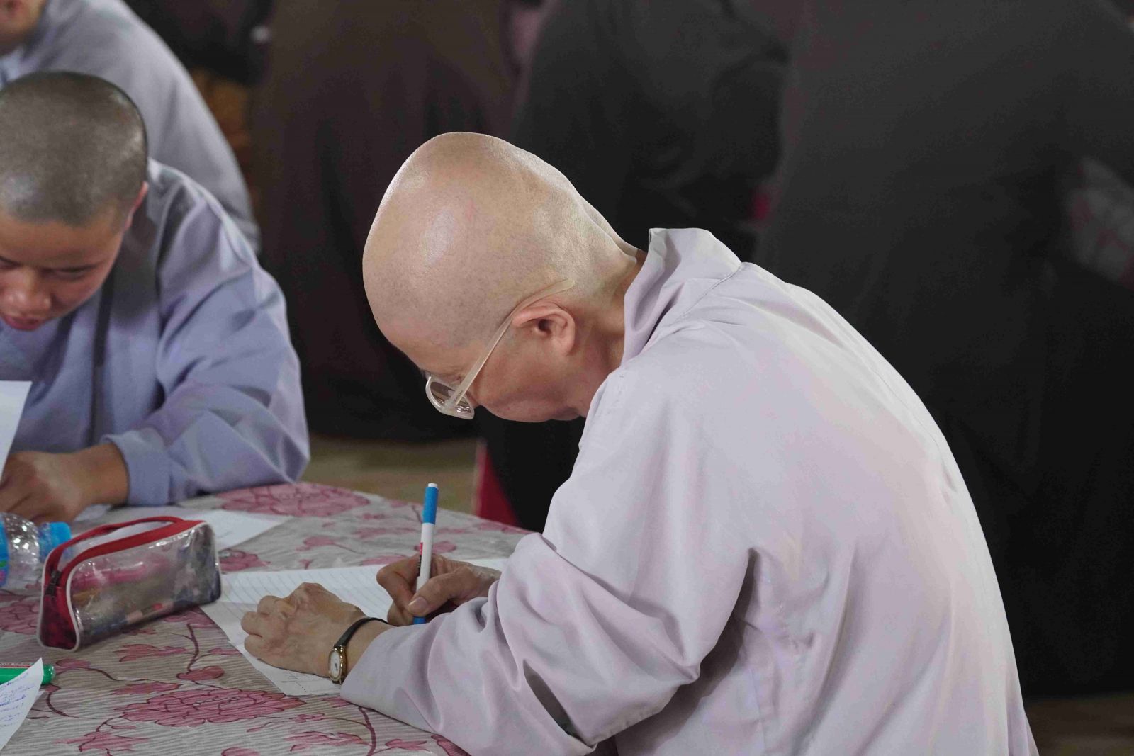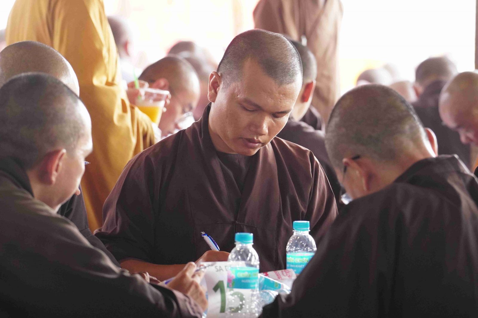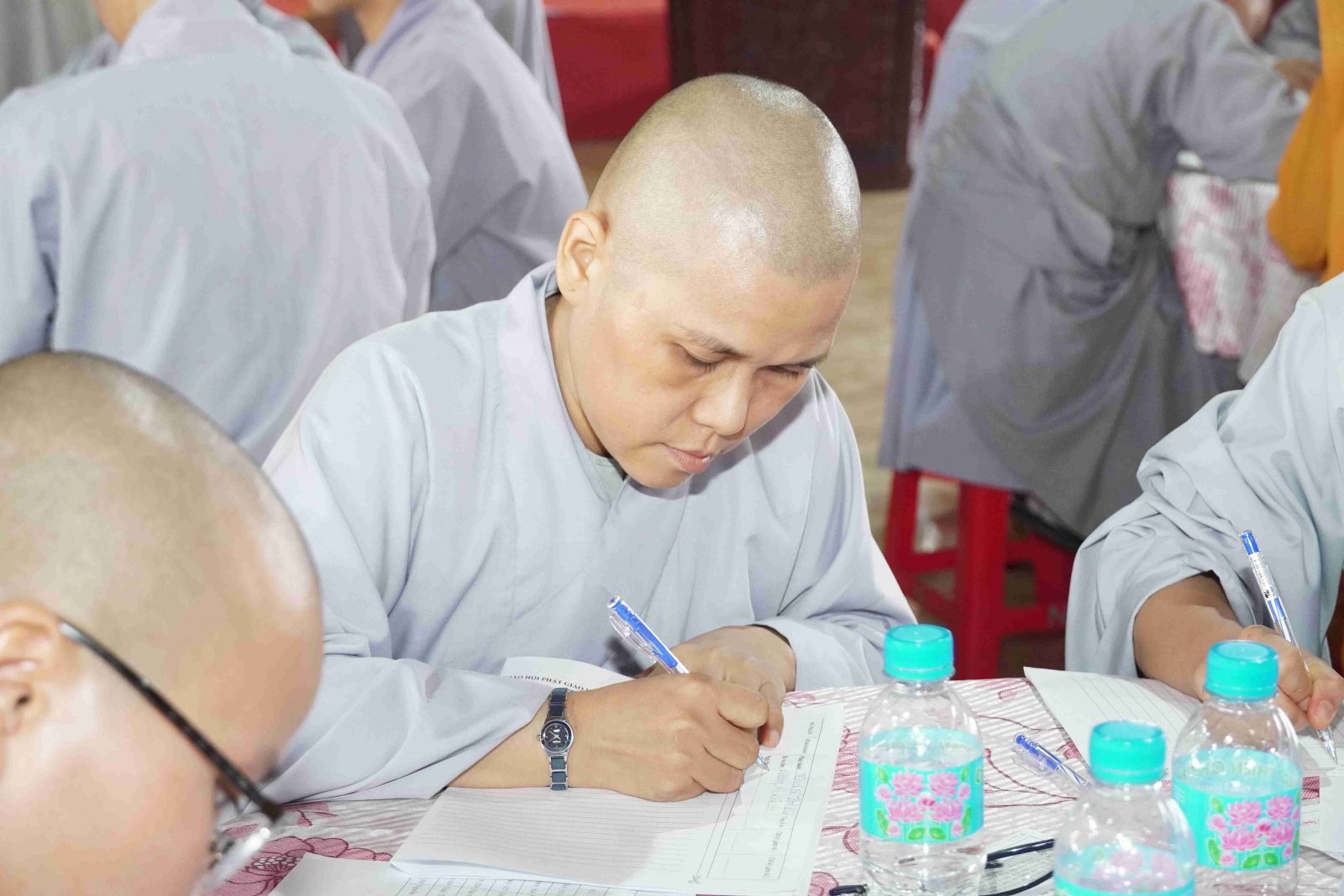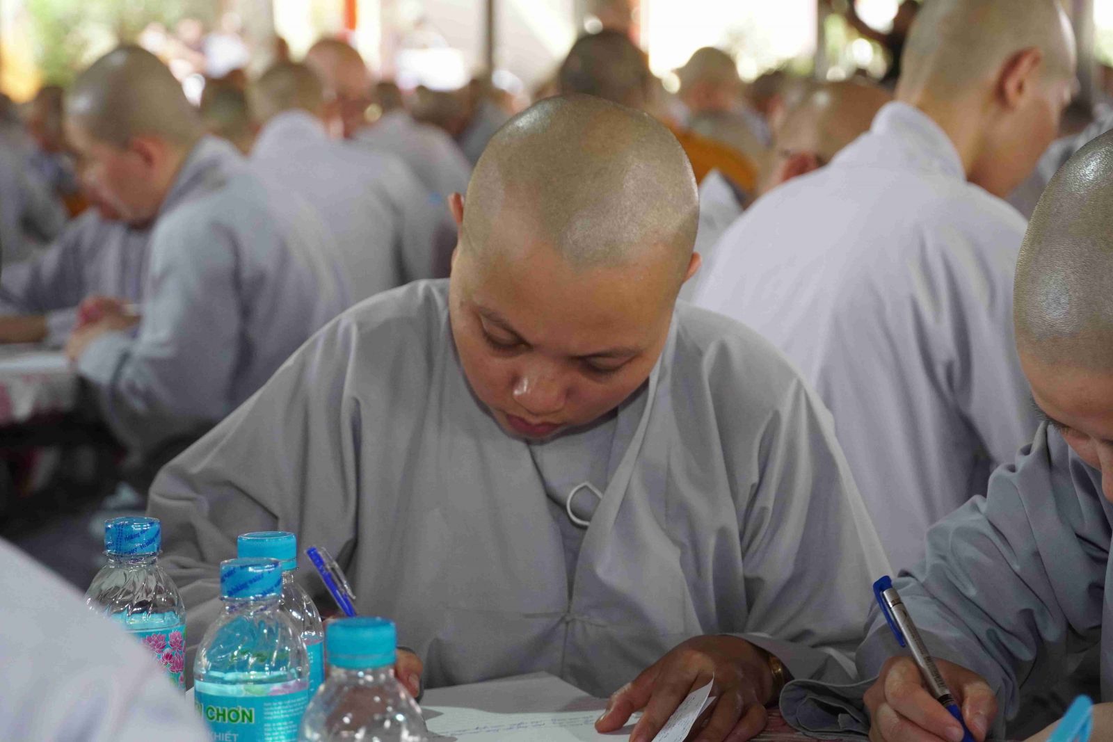Sau cùng, dưới sự hướng dẫn của ĐĐ. Thích Đạt ma Quang Tuệ hơn 2000 giới tử đã chính thức thực hiện phần thi Trắc nghiệm và tự luận.