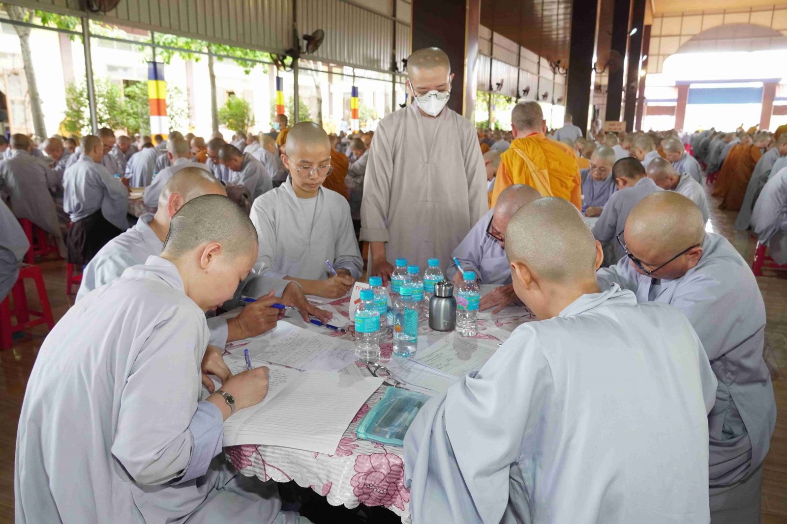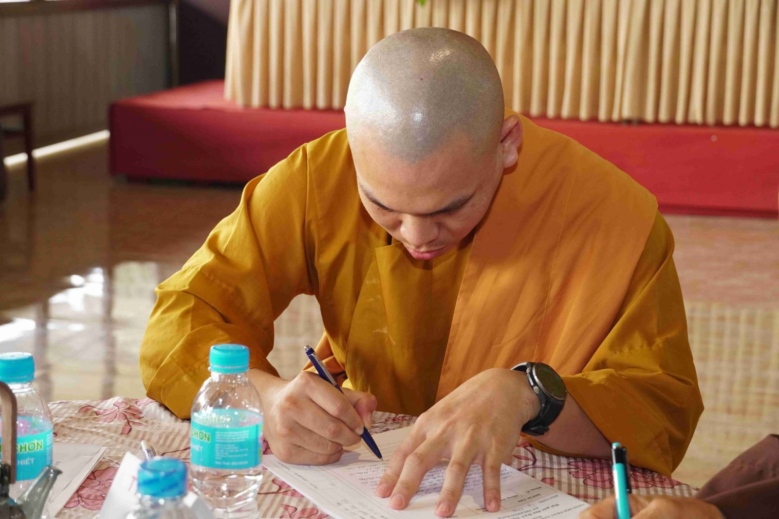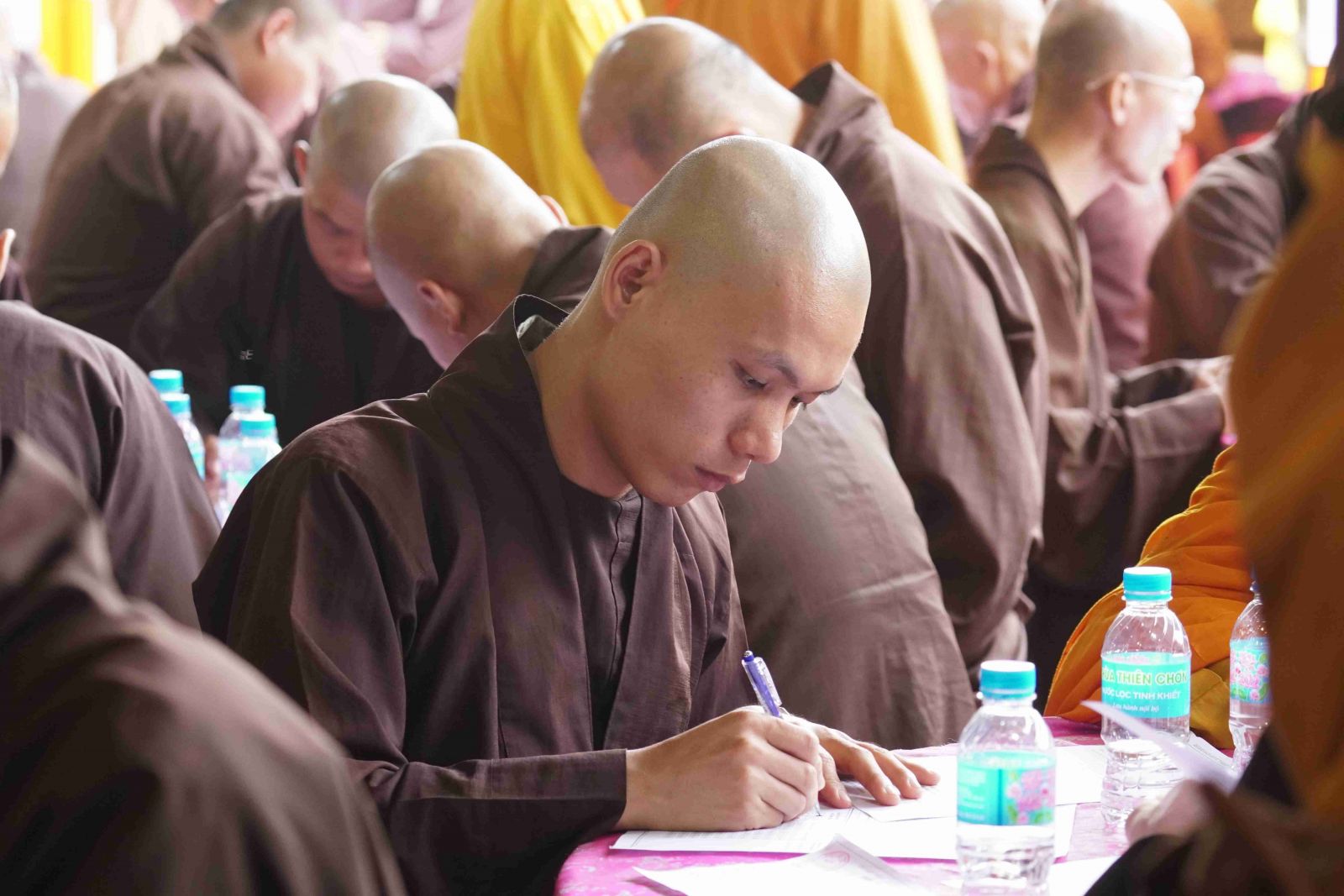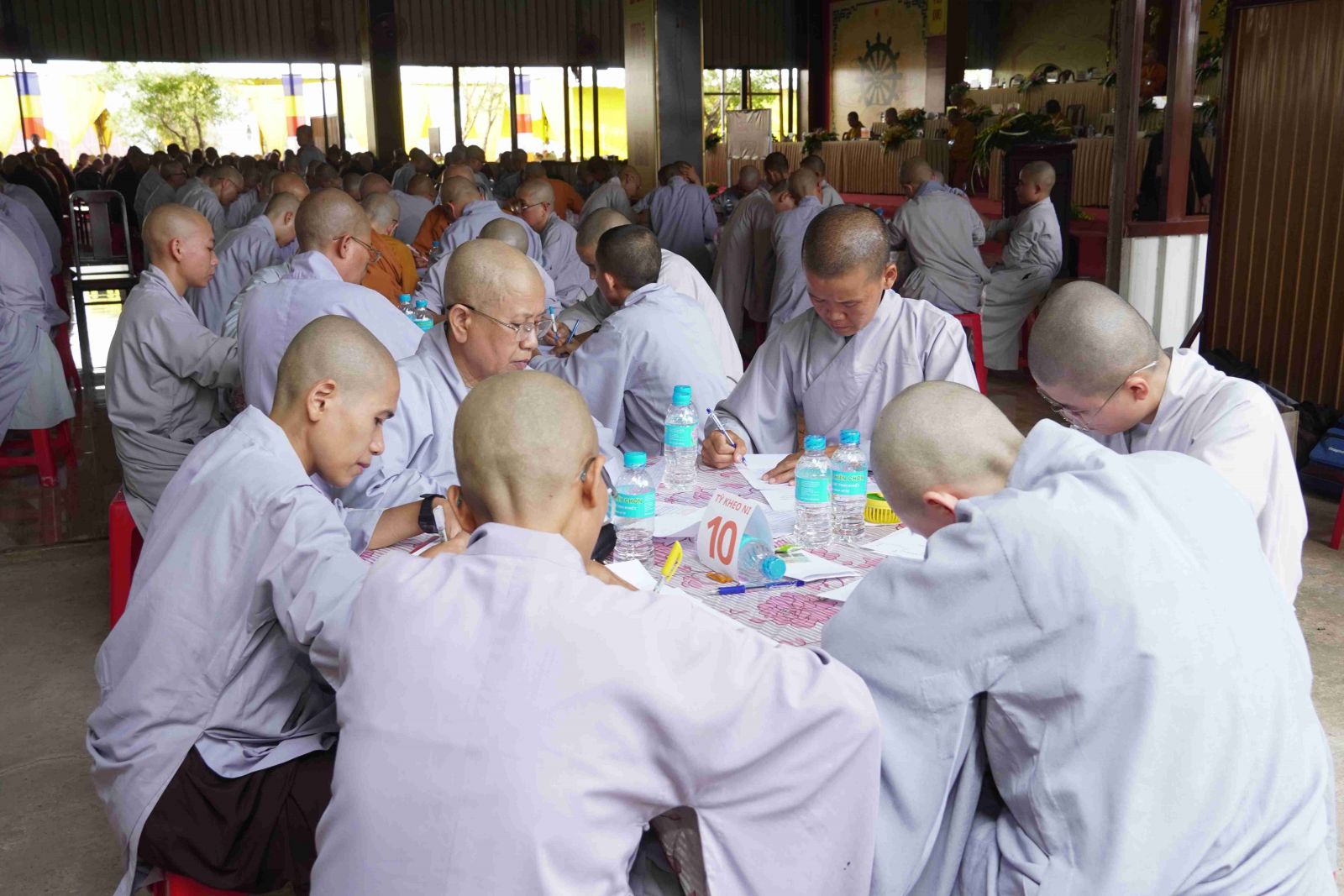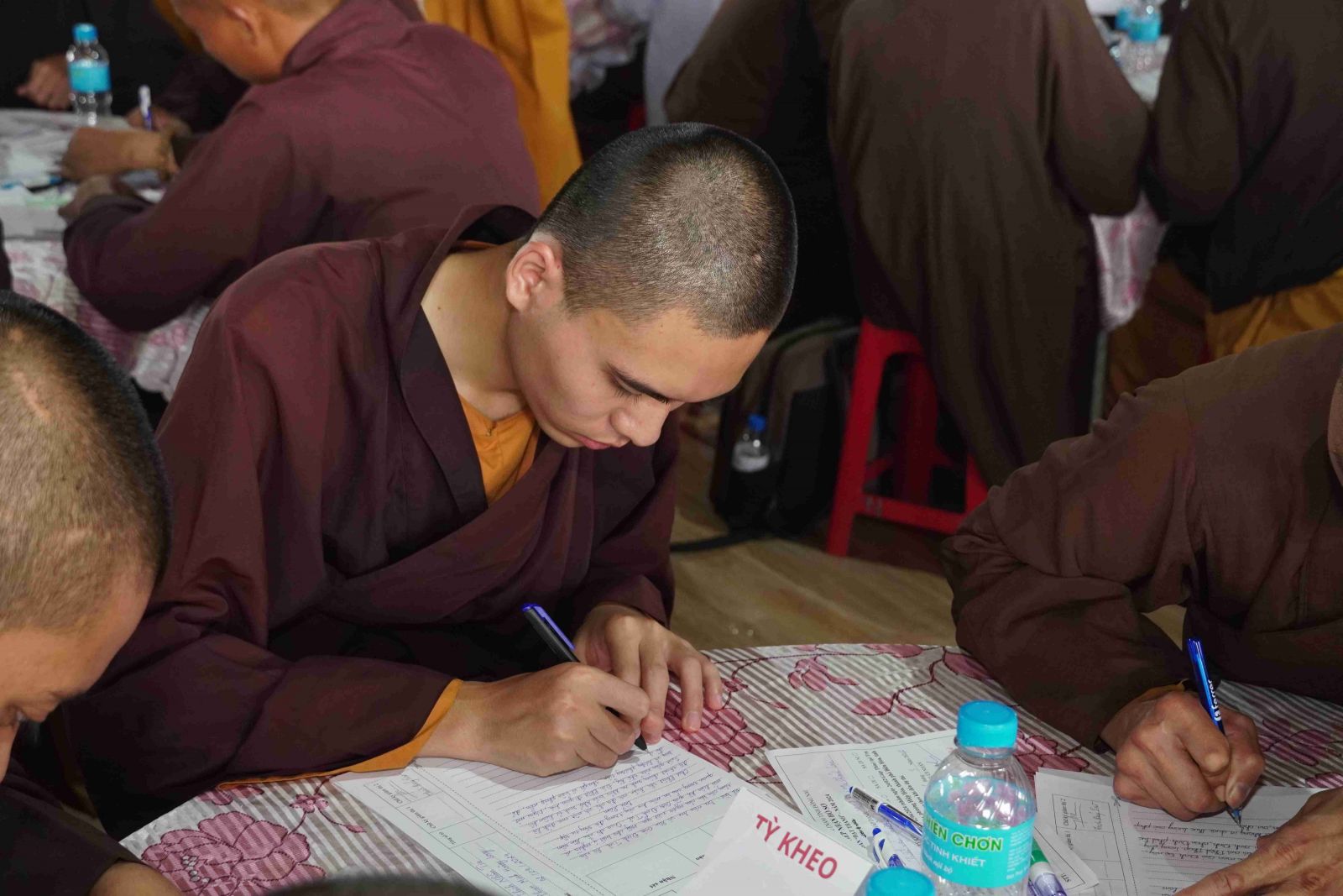 Sau cùng, dưới sự hướng dẫn của ĐĐ. Thích Đạt ma Quang Tuệ hơn 2000 giới tử đã chính thức thực hiện phần thi Trắc nghiệm và tự luận.