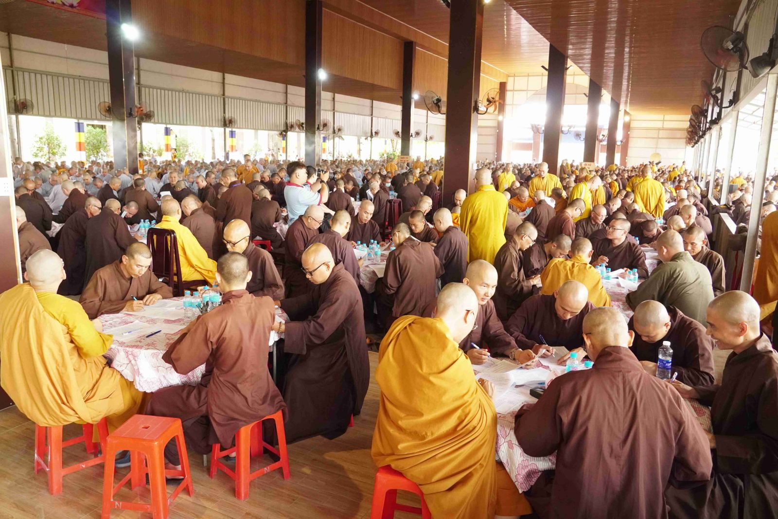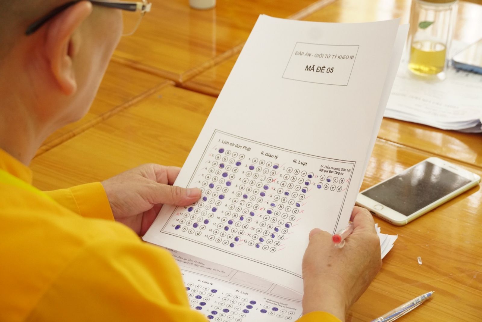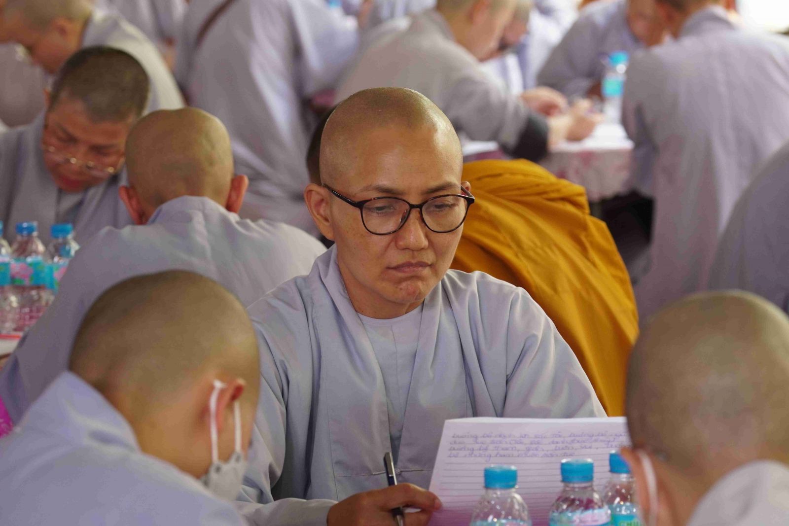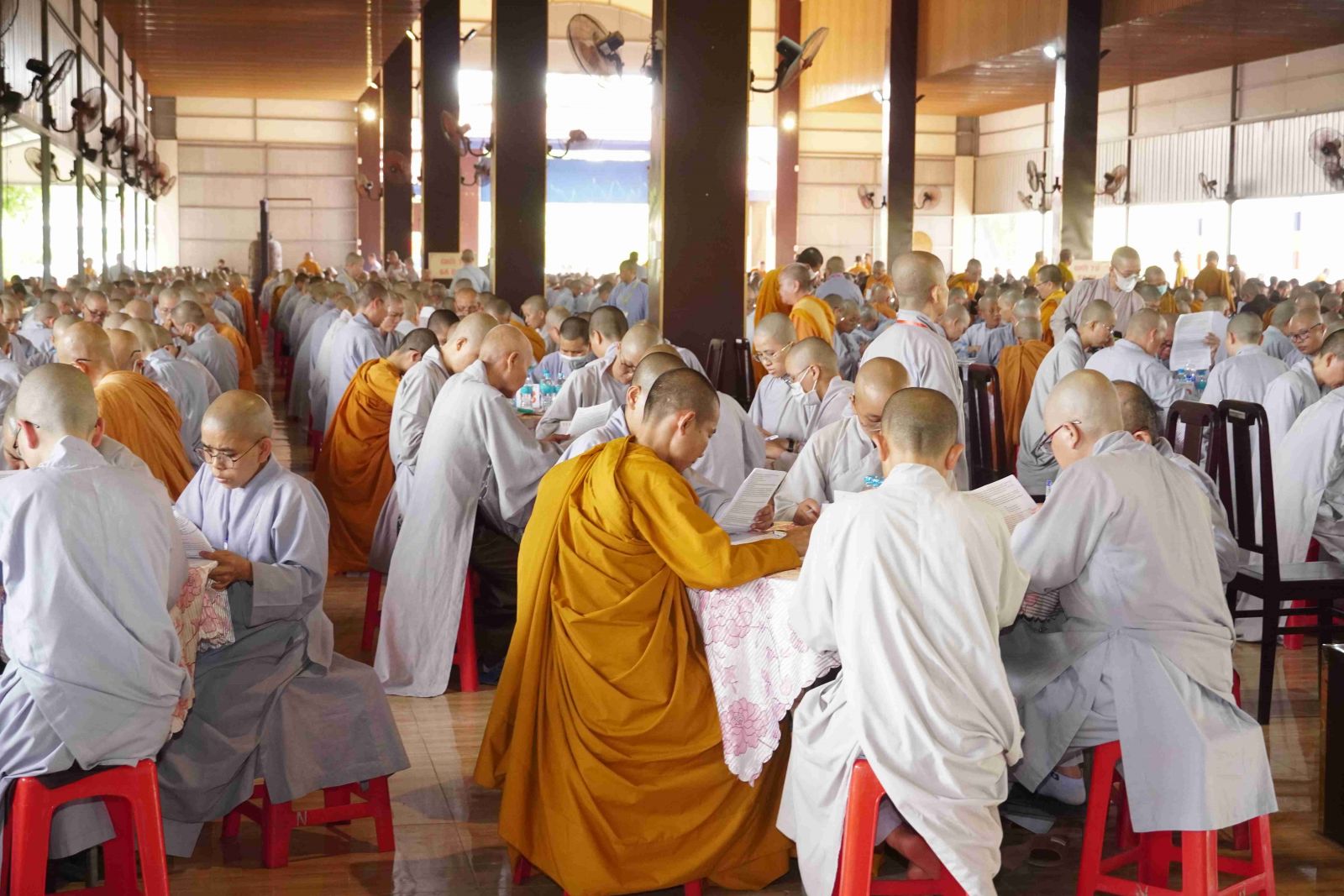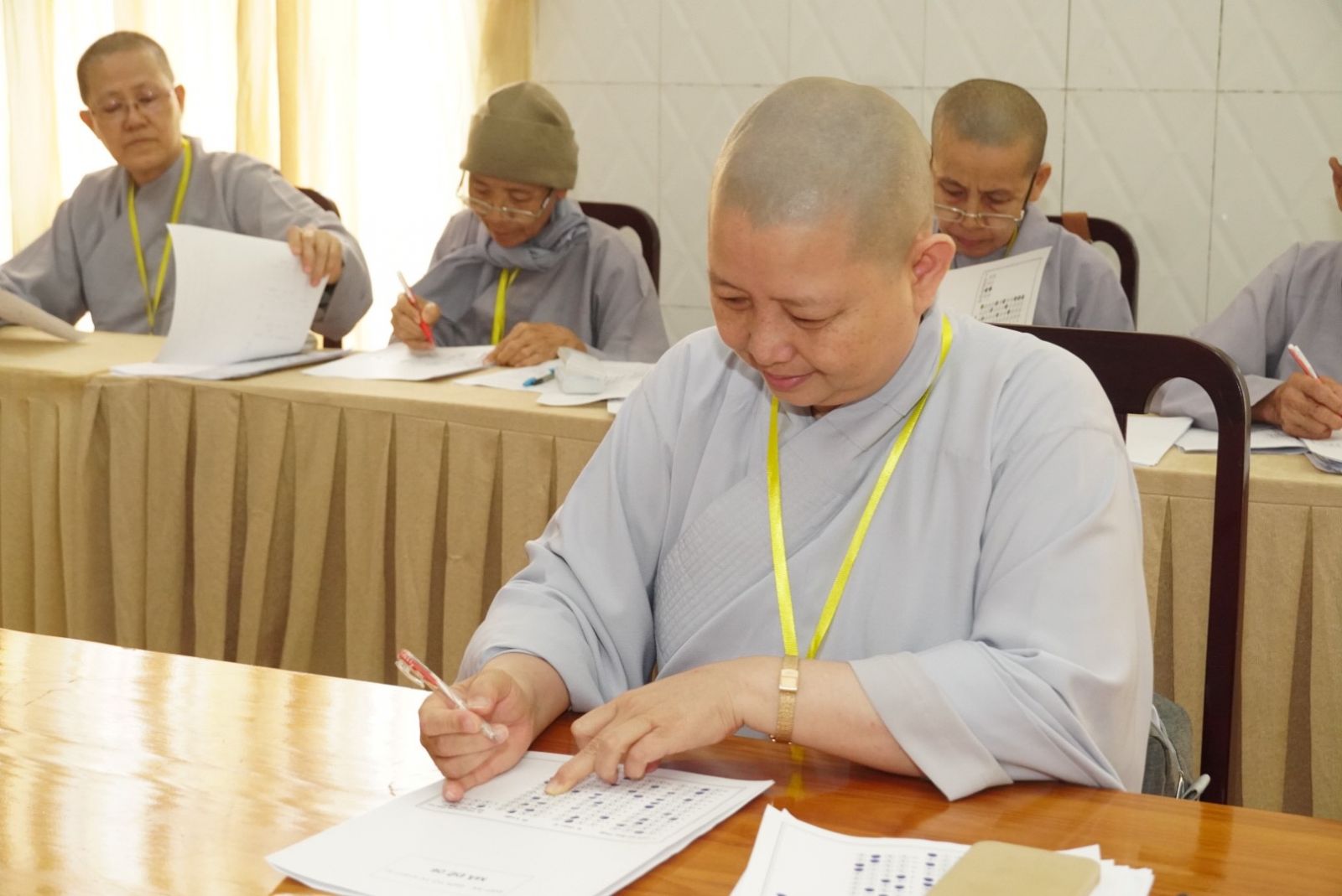 Sau cùng, dưới sự hướng dẫn của ĐĐ. Thích Đạt ma Quang Tuệ hơn 2000 giới tử đã chính thức thực hiện phần thi Trắc nghiệm và tự luận.
