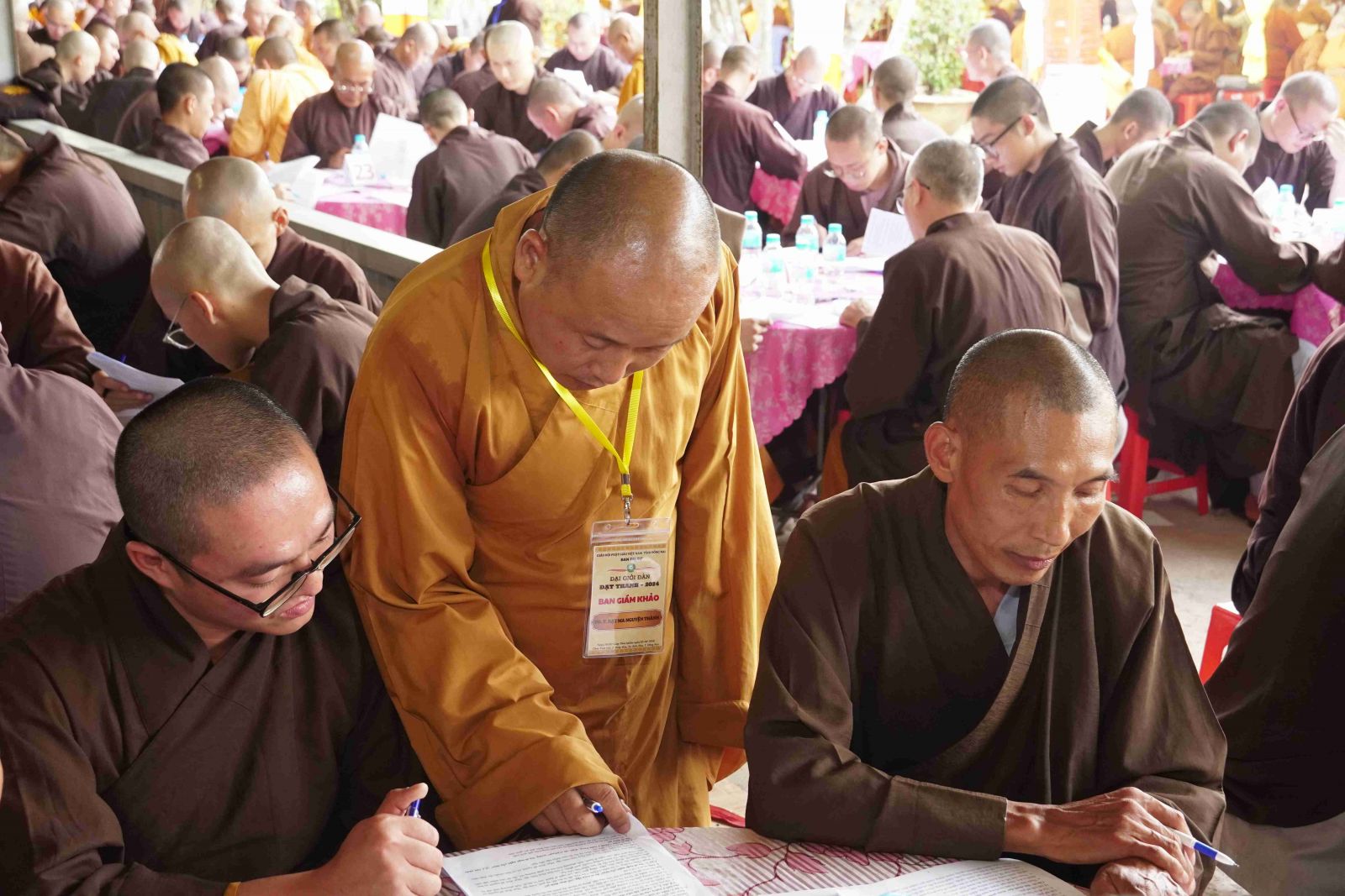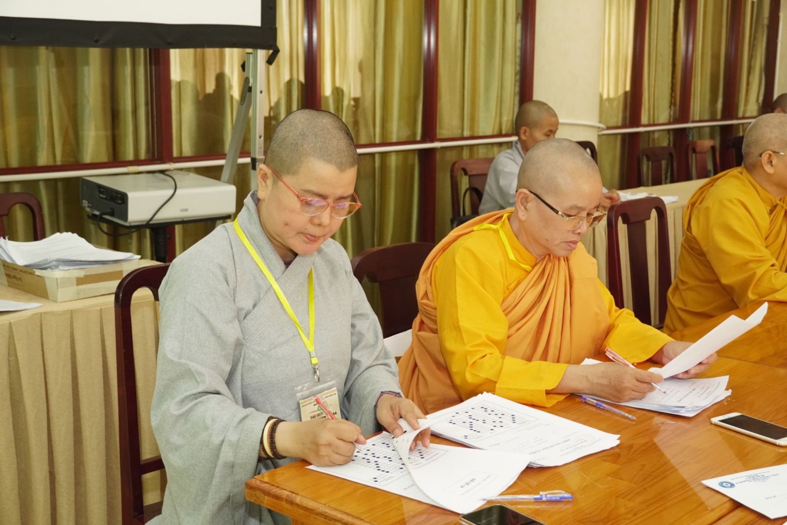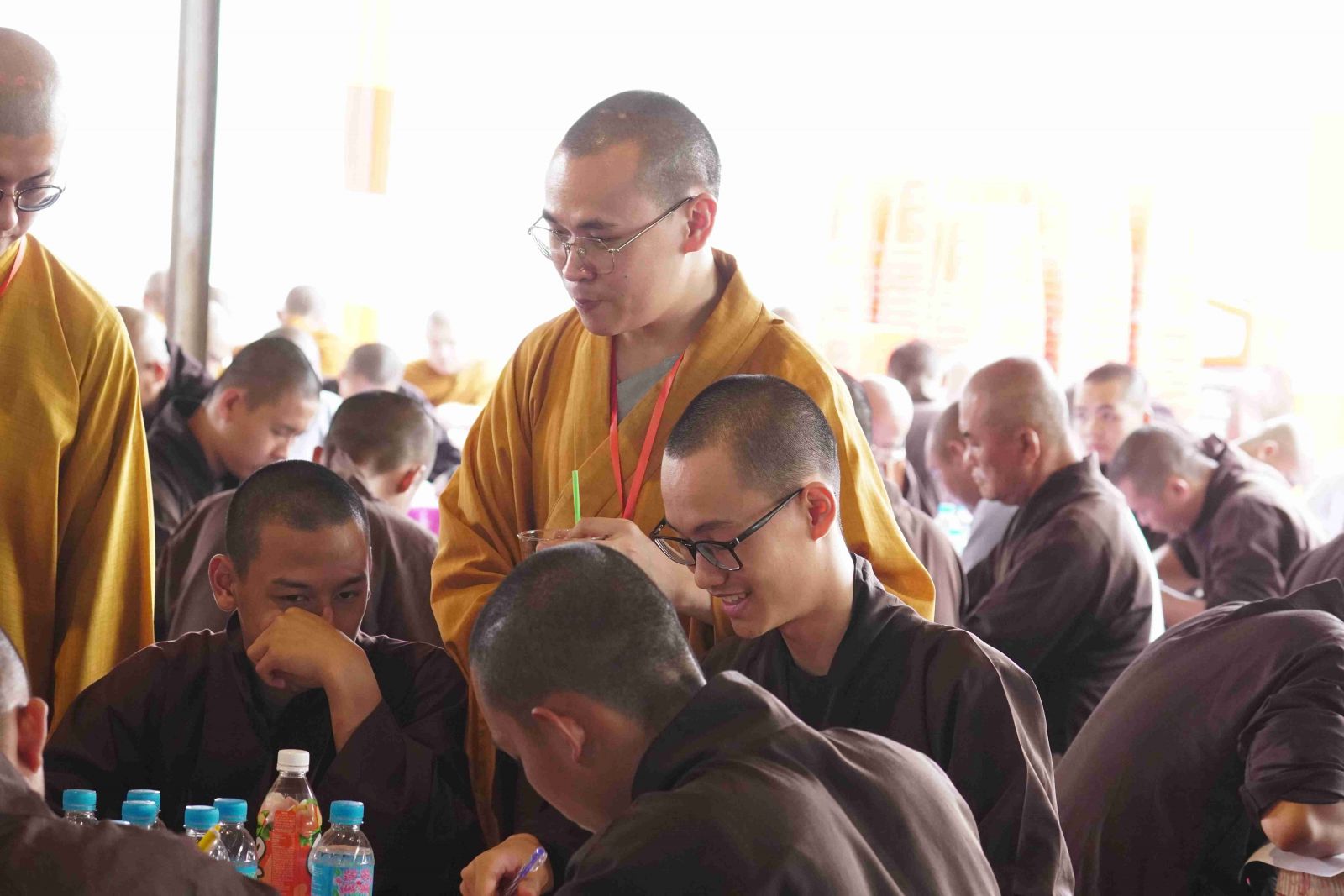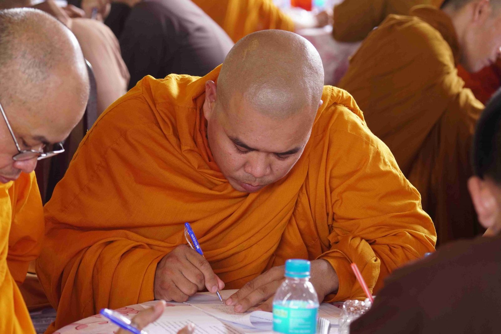 Sau cùng, dưới sự hướng dẫn của ĐĐ. Thích Đạt ma Quang Tuệ hơn 2000 giới tử đã chính thức thực hiện phần thi Trắc nghiệm và tự luận.