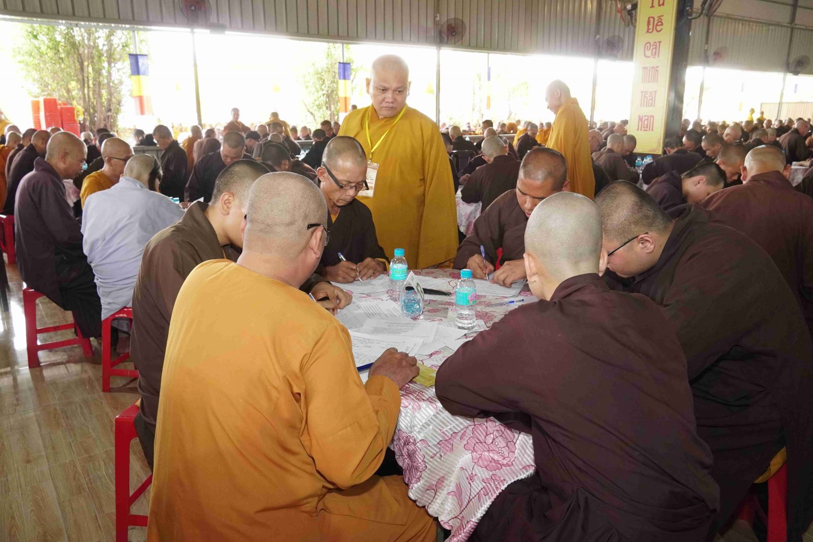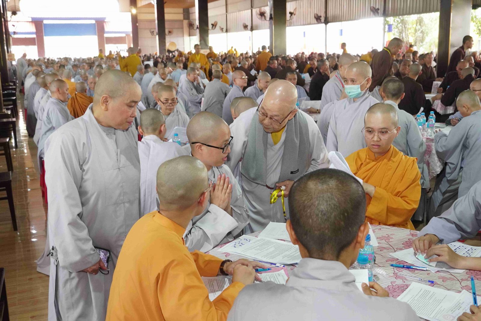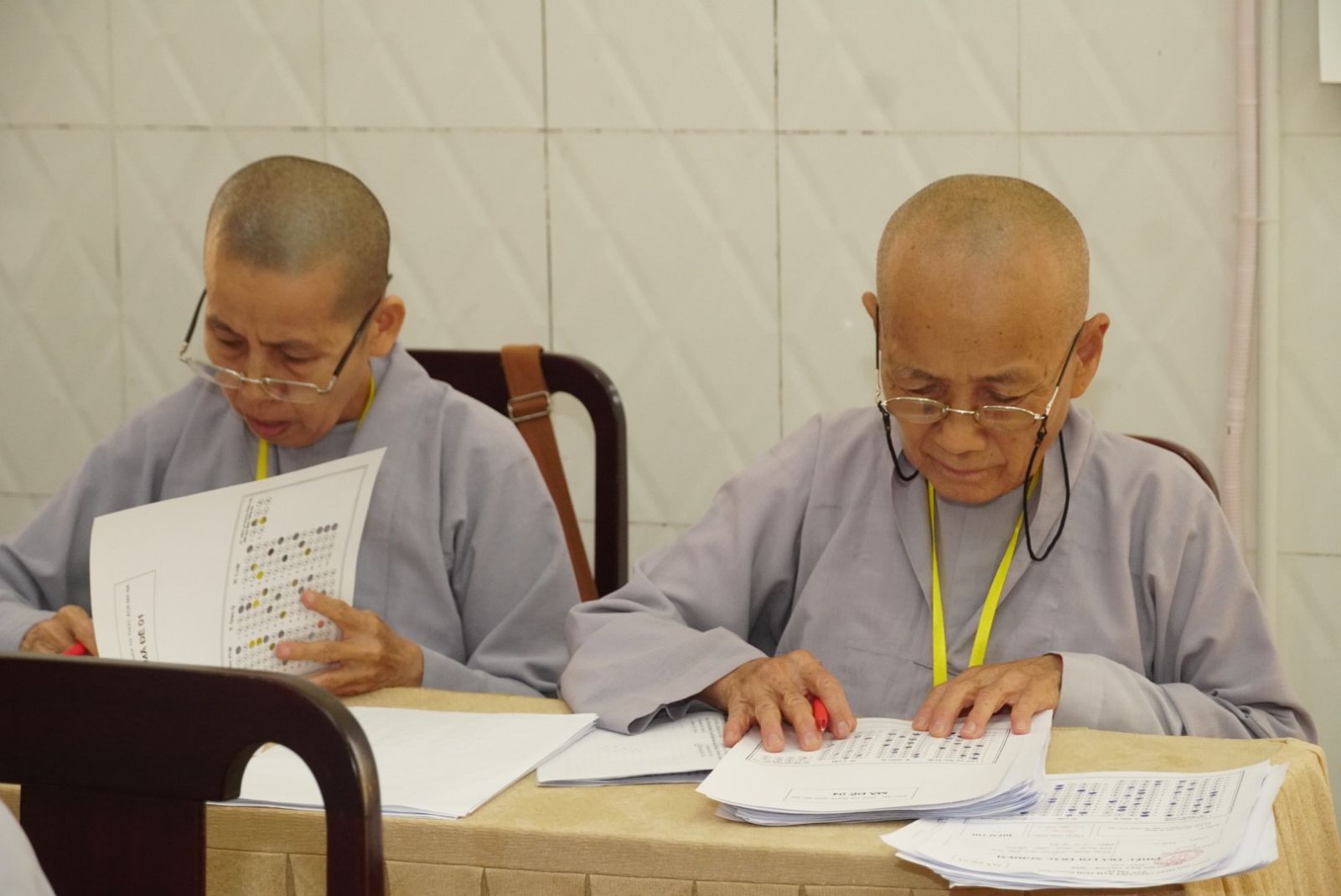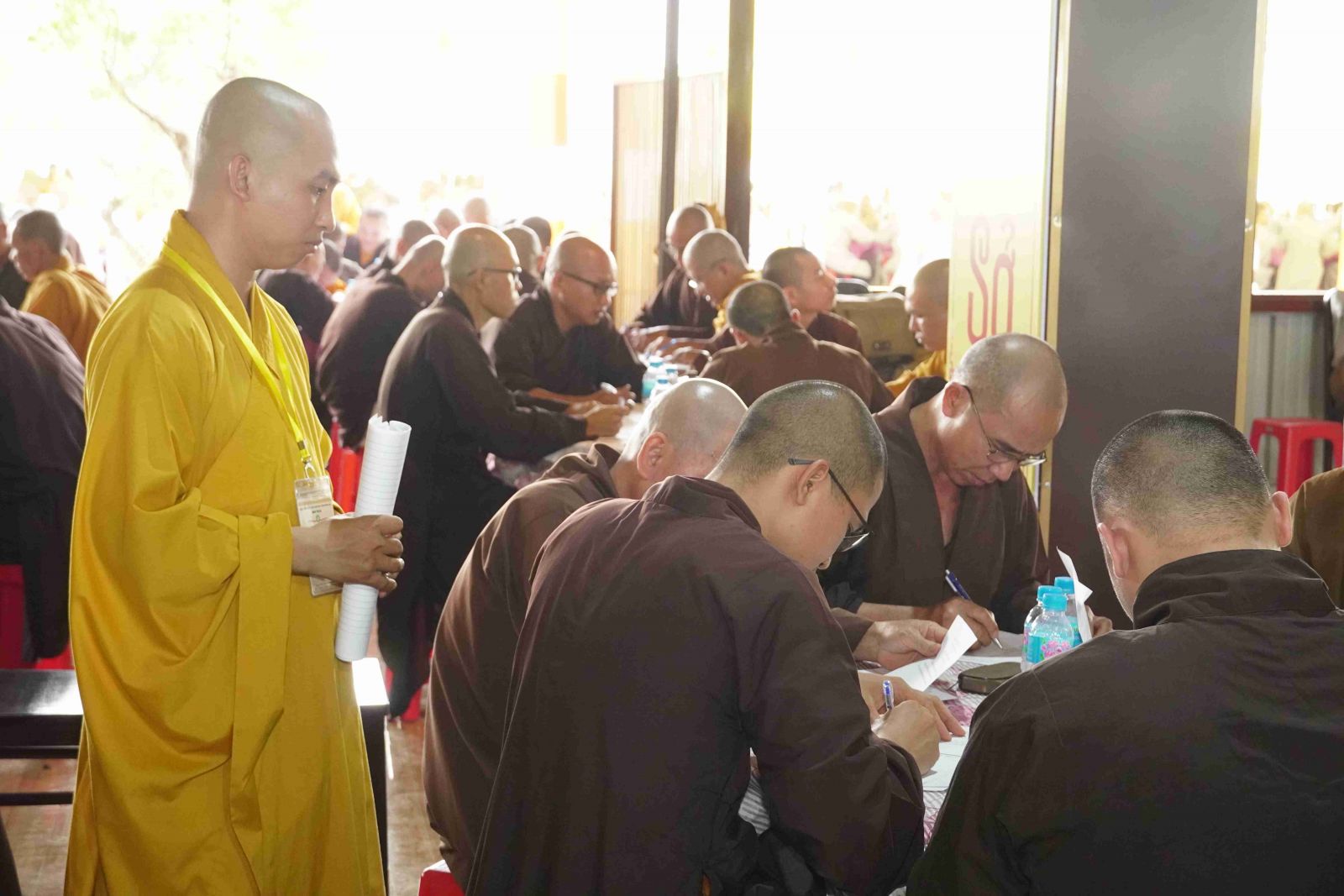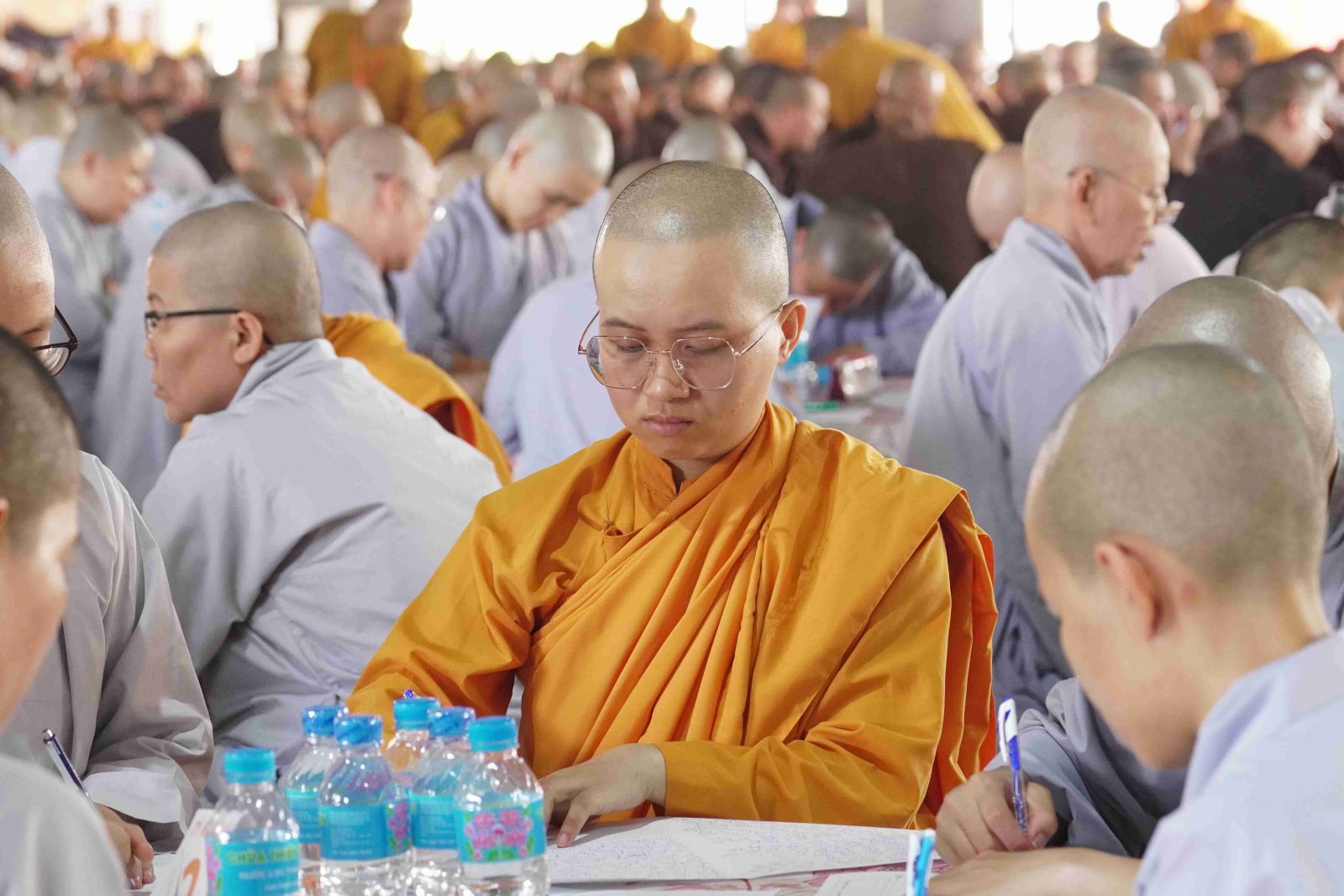 Sau cùng, dưới sự hướng dẫn của ĐĐ. Thích Đạt ma Quang Tuệ hơn 2000 giới tử đã chính thức thực hiện phần thi Trắc nghiệm và tự luận.