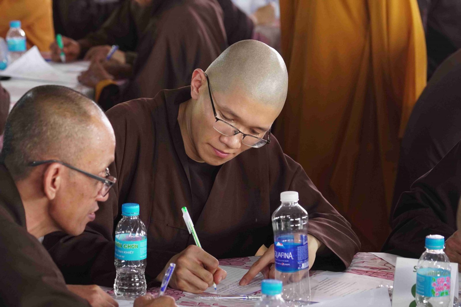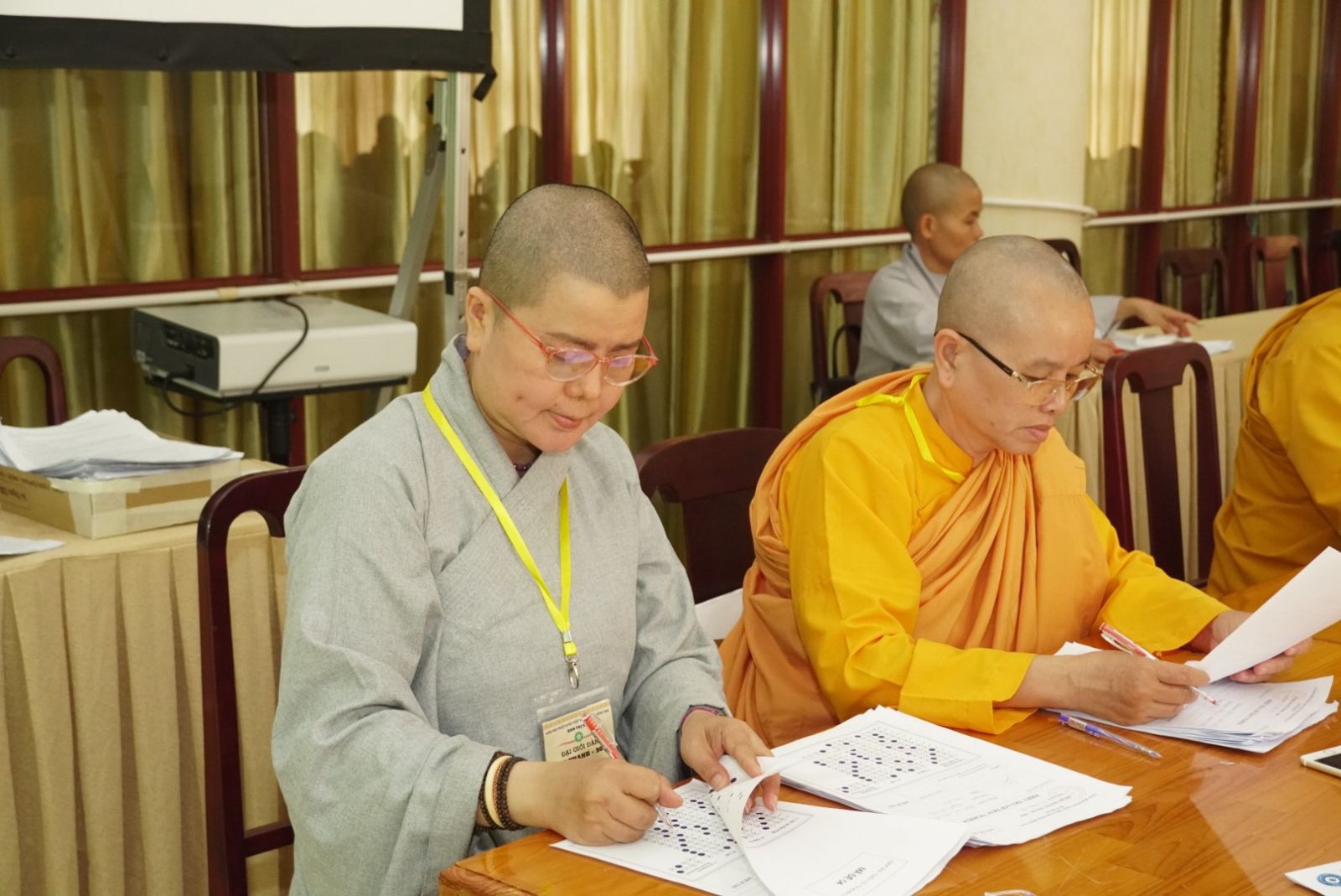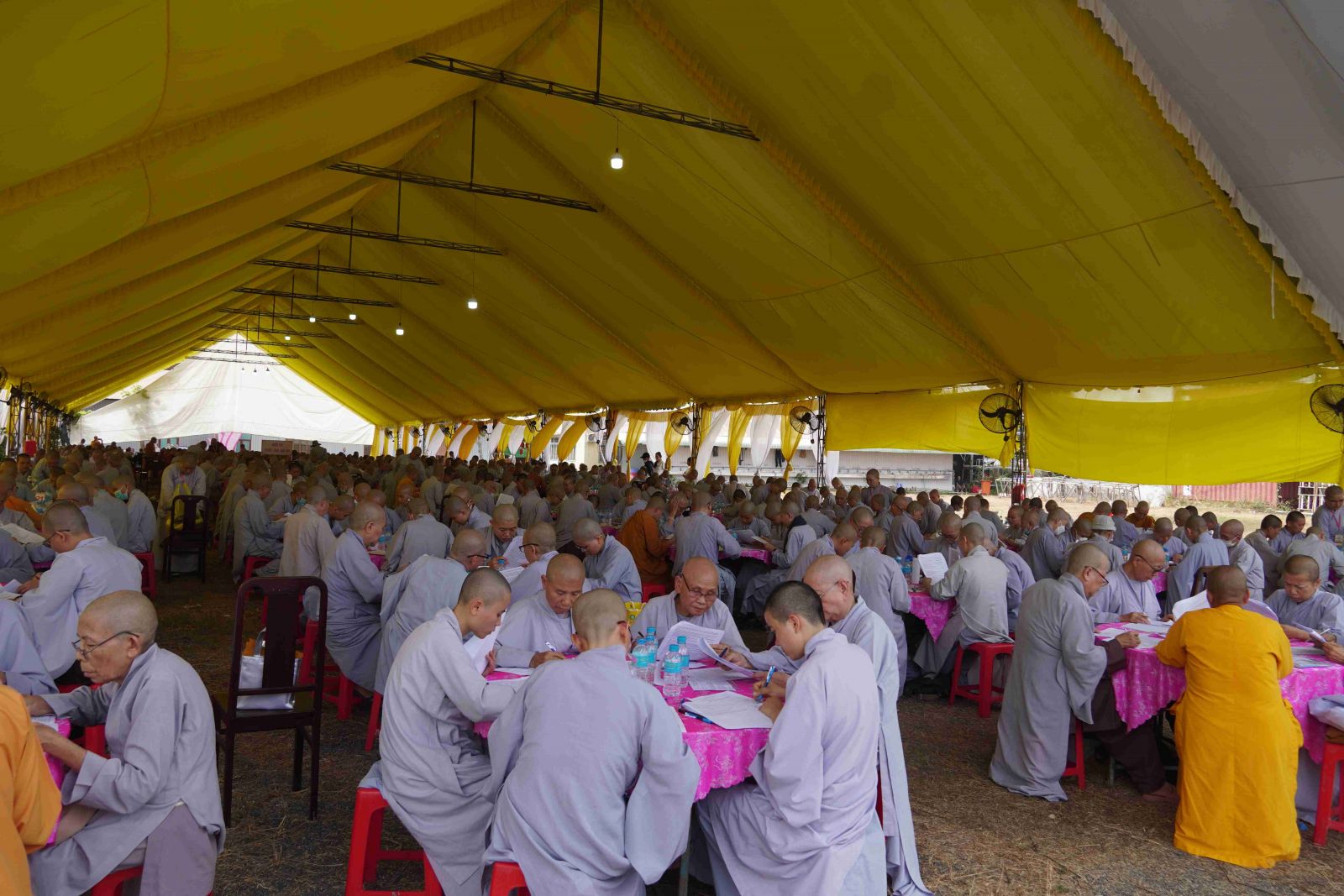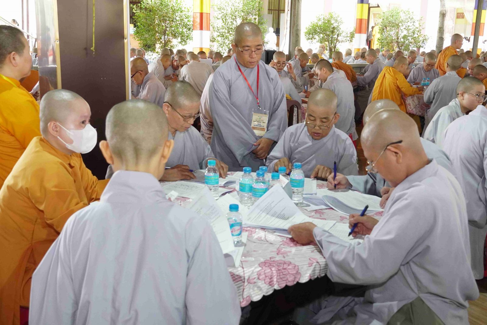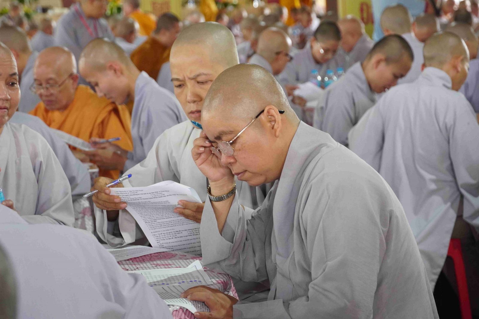 Sau cùng, dưới sự hướng dẫn của ĐĐ. Thích Đạt ma Quang Tuệ hơn 2000 giới tử đã chính thức thực hiện phần thi Trắc nghiệm và tự luận.