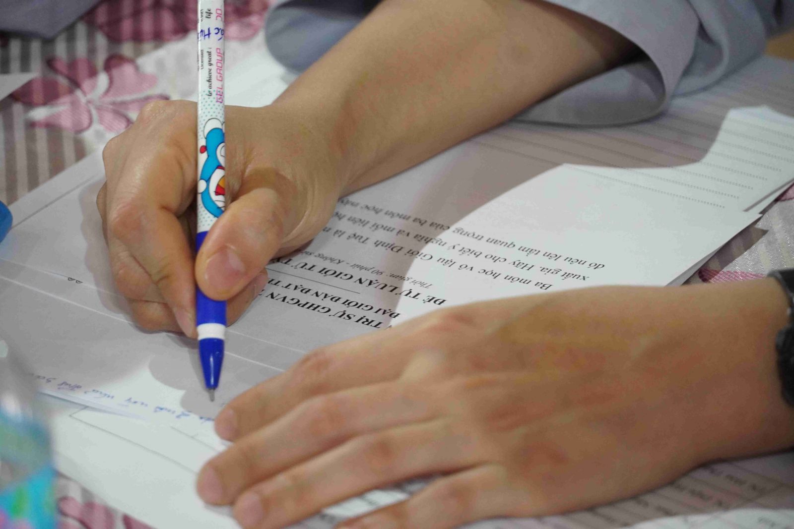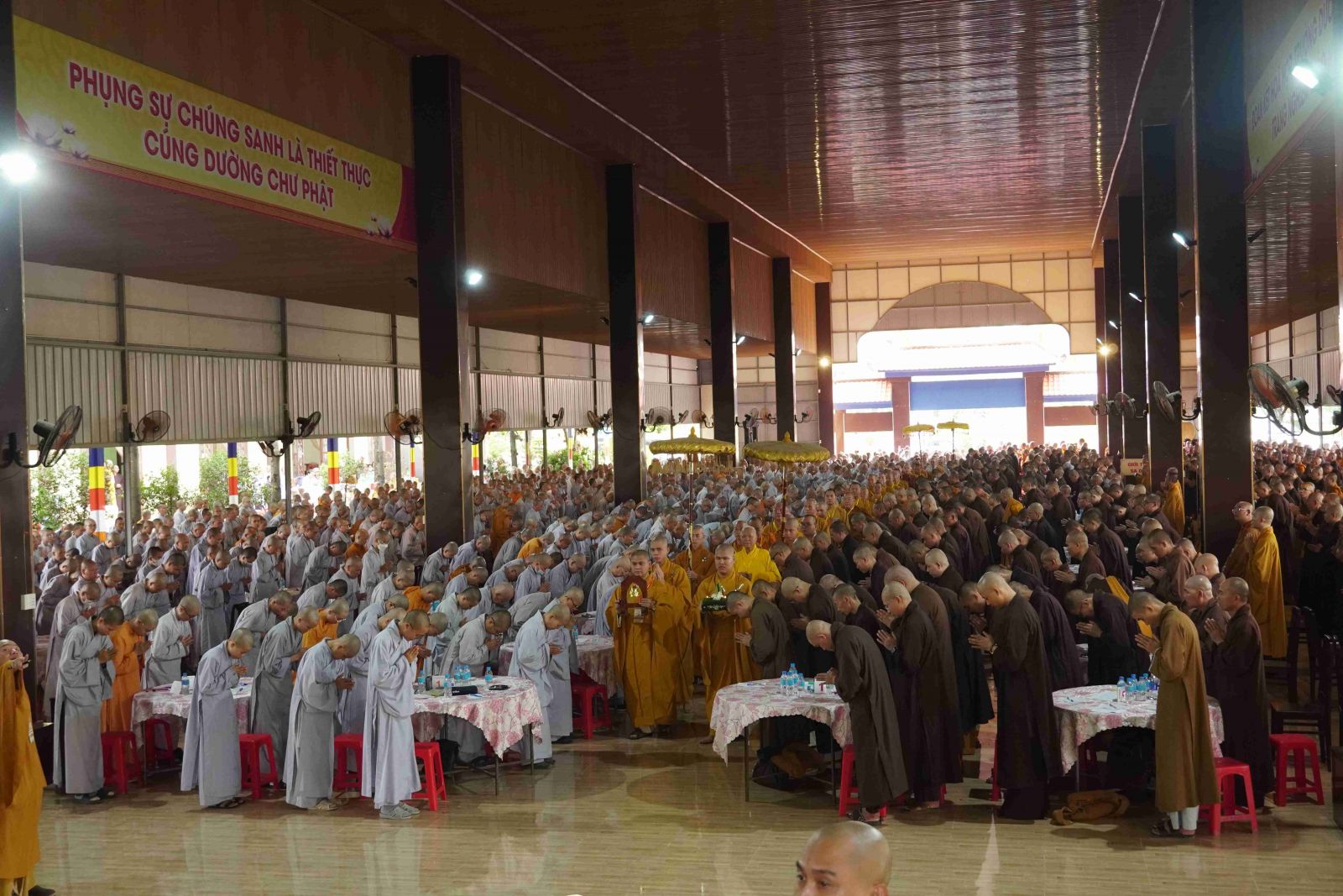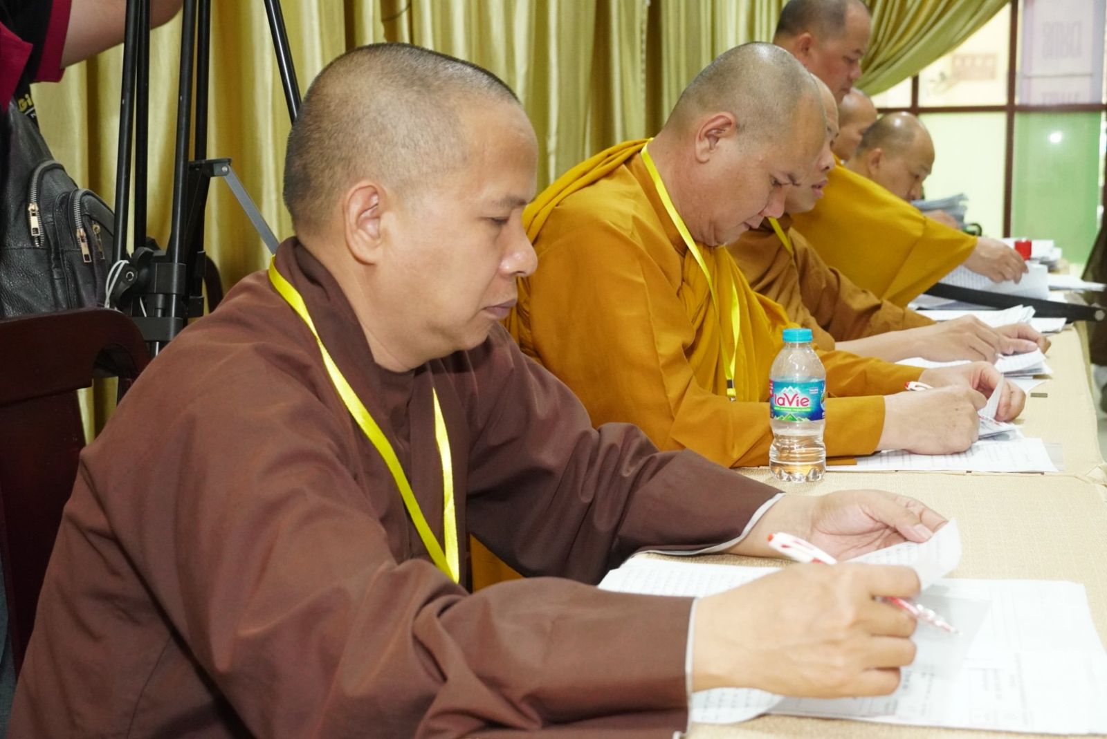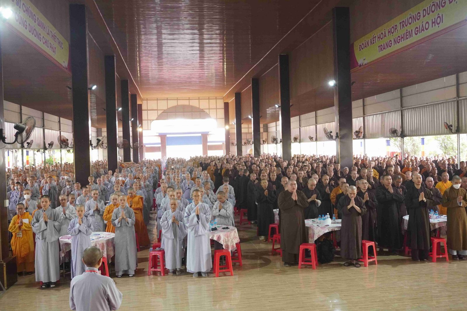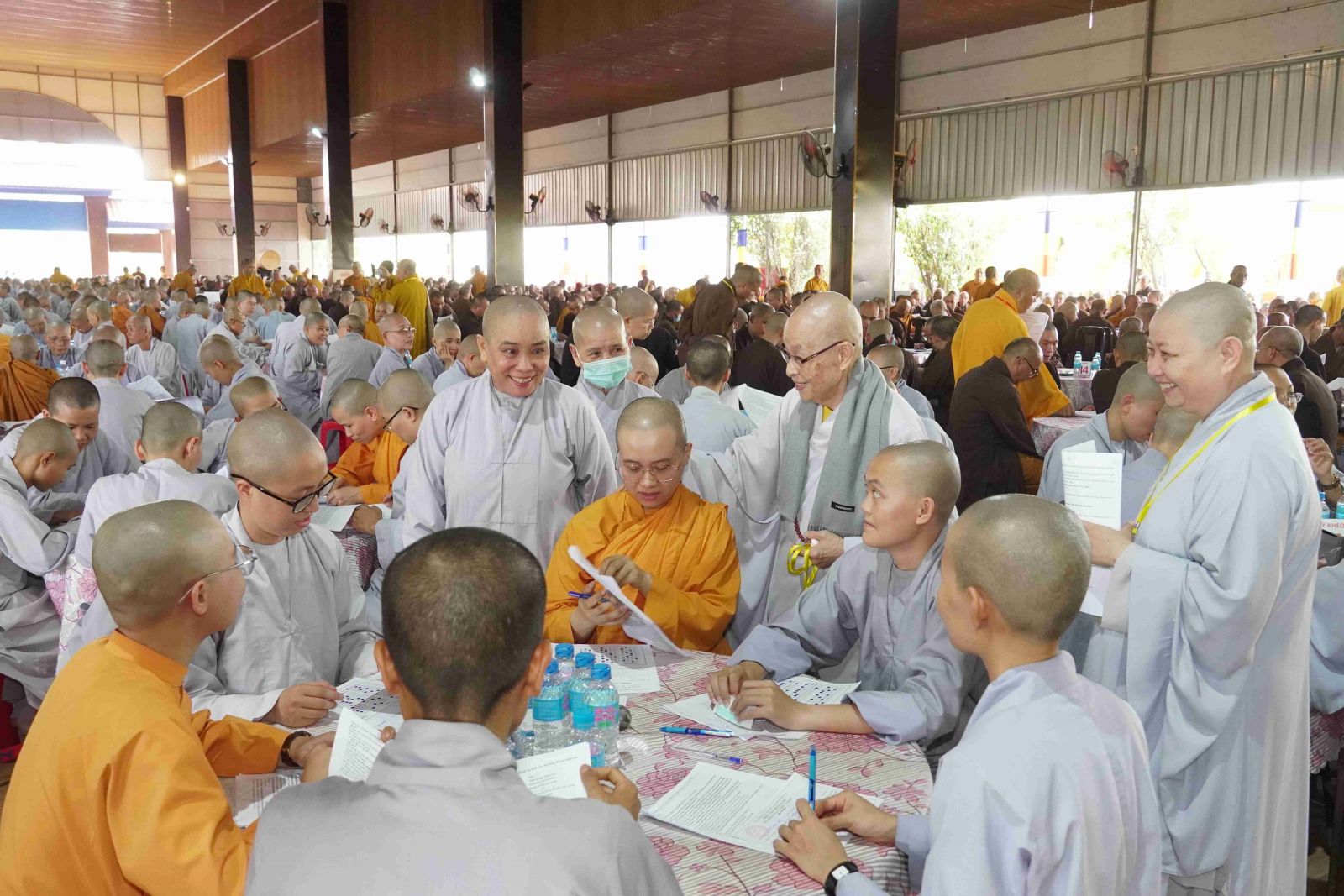 Sau cùng, dưới sự hướng dẫn của ĐĐ. Thích Đạt ma Quang Tuệ hơn 2000 giới tử đã chính thức thực hiện phần thi Trắc nghiệm và tự luận.
