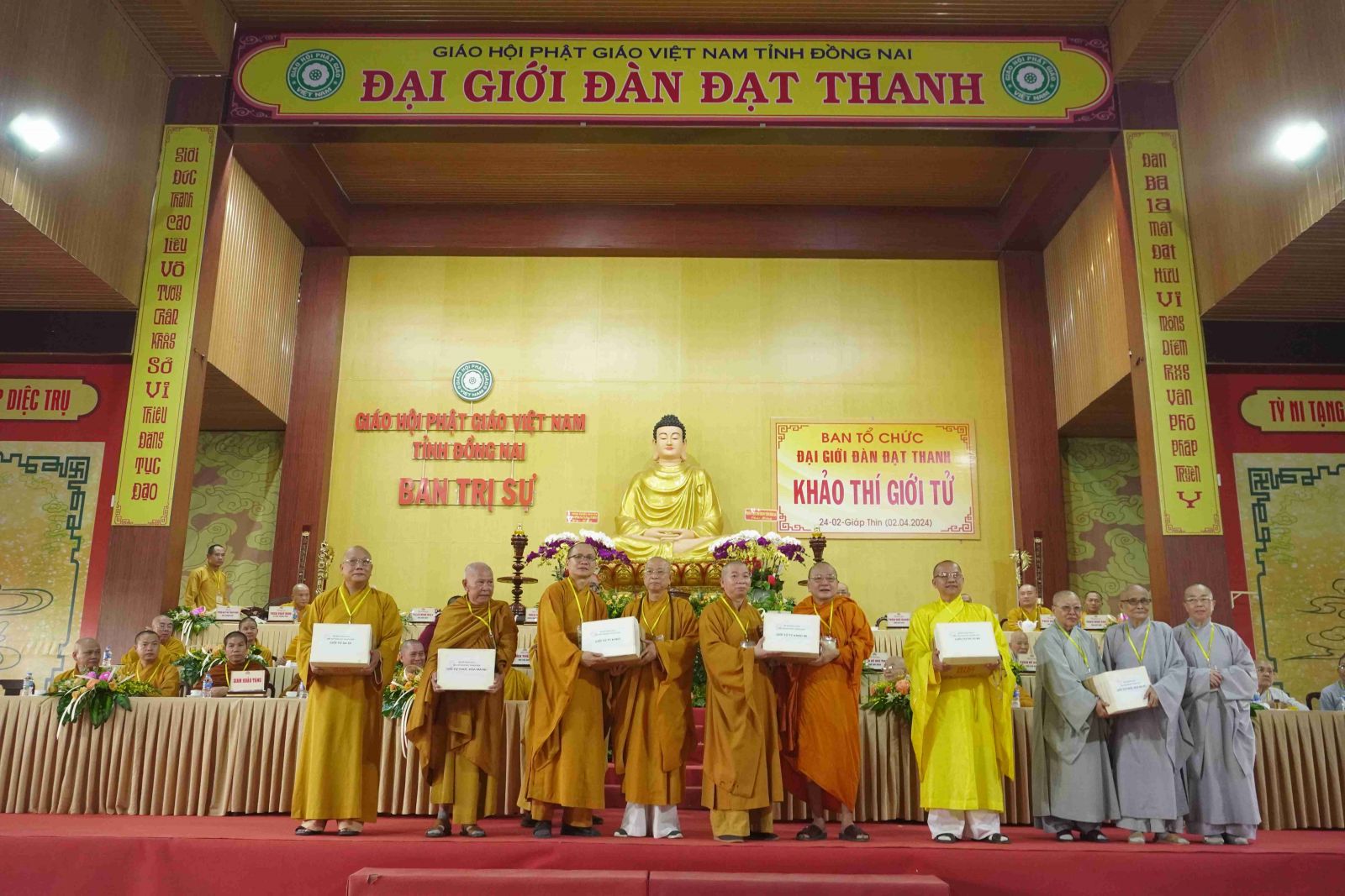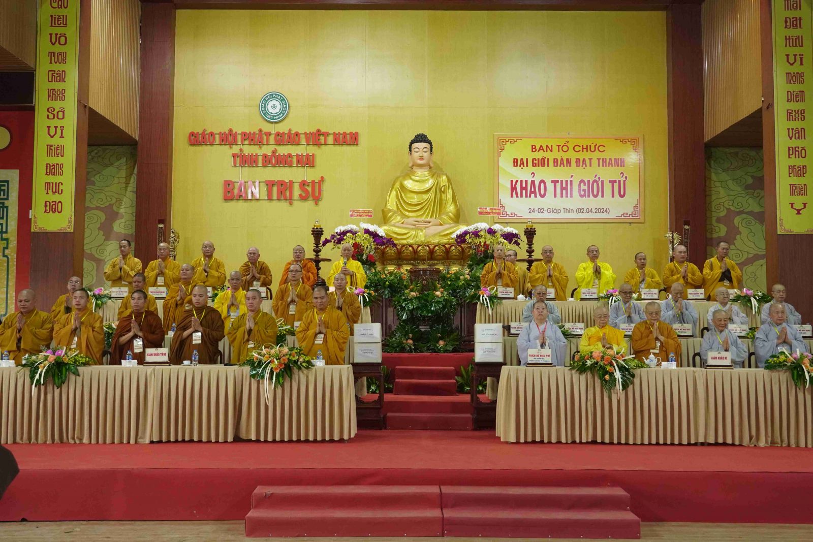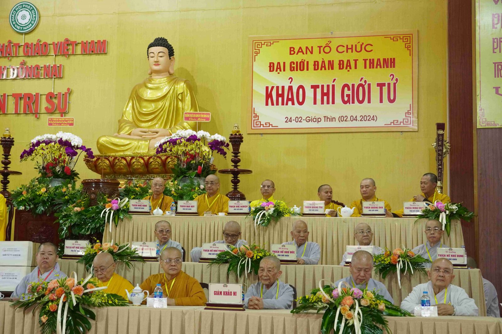 Quang lâm Chứng minh có HT. Thích Phước Tú – Chứng minh Ban Trị sự GHPGVN tỉnh Đồng Nai; TT. Thích Huệ Khai - Ủy viên Thường trực HĐTS, Trưởng ban Ban Trị sự, Trưởng ban Tăng sự, Trưởng Ban Tổ chức – Chánh Chủ Khảo Đại giới đàn Đạt Thanh 2024; HT. Thích Bửu Chánh - Ủy viên Thư ký HĐTS, Phó Trưởng ban Thường trực Ban Trị sự GHPGVN tỉnh, Phó Chánh chủ khảo Đại giới đàn; HT. Thích Minh Ngạn – Phó Ban Trị sự, Trưởng ban Kiểm soát, Phó Chủ khảo; cùng chư Tôn đức Thường trực Ban Trị sự, chư Tôn đức Ban Giám Khảo, ban Quản giới tử và hơn 2000 Giới tử cùng tham dự.