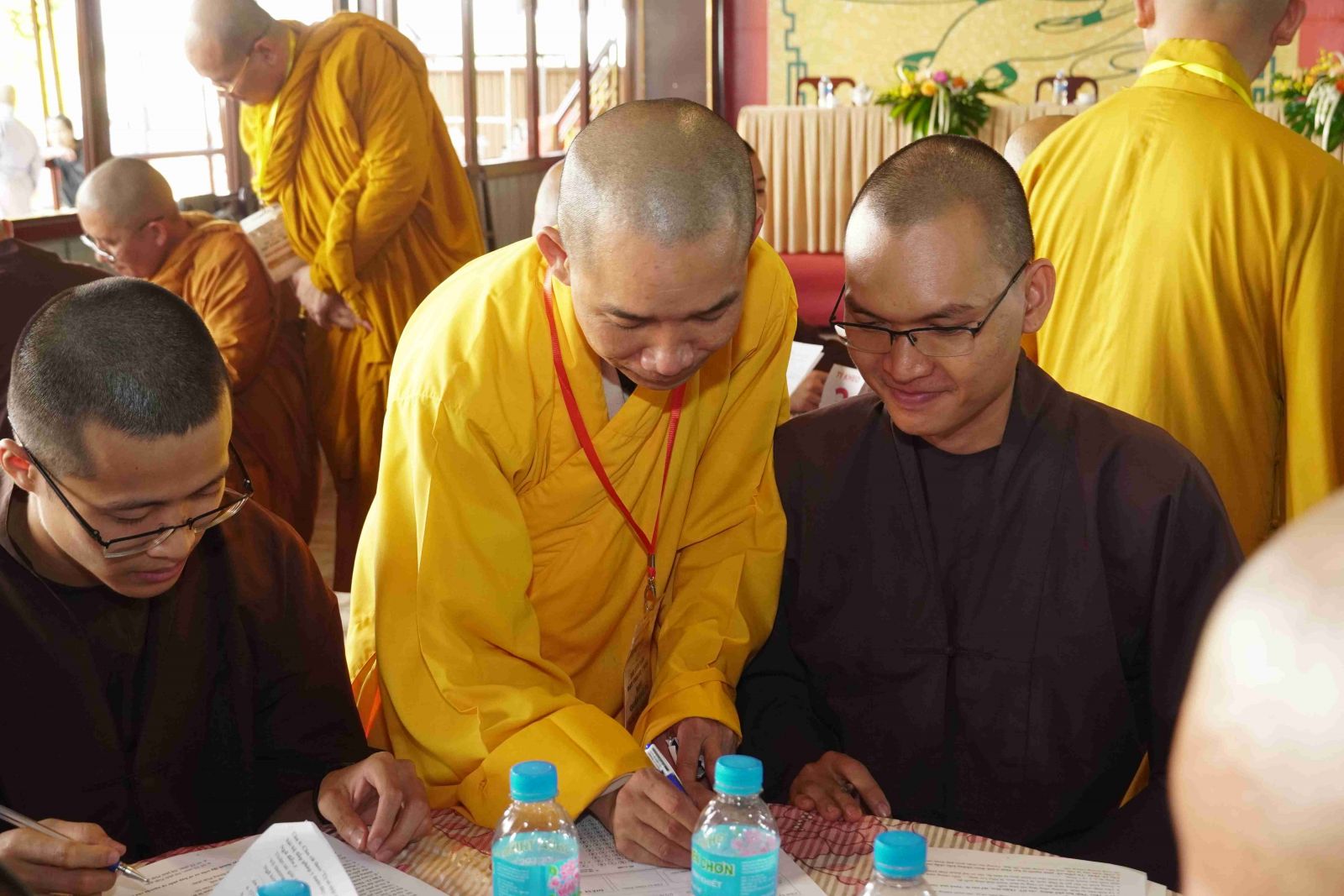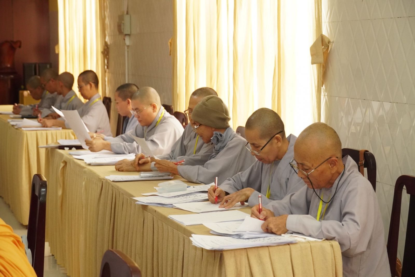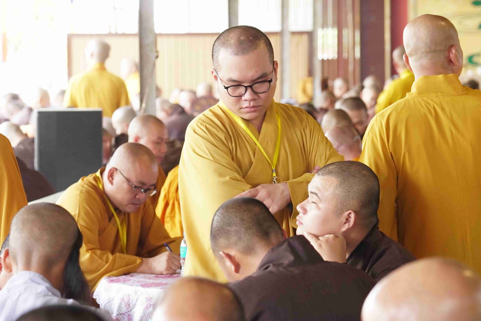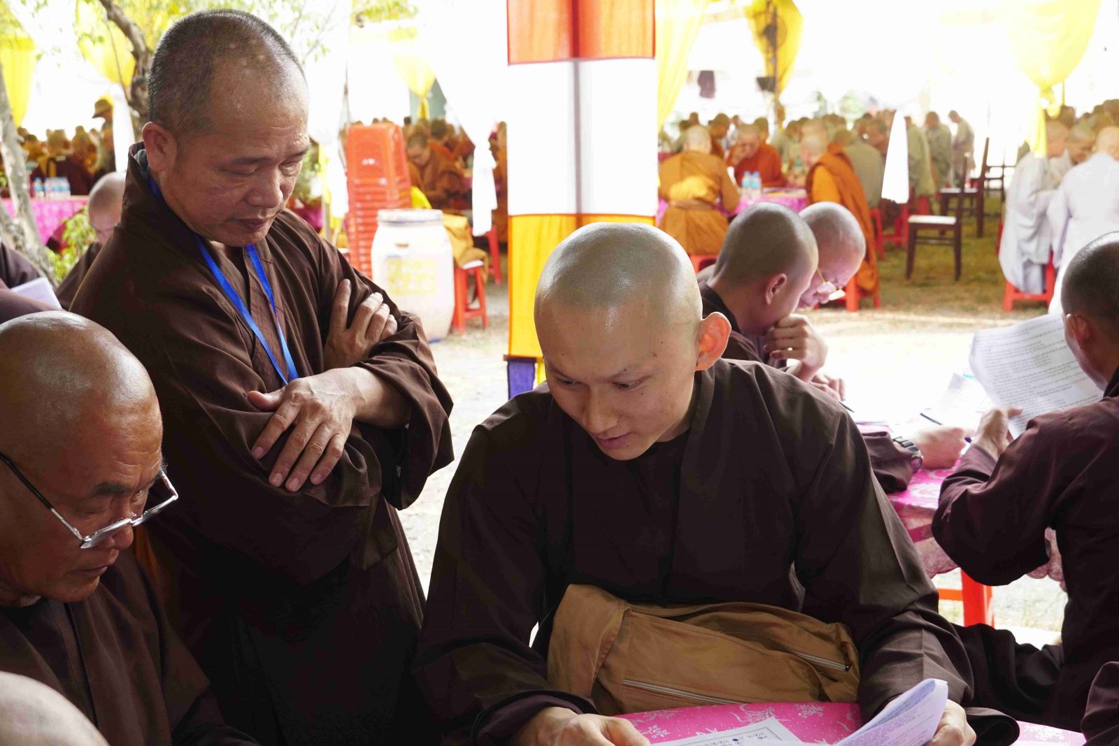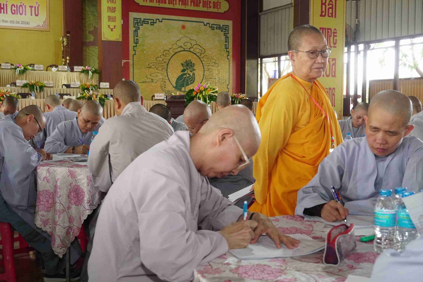 - Từ 09 giờ 15 – 10 giờ 45: Giới tử thi tự luận (Nội dung về tầm quan trọng của Giới luật đối với Tăng Ni)