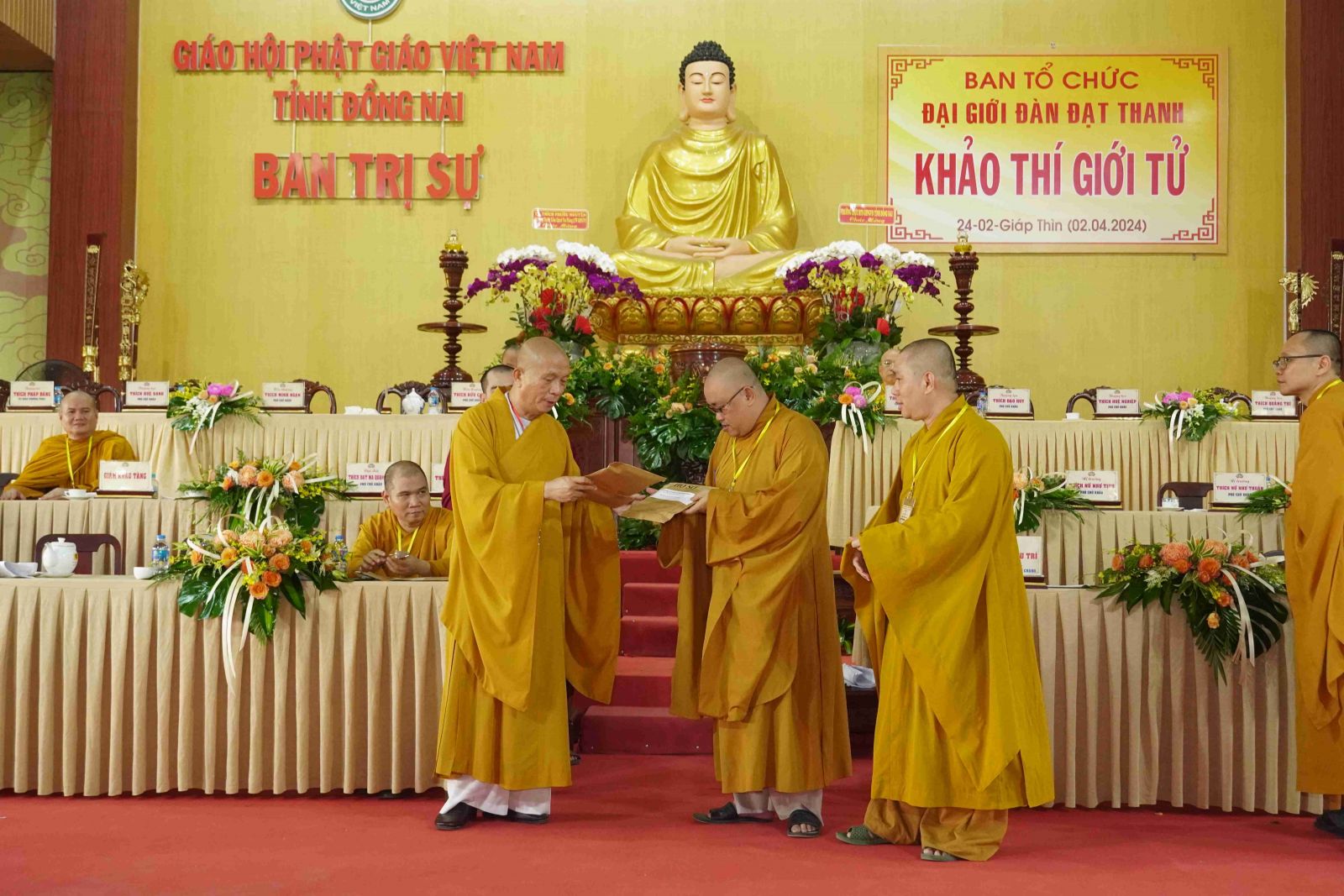 Kết quả của phần thi sẽ được Ban Trị sự tỉnh Đồng Nai, Ban Tổ chức Đại giới đàn công bố trên các phương tiện Truyền thông của tỉnh và trả kết quả trực tiếp tại Văn phòng Ban Trị sự tỉnh Đồng Nai.