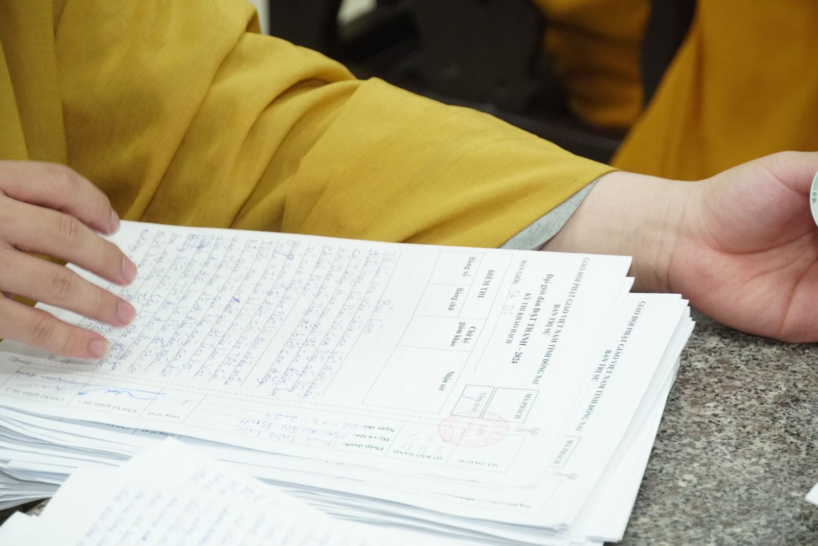 Chiều cùng ngày, Ban Giám Khảo Đại giới đàn ĐẠT THANH 2024 đã tiến hành chấm bài thi của các Giới tử và sẽ trả kết quả sớm nhất đến chư Giới tử tham dự Đại giới đàn.